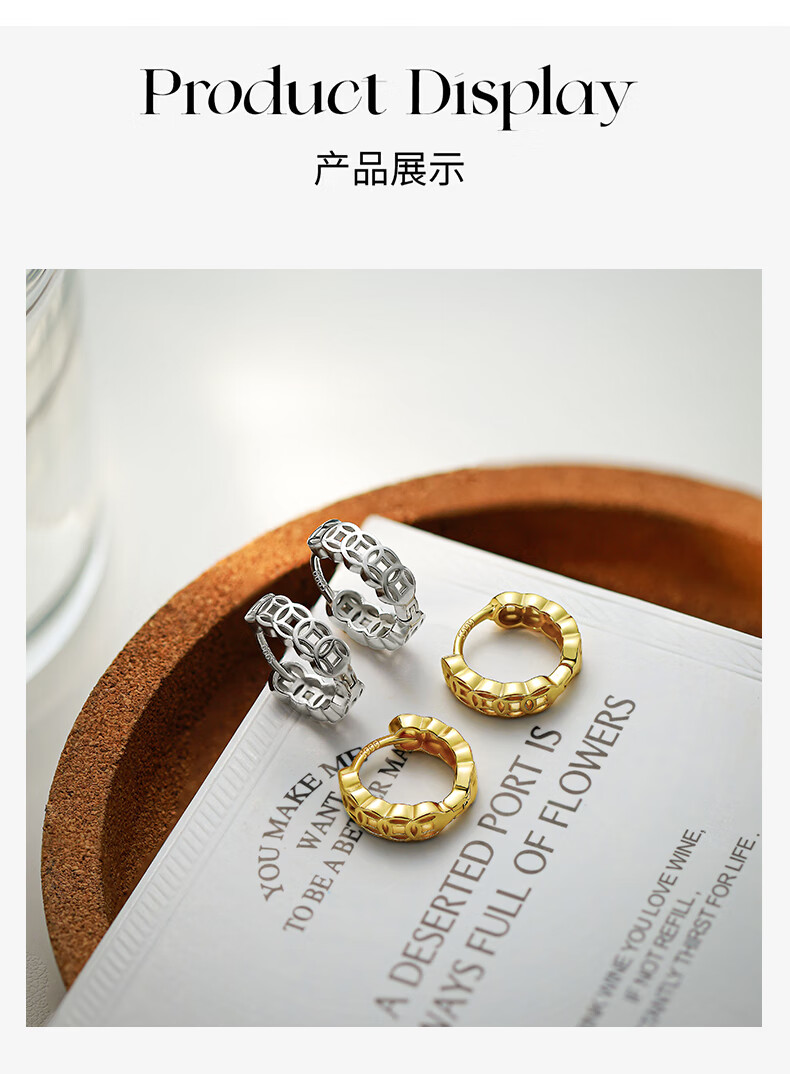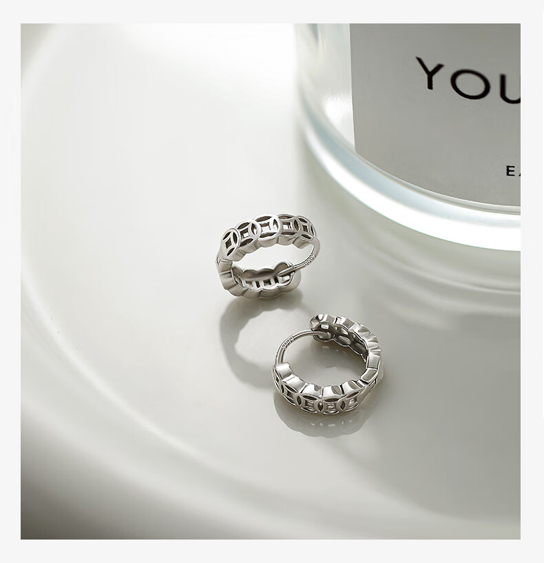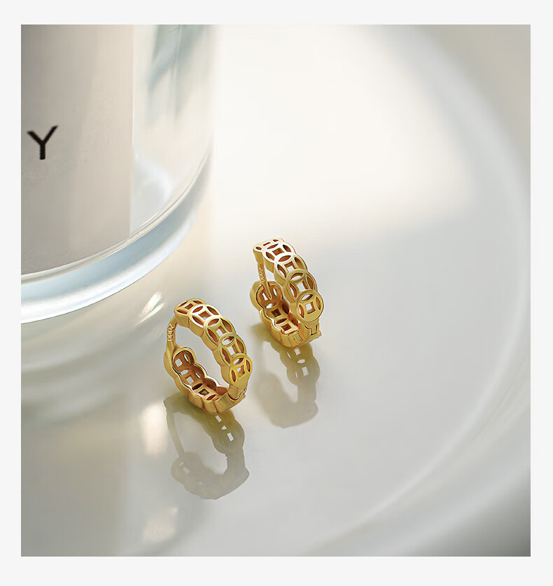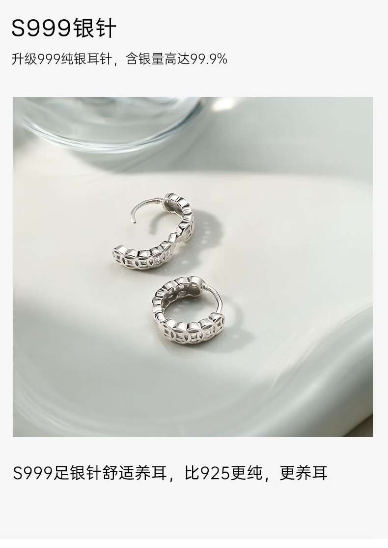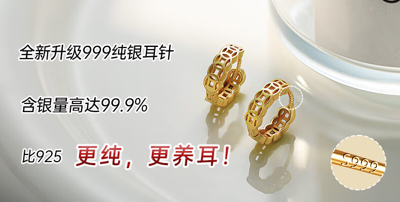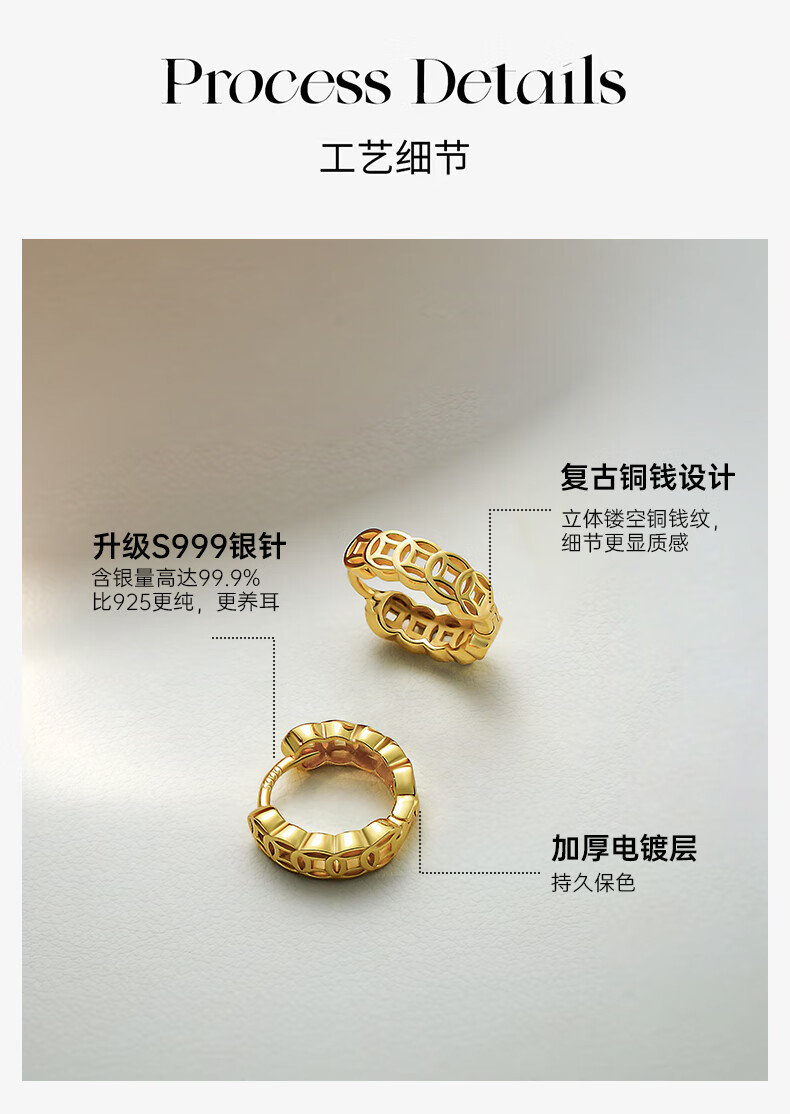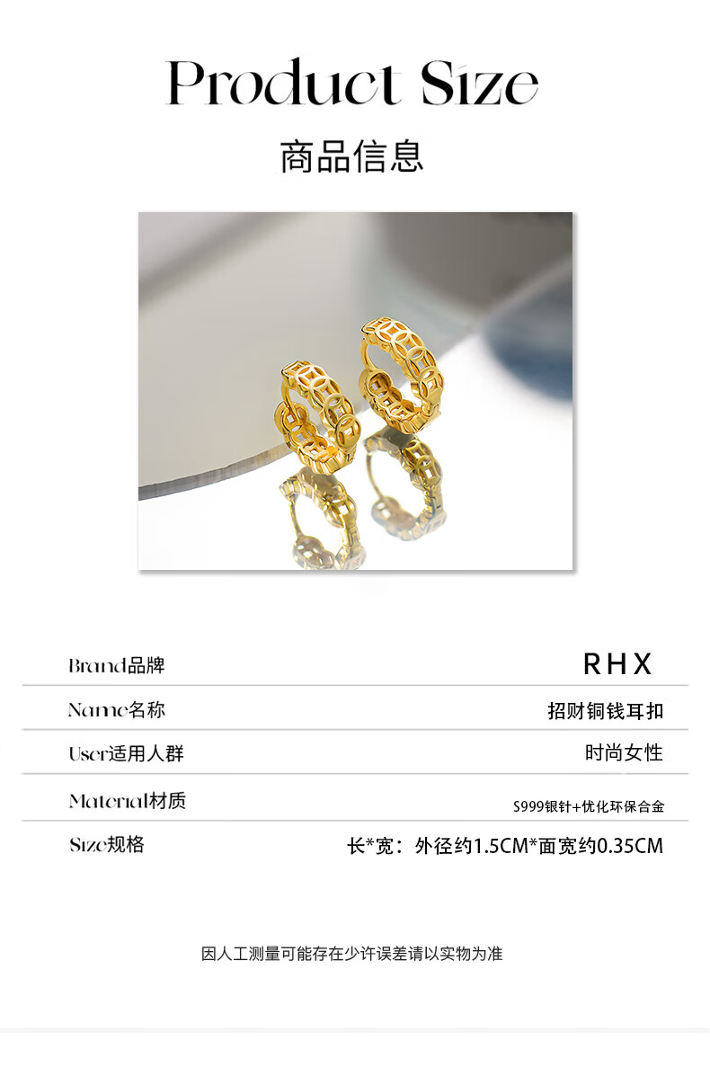Ruihongxiang 999 sterling silver ear needles to attract wealth, copper money earrings, Qian Duoduo, light luxury, high-end retro new Chinese style earrings and earrings 999 sterling silver ear needles - gold - copper money earrings to attract wealth