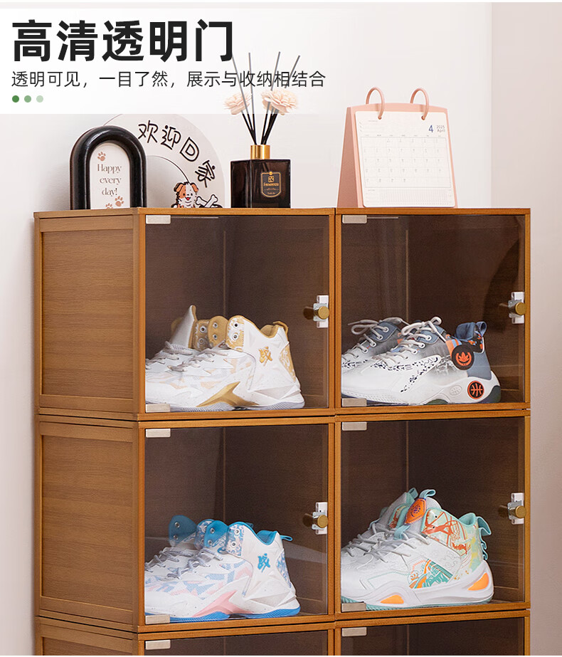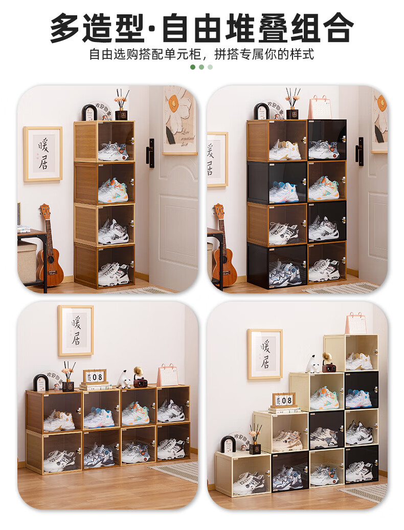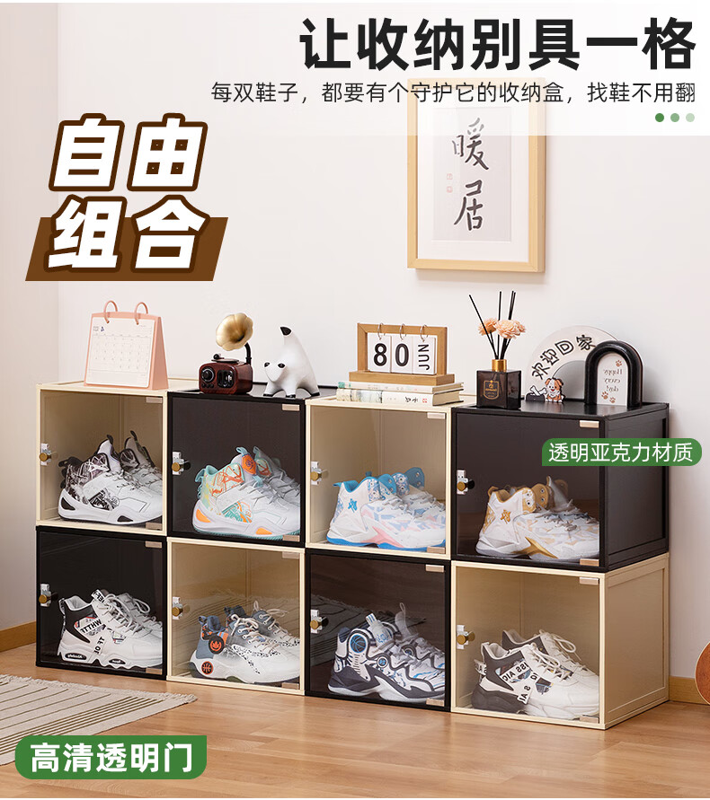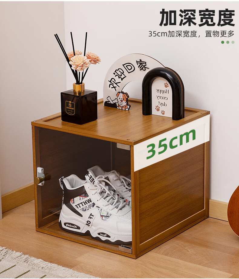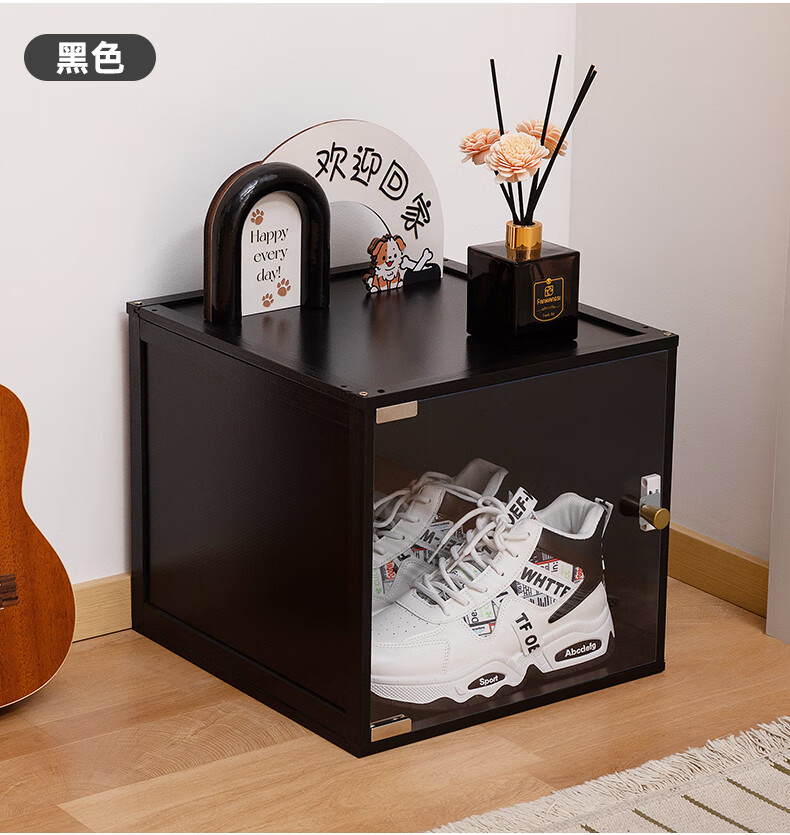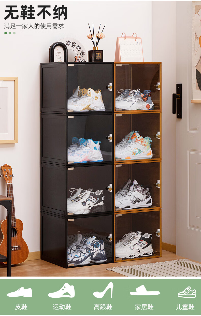 Trojan Shoe Box Shoe Storage Box Artifact Transparent Acrylic Shoe Cabinet Home Doorway for Sneakers to Save Space Simple Shoe Rack Free Stacking High Definition Transparent Door-Black (Deepened Width 35cm)