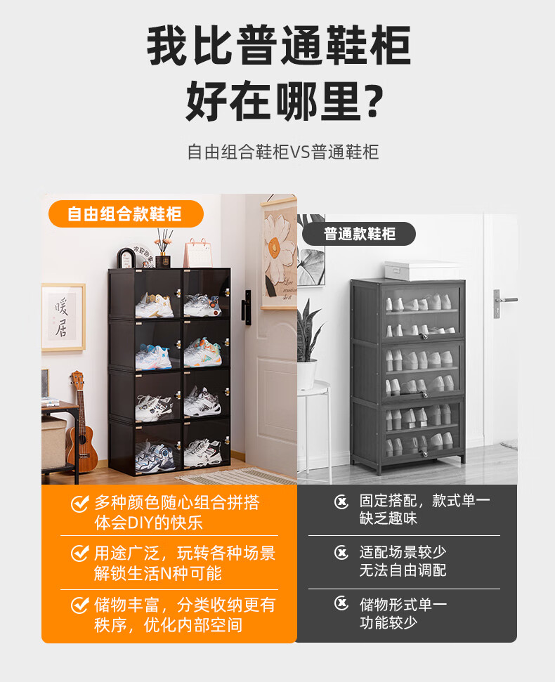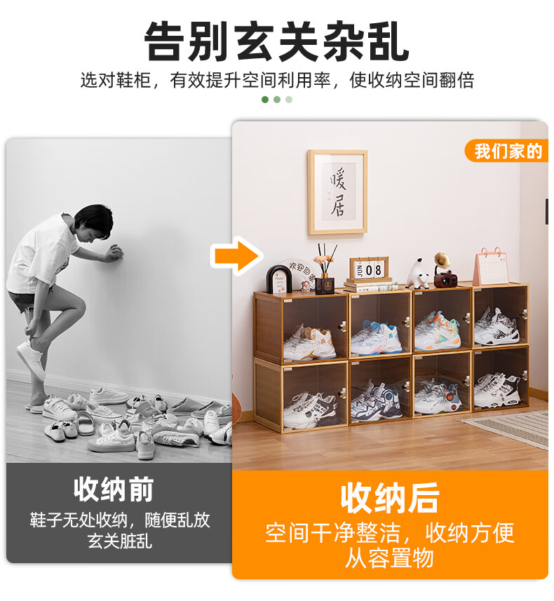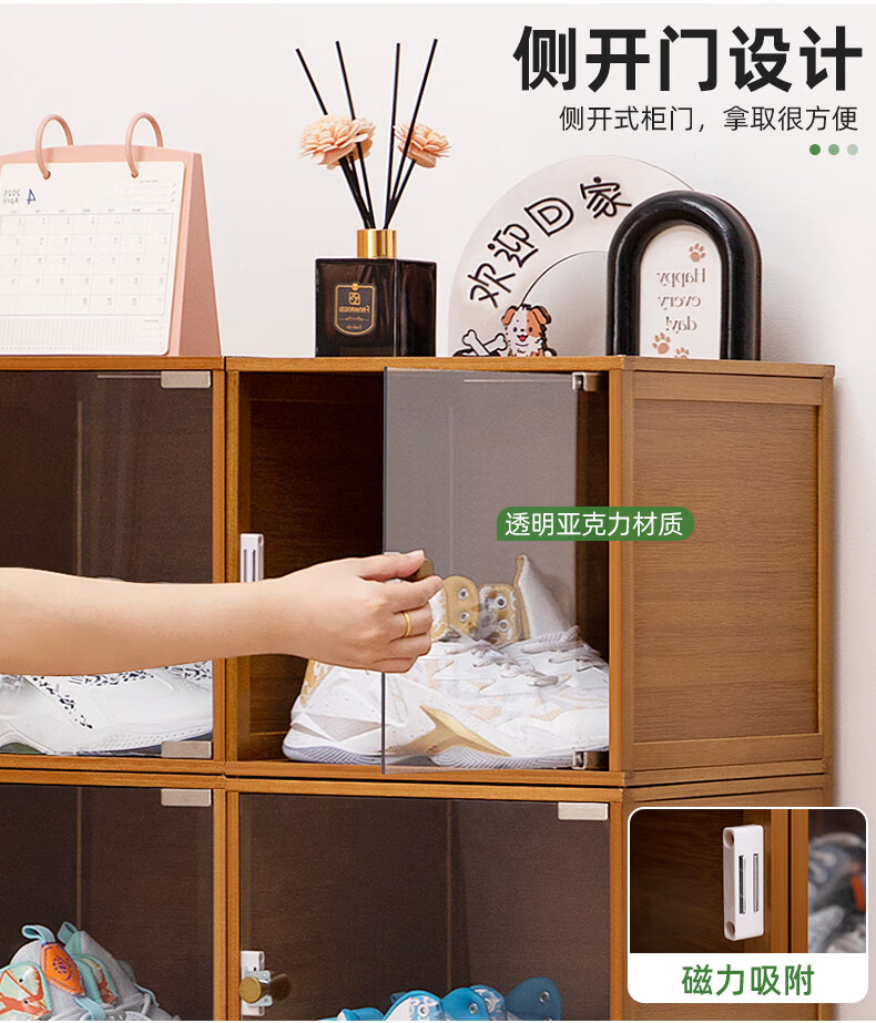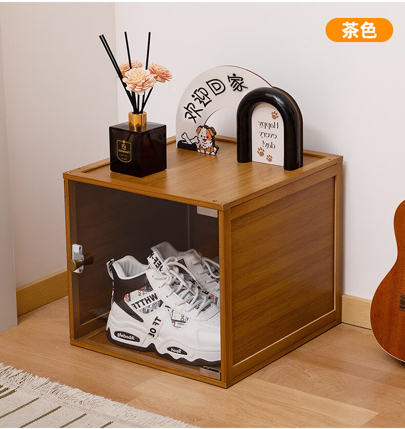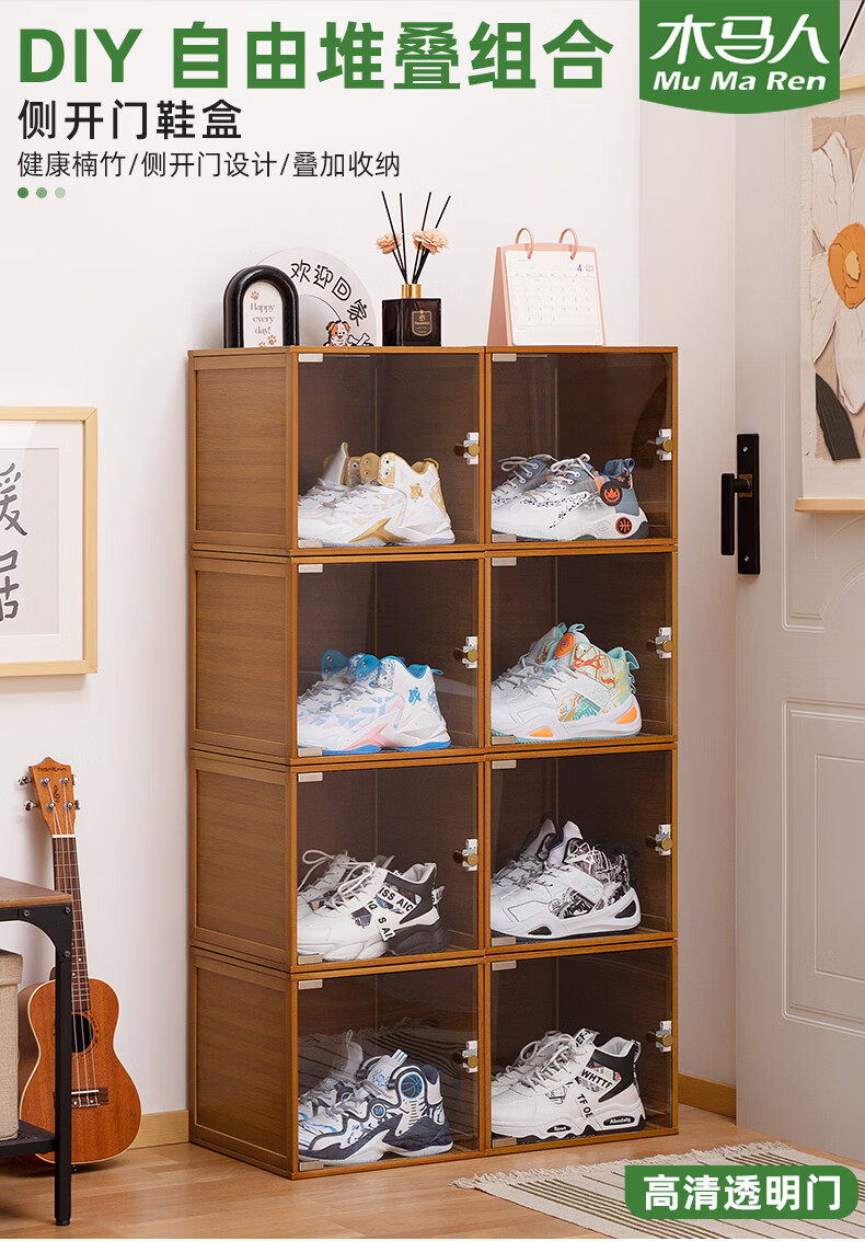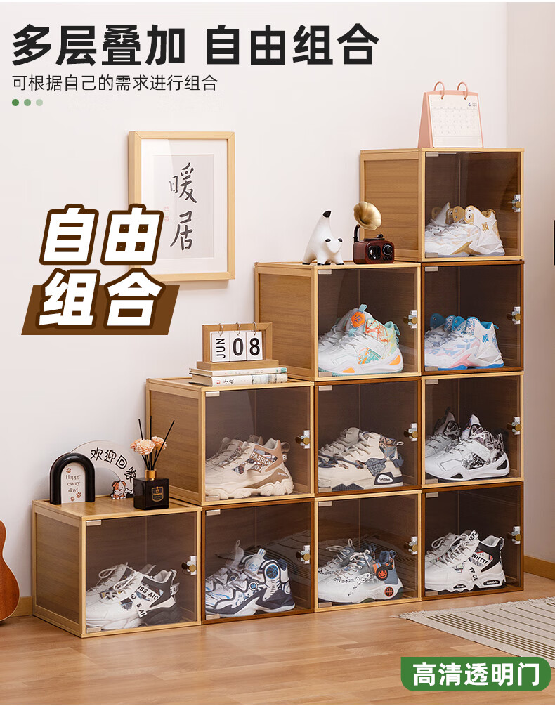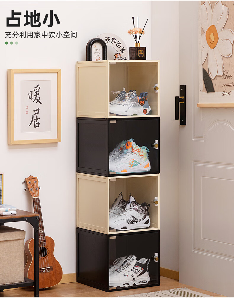 Trojan Shoe Box Shoe Storage Box Artifact Transparent Acrylic Shoe Cabinet Home Doorway for Sneakers to Save Space Simple Shoe Rack Free Stacking High Definition Transparent Door-Black (Deepened Width 35cm)