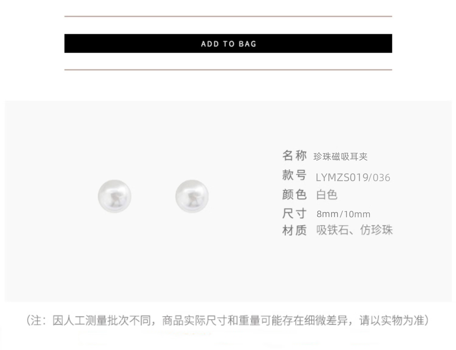 Lanshu (LANSHU) non-pierced artificial pearl ear clips for women, magnetic suction, punch-free clips, painless, small fake earrings for round faces, revealing face, earrings, earrings, pearl magnetic suction ear clips 8mm