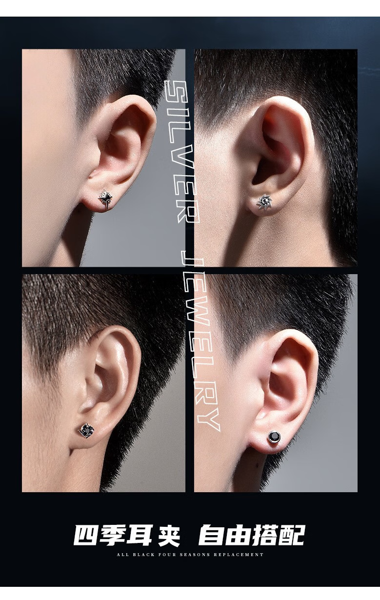 LANSHU non-pierced ear clips, earrings, men's personalized earrings, trendy and handsome ear bone clips, men's single titanium steel magnet earrings, trendy men's magnetic ear clips set, 4 pieces