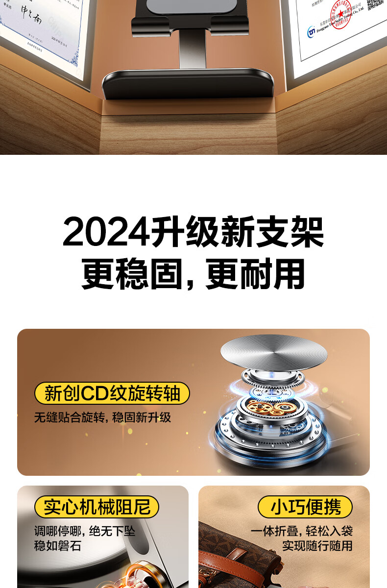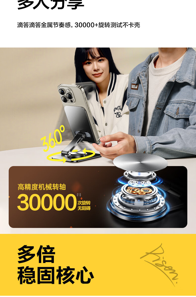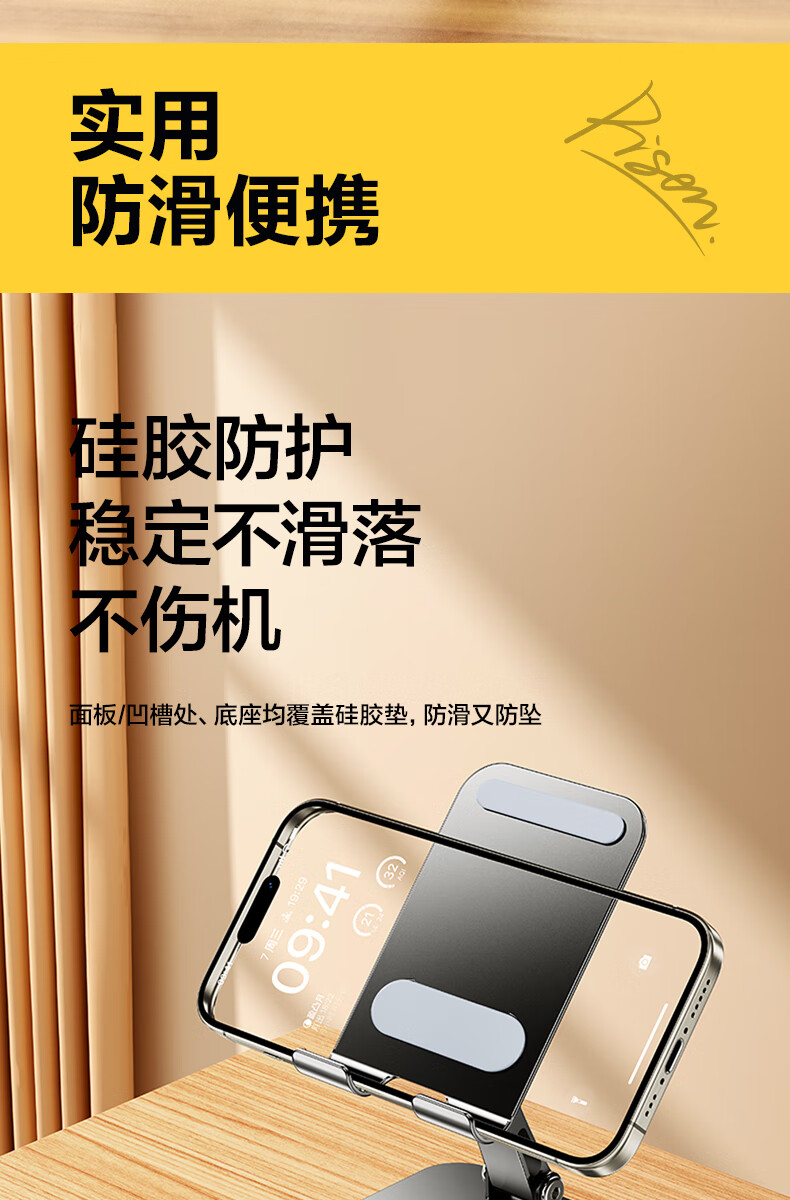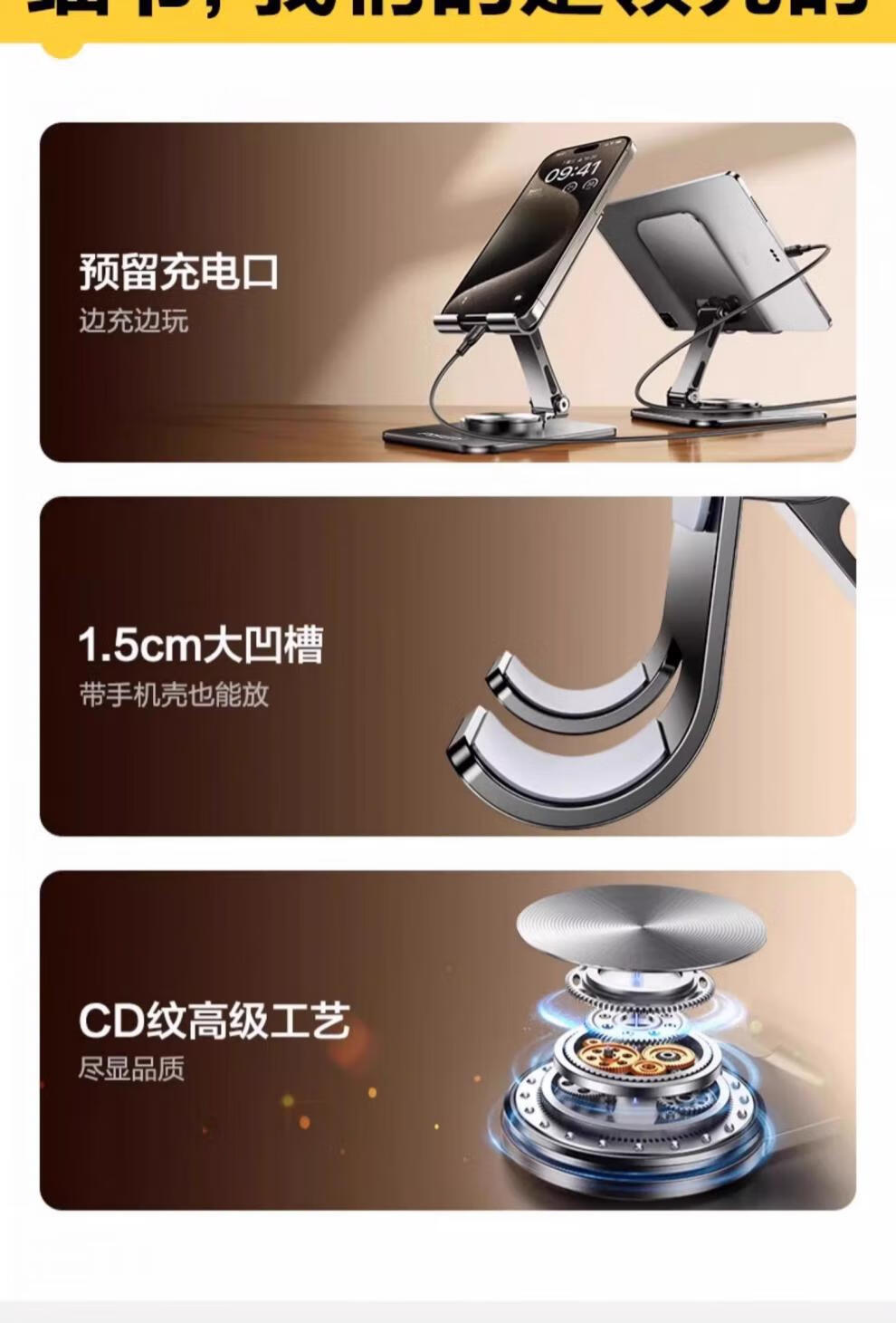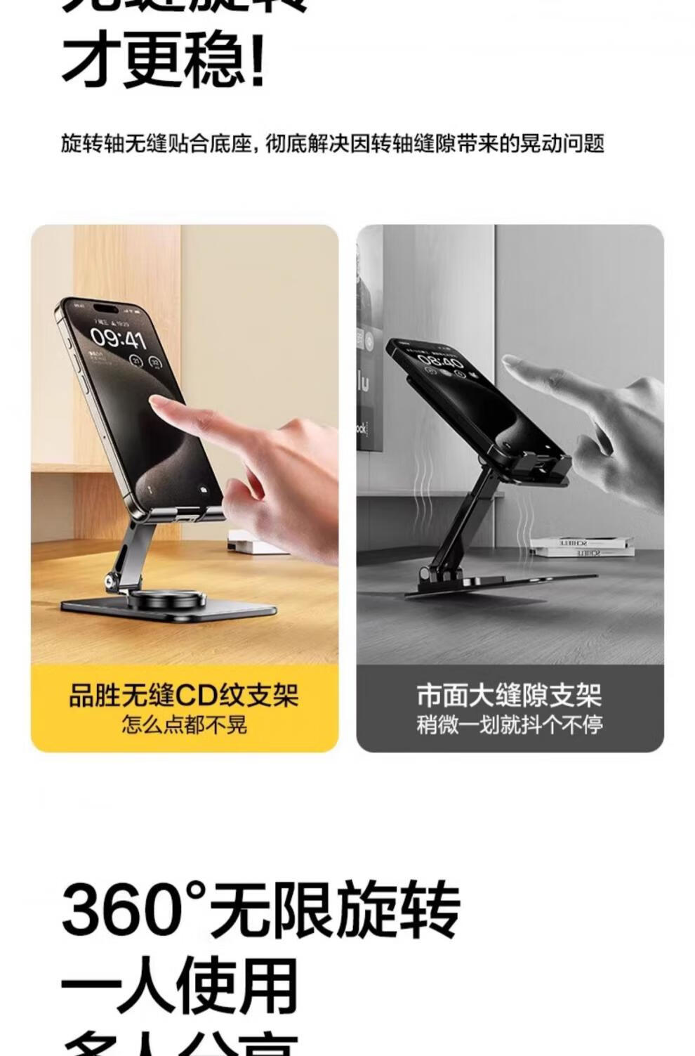 PISEN 2025 new mobile phone holder desktop 360-degree mobile phone rotating bracket metal live broadcast special support tablet ipad multi-functional portable bracket universal folding painting three-axis cantilever polar night black mobile phone/tablet available thickened base to hover freely