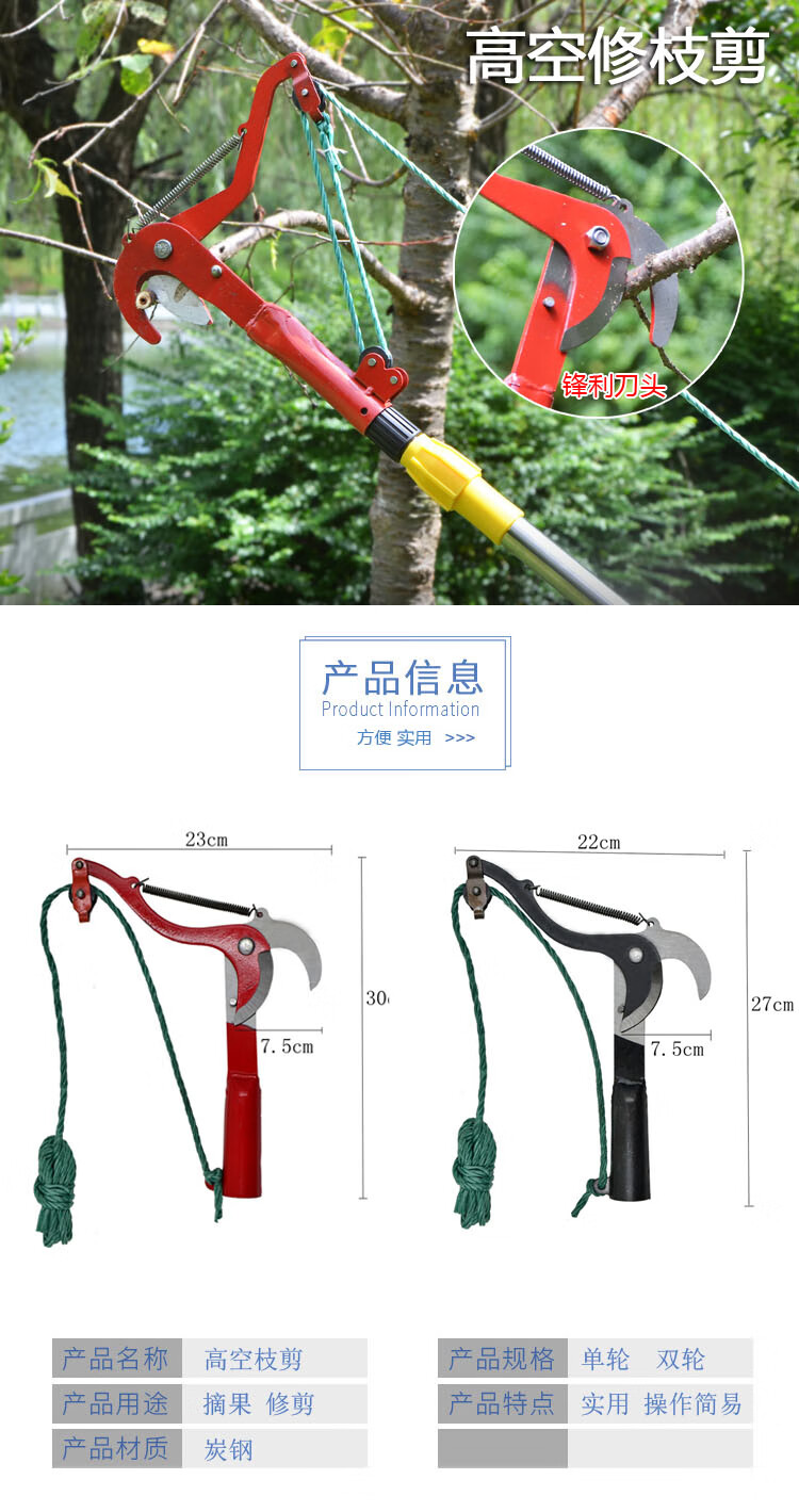 Bun Peng high-branch pruning branch scissors telescopic belt rope fruit picker high-altitude head high-altitude pruning thickened high-altitude shears No. 46