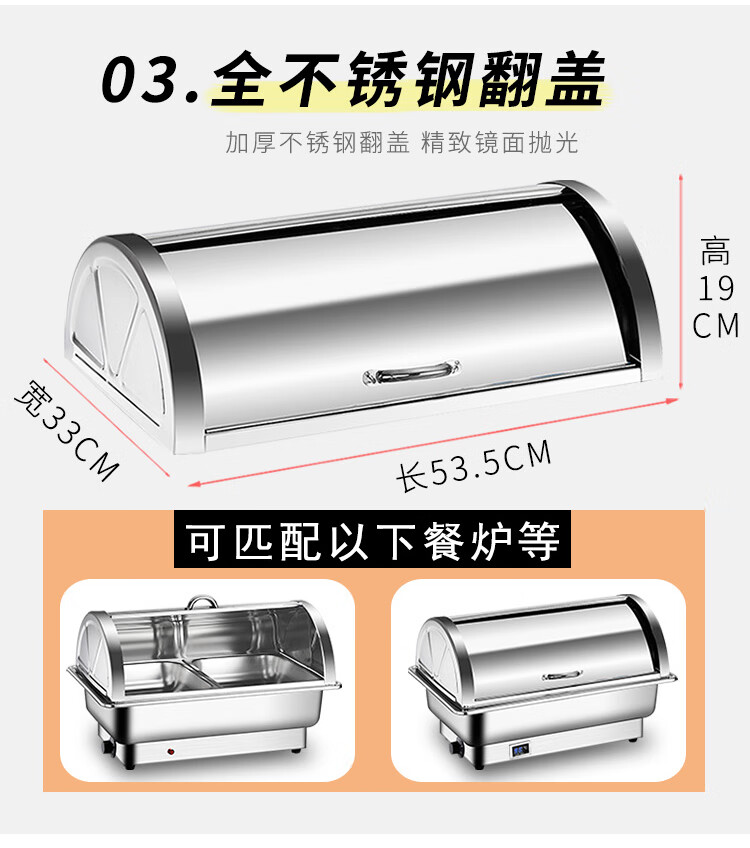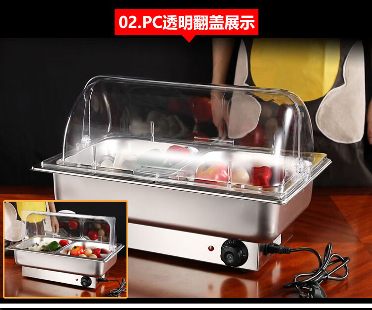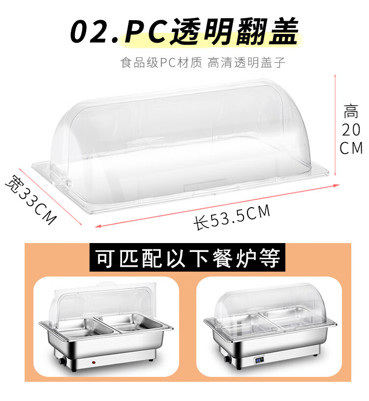 Buffet stove transparent dust cover reversible food PC bread display basin cake snack cover stainless steel cover transparent PC flip cover