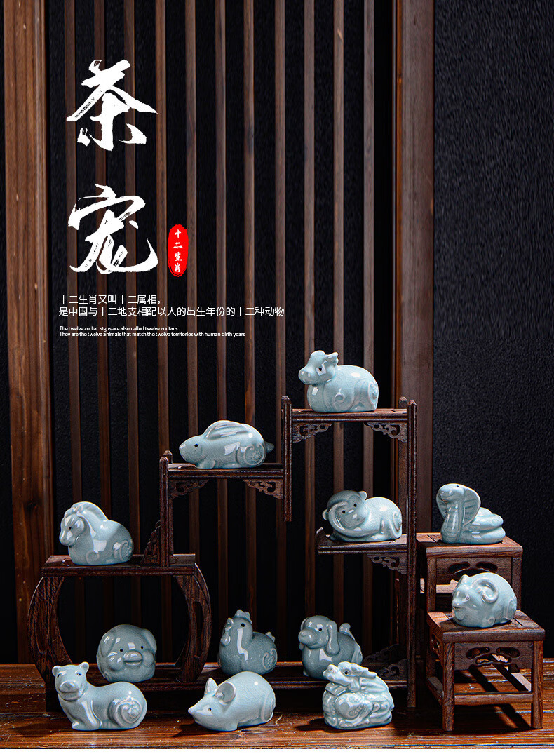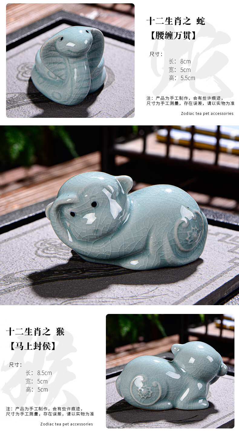 Wuji Ceramics Twelve Zodiac Small Ornaments Ru Kiln Small Ornaments Craft Gifts Desktop Accessories Tea Pets Can Raise Tea Pets Twelve Zodiac Tea Pets Monkey