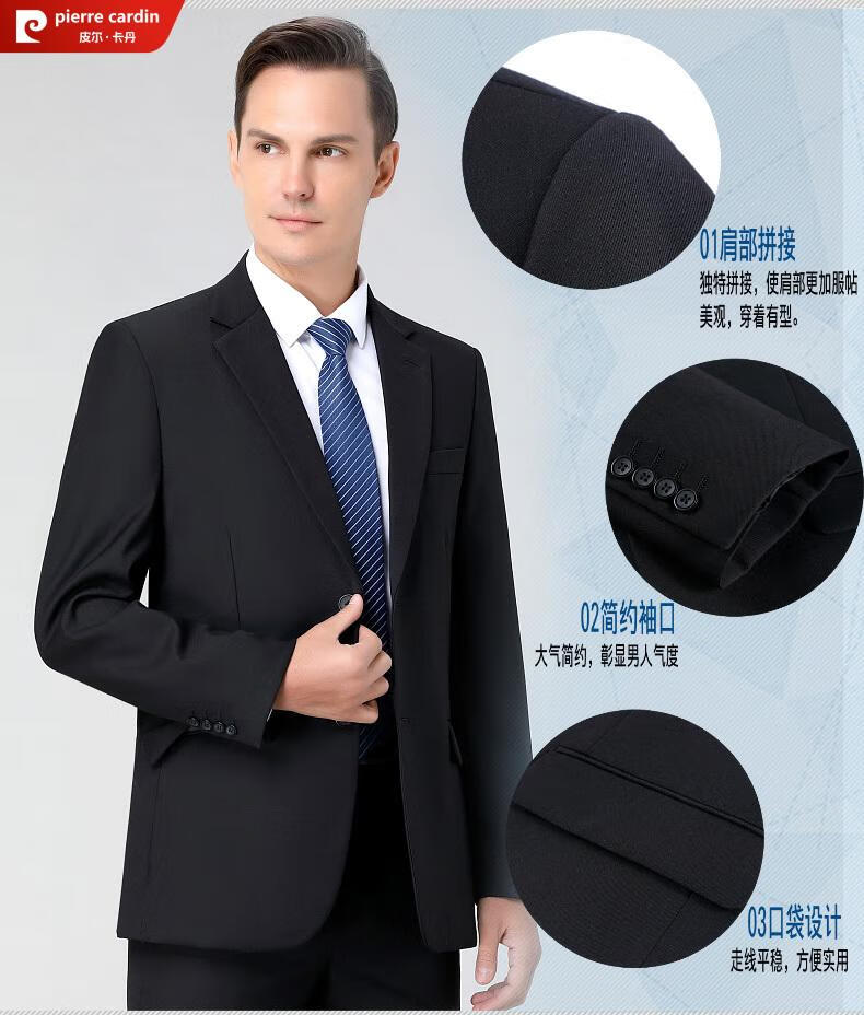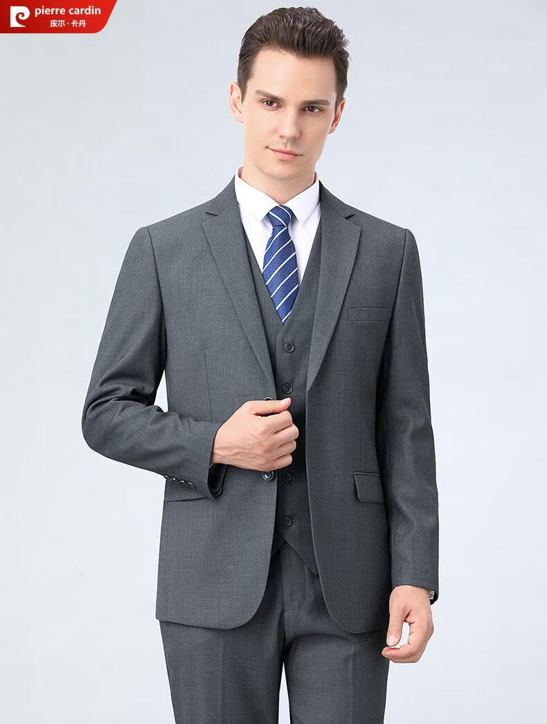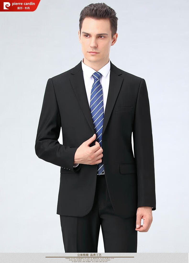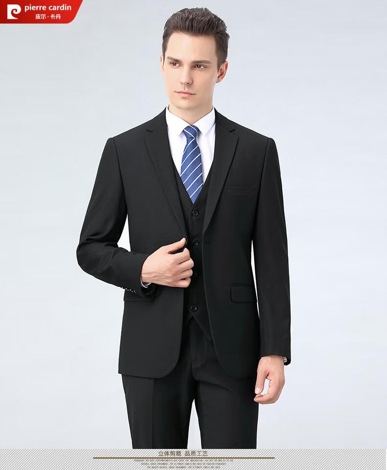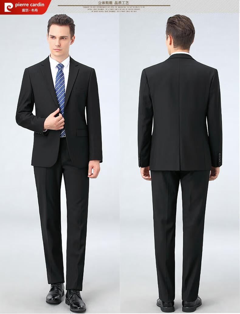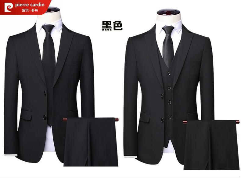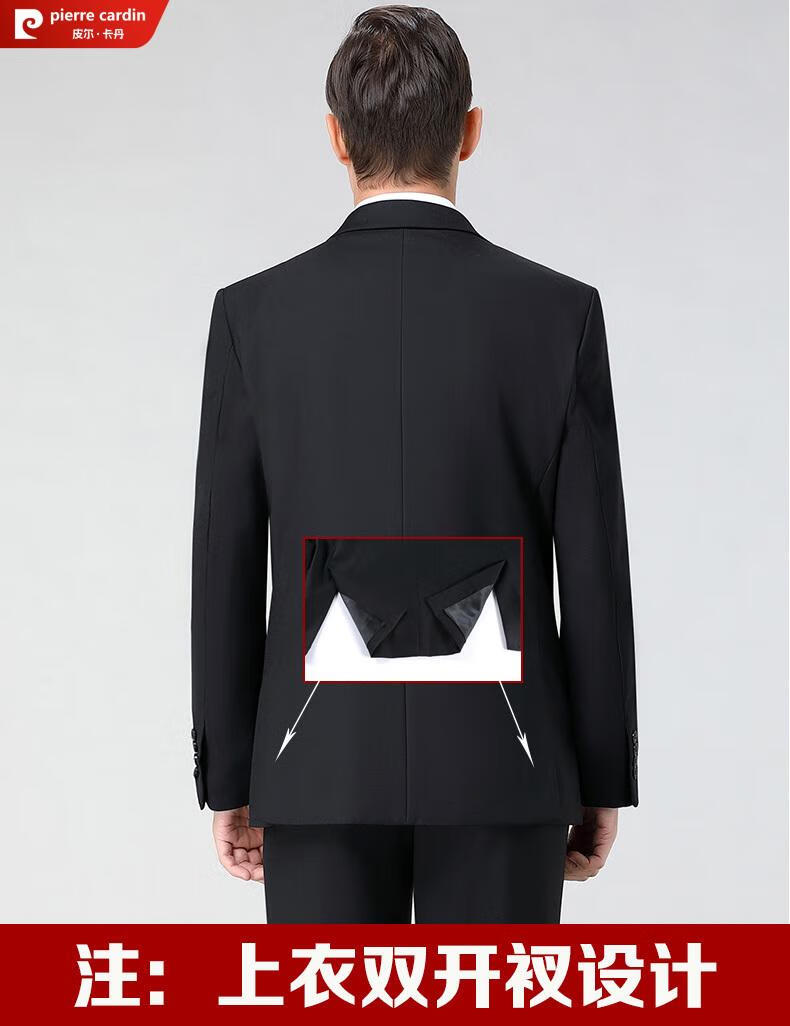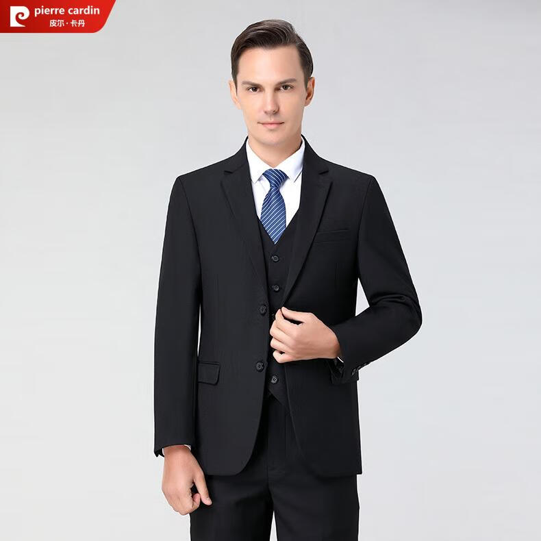 Pierre Cardin high-end anti-wrinkle wool suit suit for men with double slits, business formal wear, professional interview suit, full three-piece suit for men, CY black clothes + pants, double slits, XL 180/52 size, official authentic product