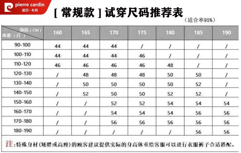 China (cm) 160-165/84-86 165-170 / 88-90 167-172 / 92-96 168-173 / 98-102 170-176 / 106-110