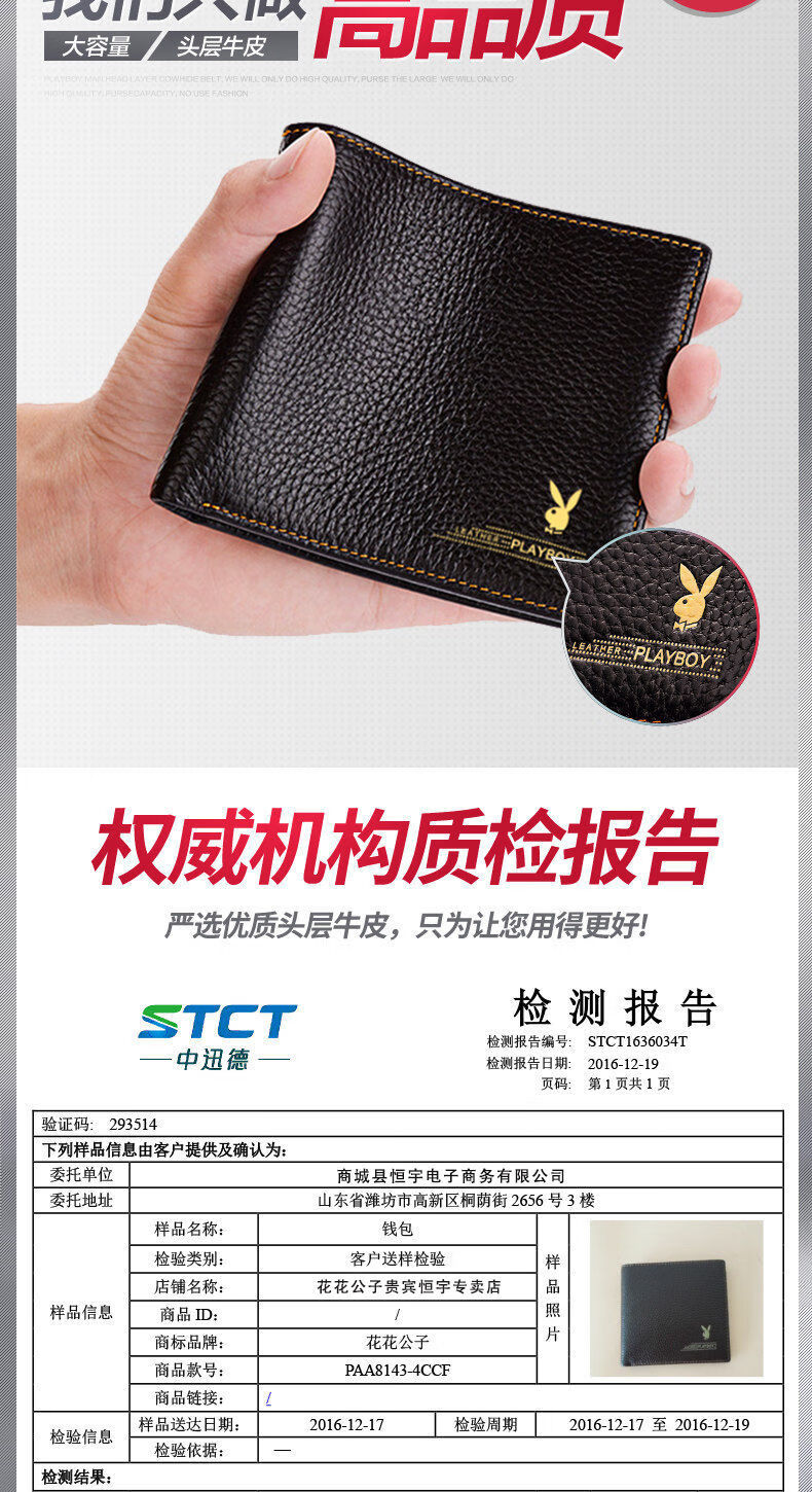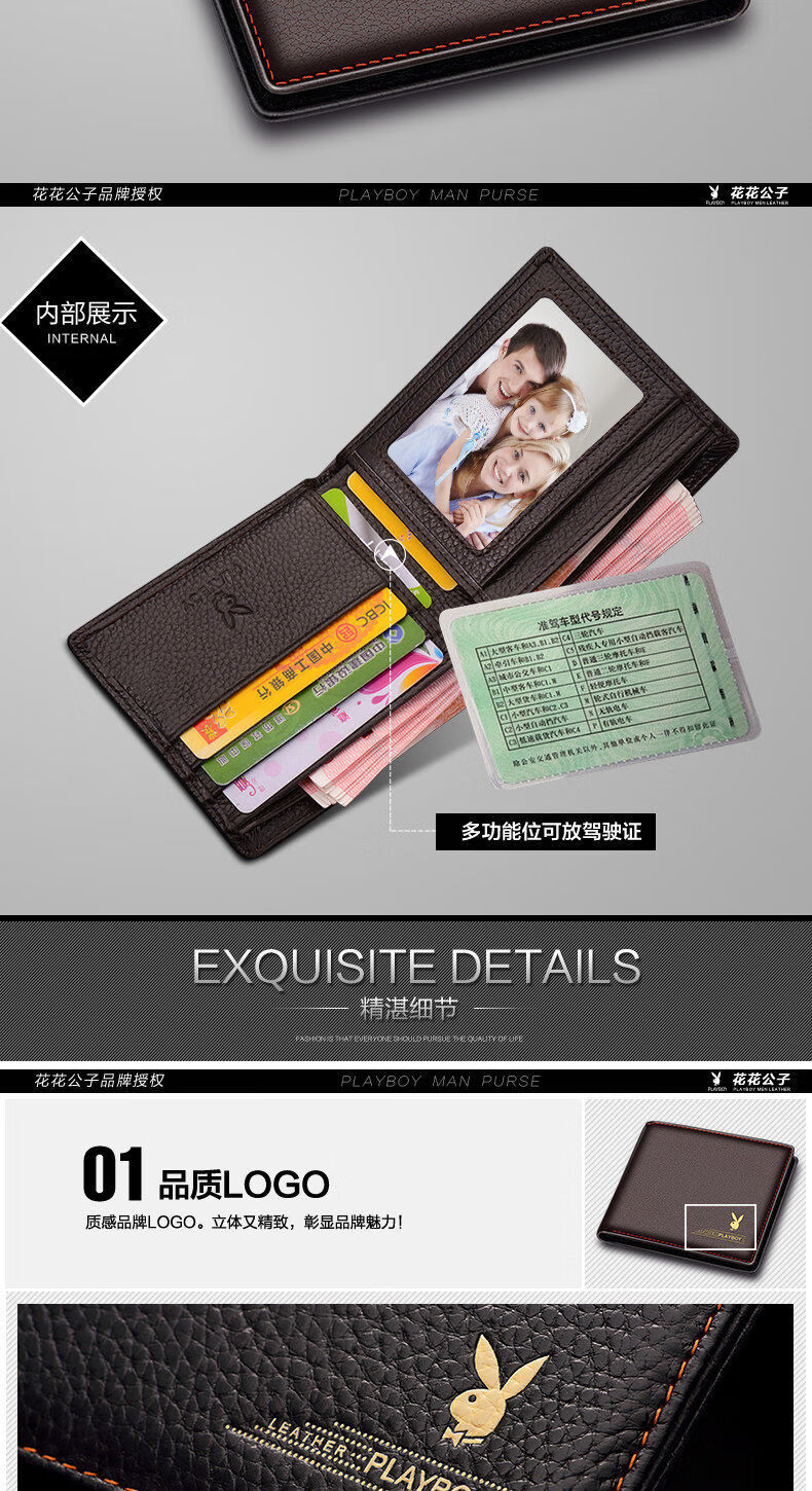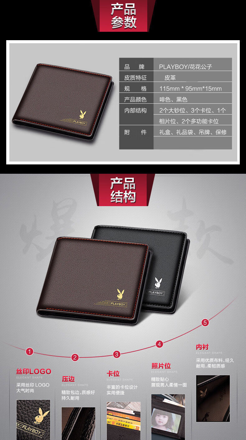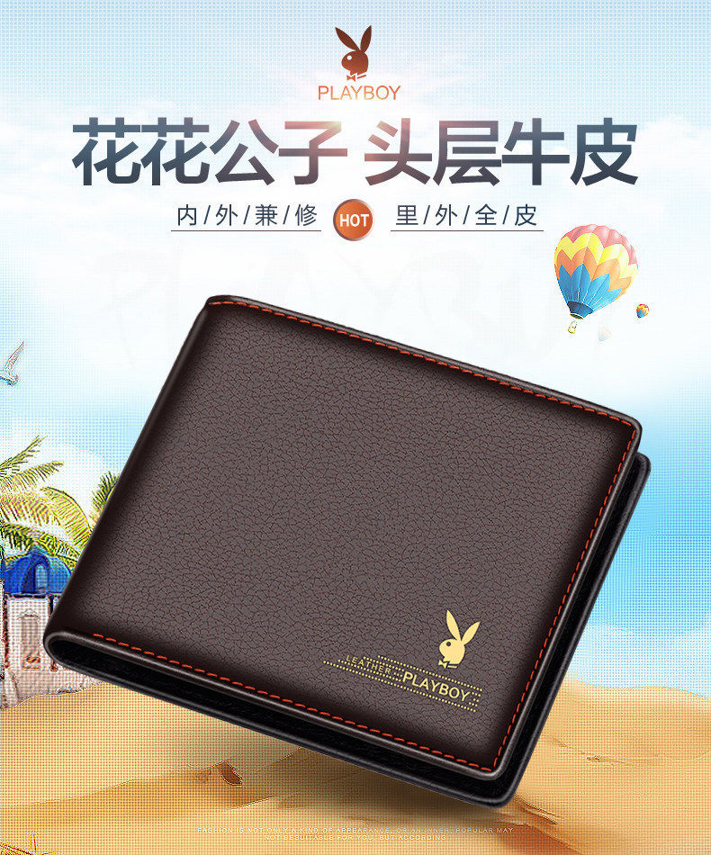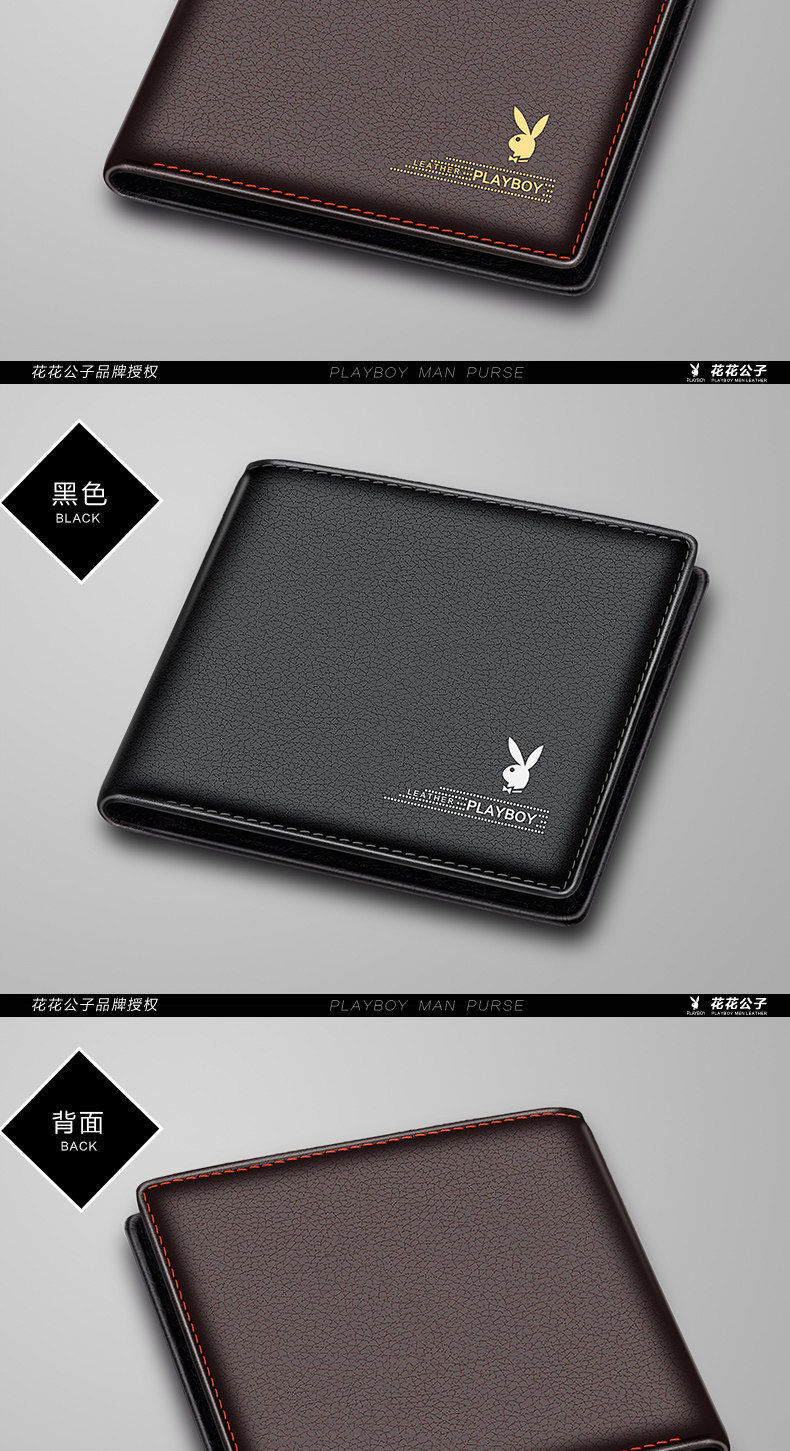 Playboy Solid Color Wallet Men's Wallet Genuine Leather Short Thickened First Layer Soft Cowhide Folding Wallet PLAYBOY/Black Hot Stamping