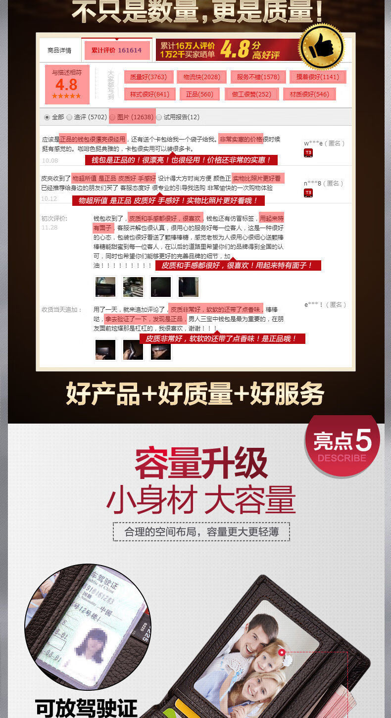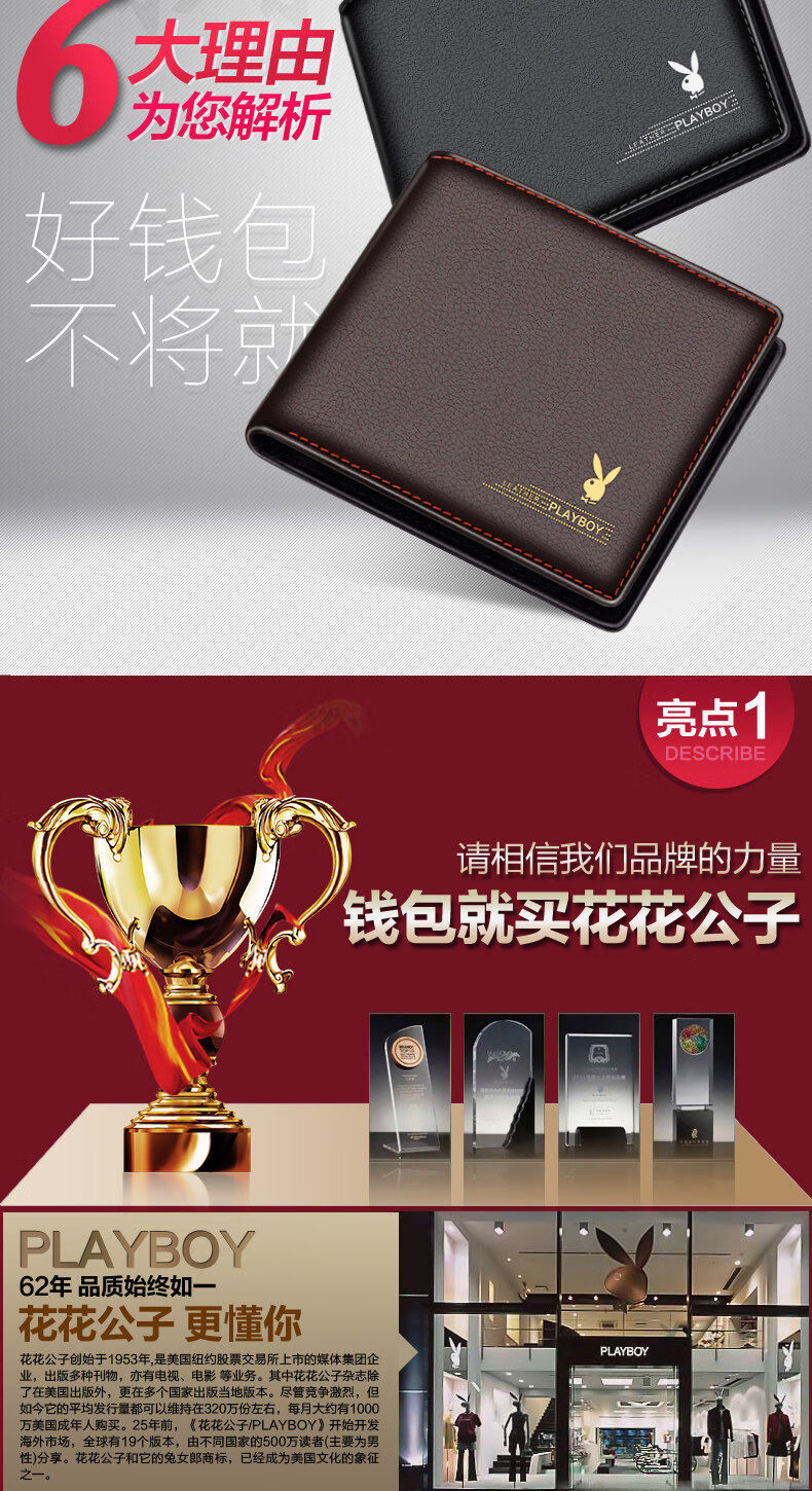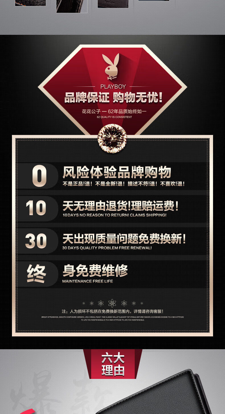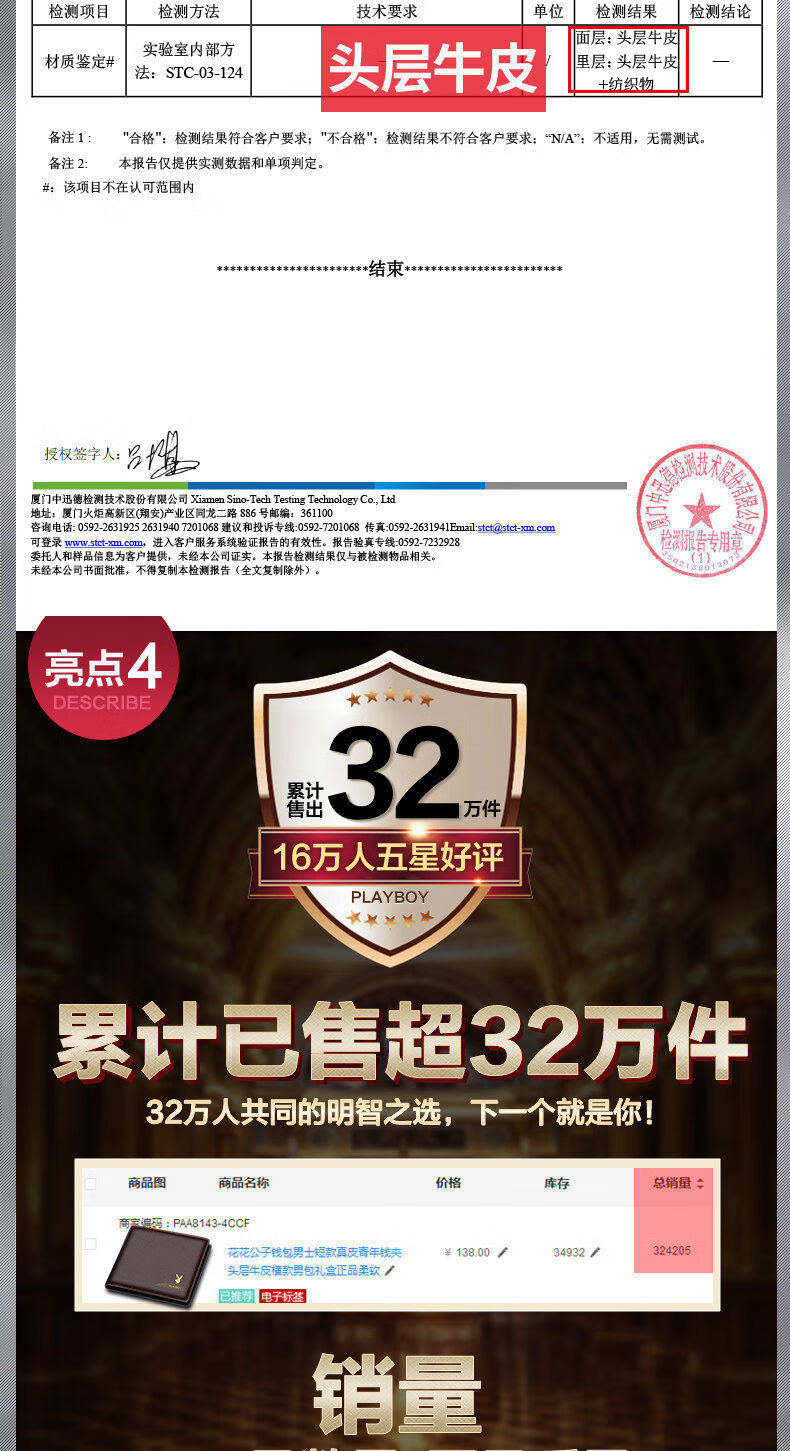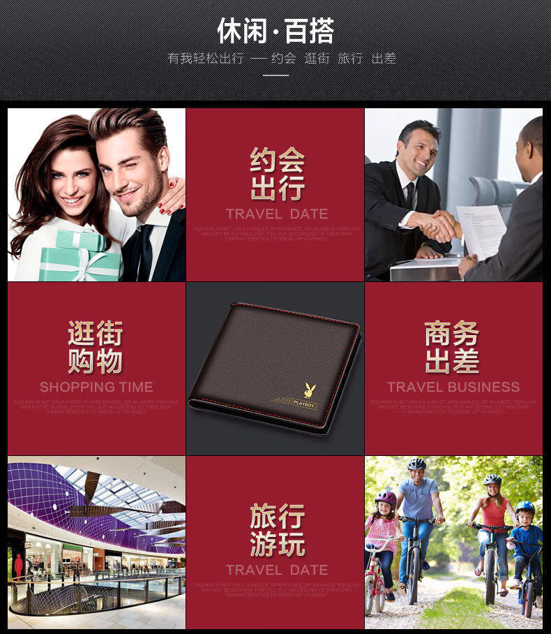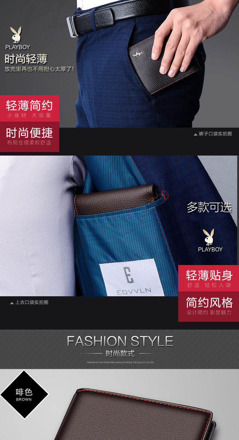 Playboy Solid Color Wallet Men's Wallet Genuine Leather Short Thickened First Layer Soft Cowhide Folding Wallet PLAYBOY/Black Hot Stamping