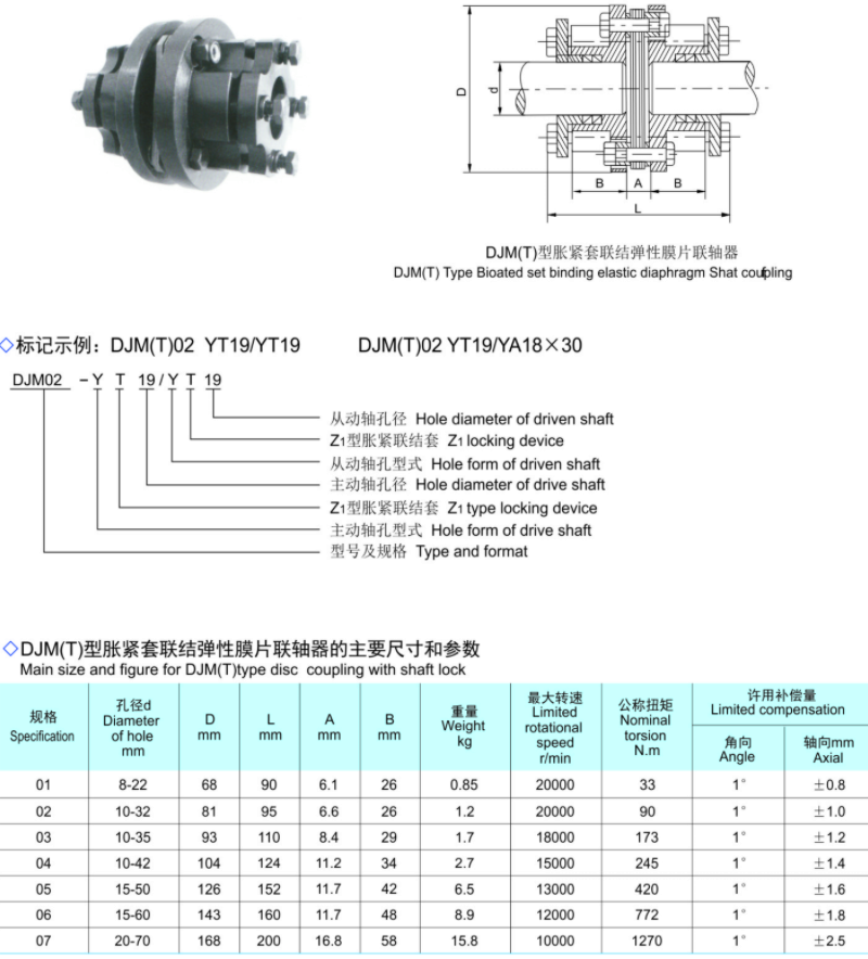 Yue Changsheng diaphragm coupling with expansion sleeve 45 steel high precision high torque DJM module coupling ZDJM07