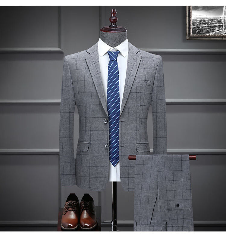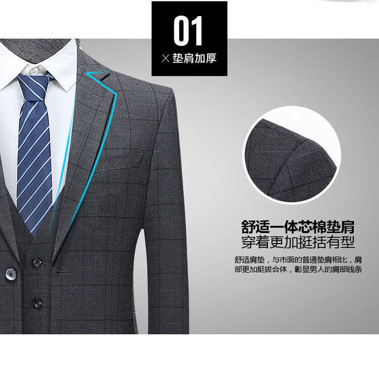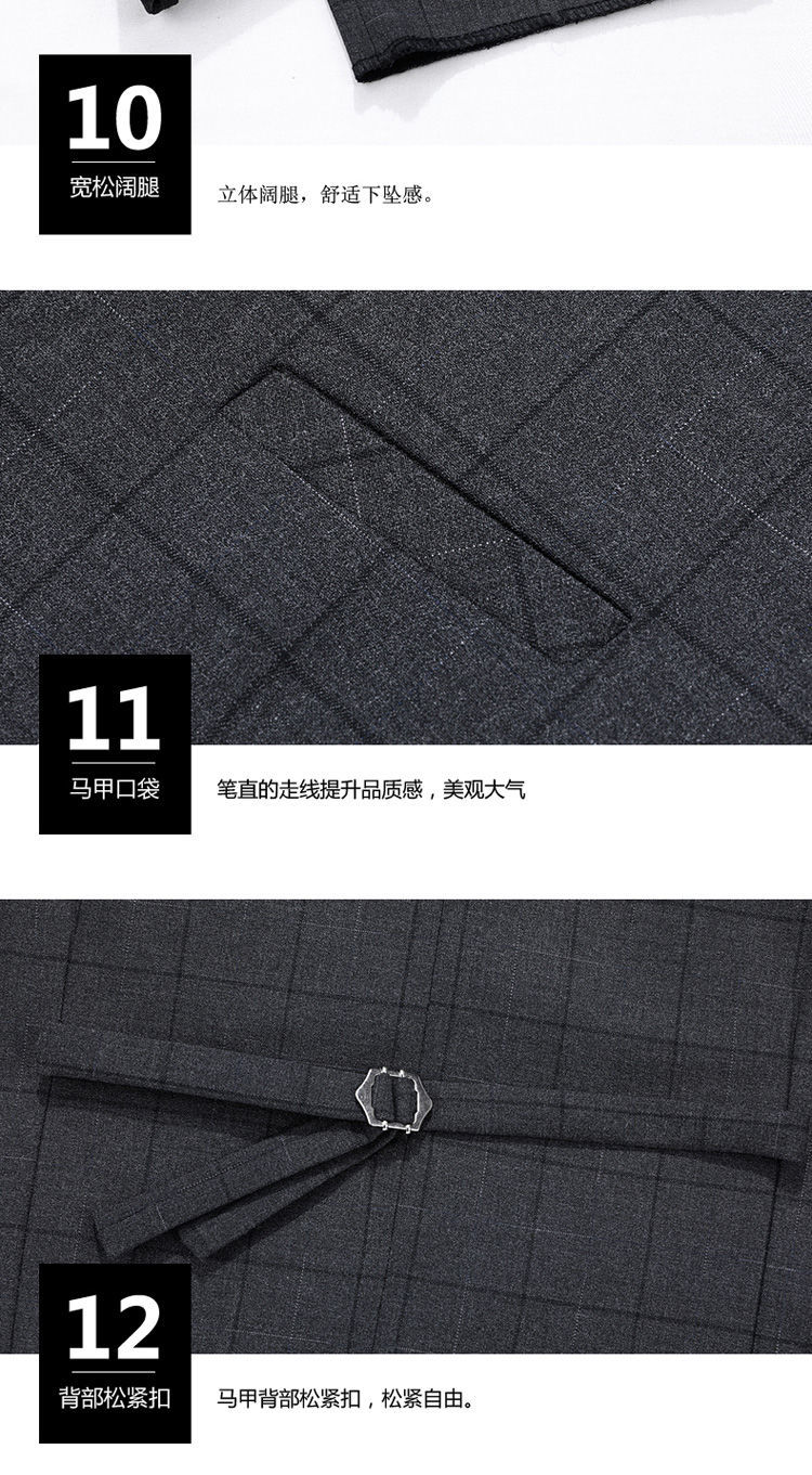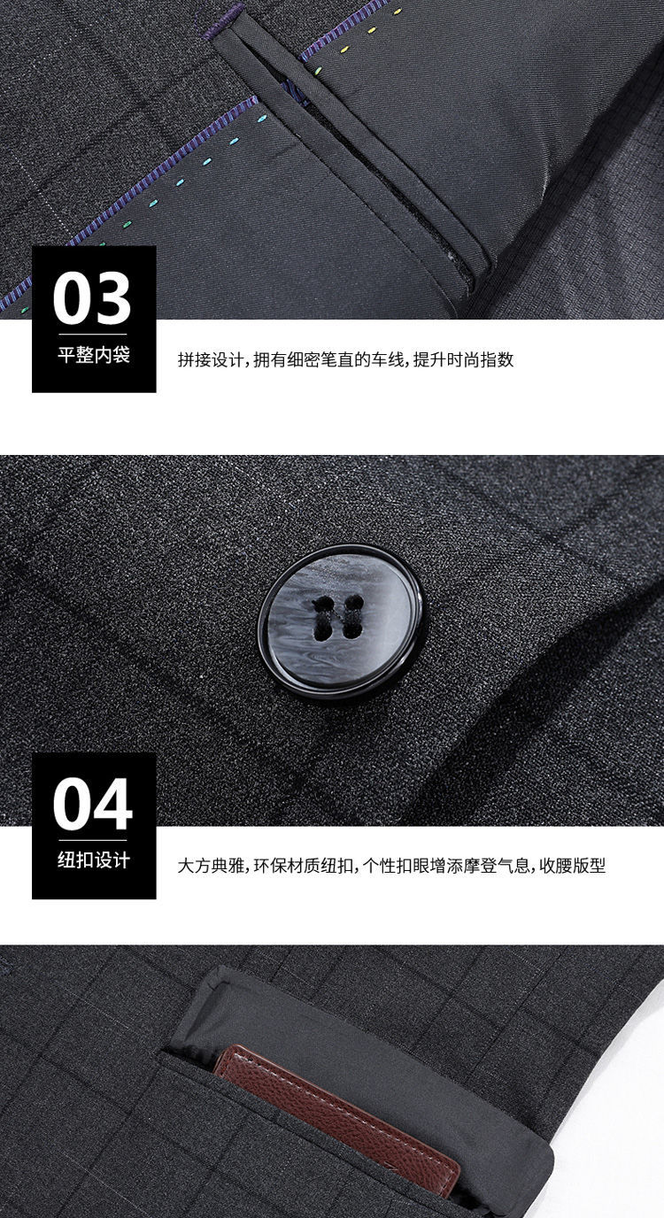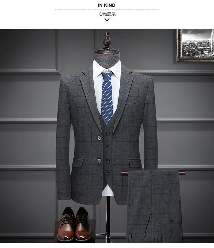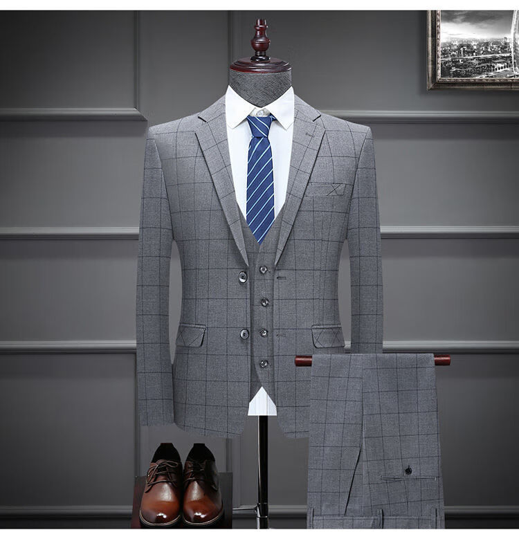 Pierre Cardin Groom's Suit Suit Men's Korean Style Wedding Dress Business Casual Professional Wear Plaid Three-piece Small Suit 8908 Medium Gray Plaid Suit+Trousers+Vest XL 180 Recommended 140-150Jin Jin equals 0.5 kg