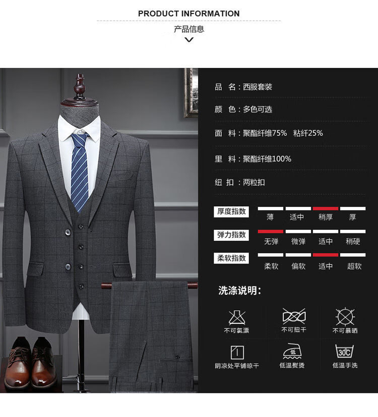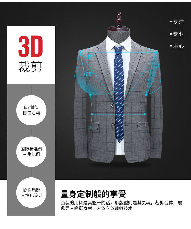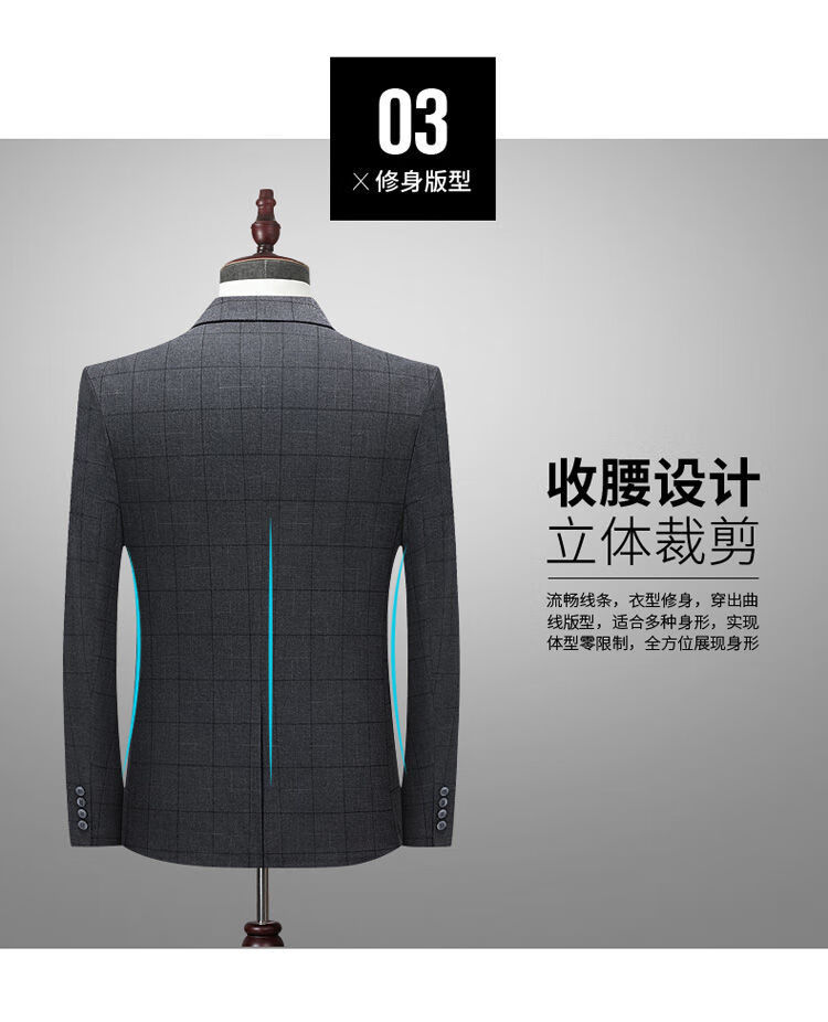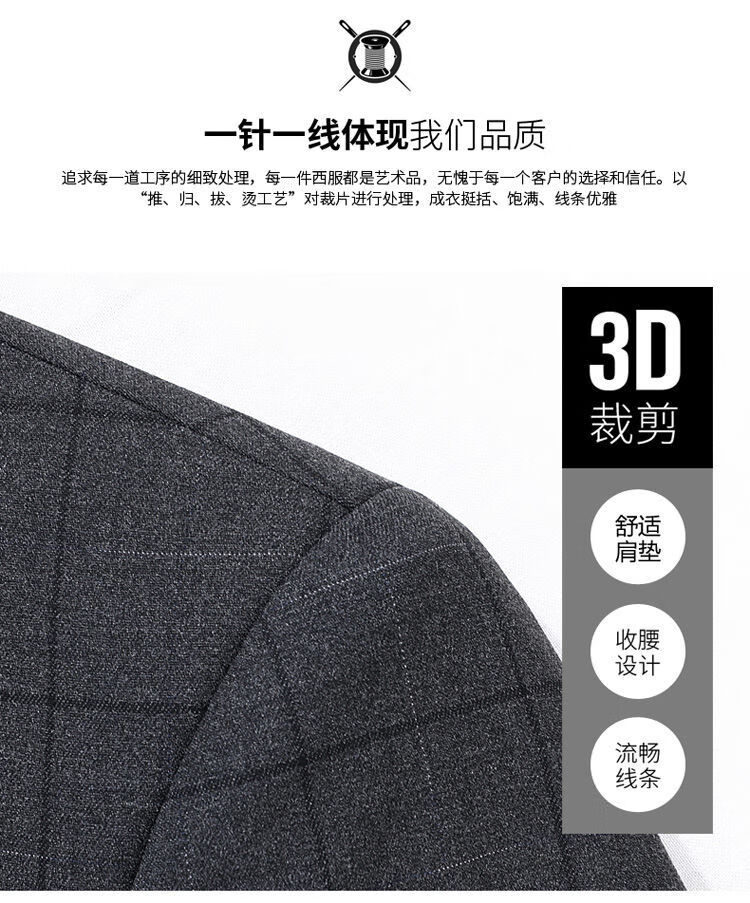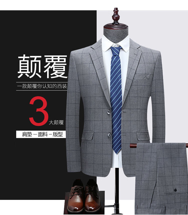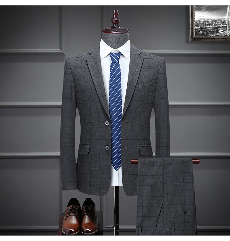 Pierre Cardin Groom's Suit Suit Men's Korean Style Wedding Dress Business Casual Professional Wear Plaid Three-piece Small Suit 8908 Medium Gray Plaid Suit+Trousers+Vest XL 180 Recommended 140-150Jin Jin equals 0.5 kg