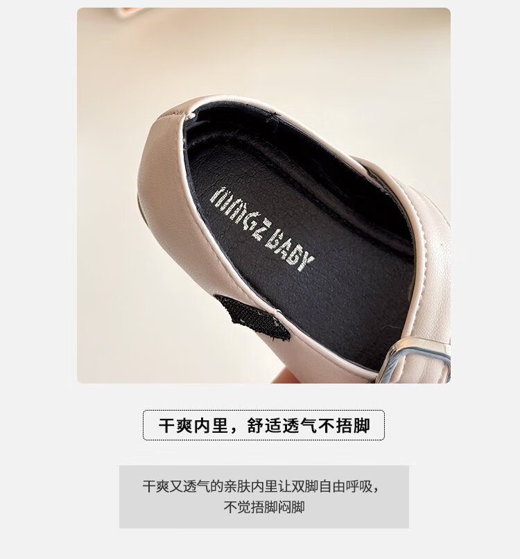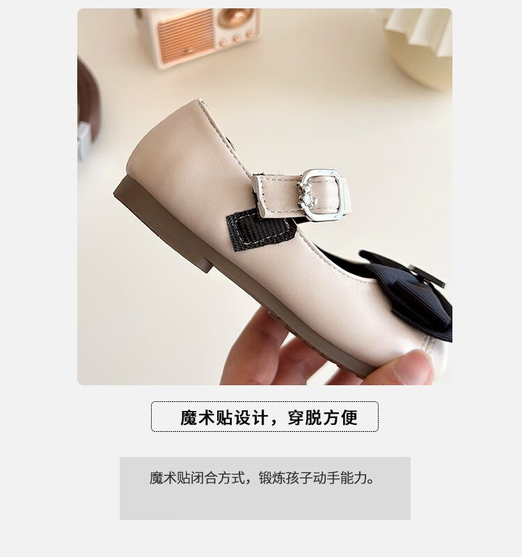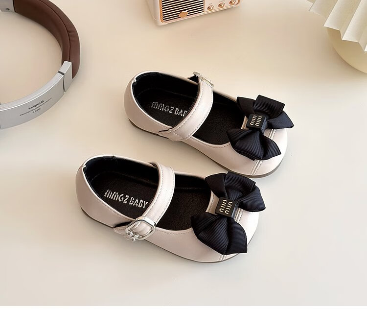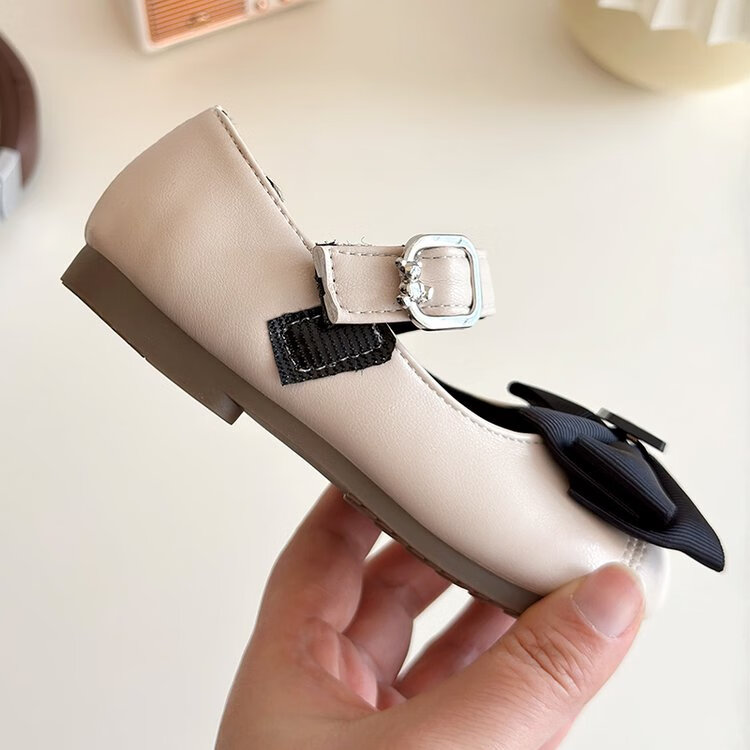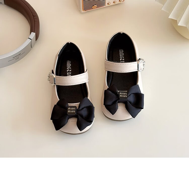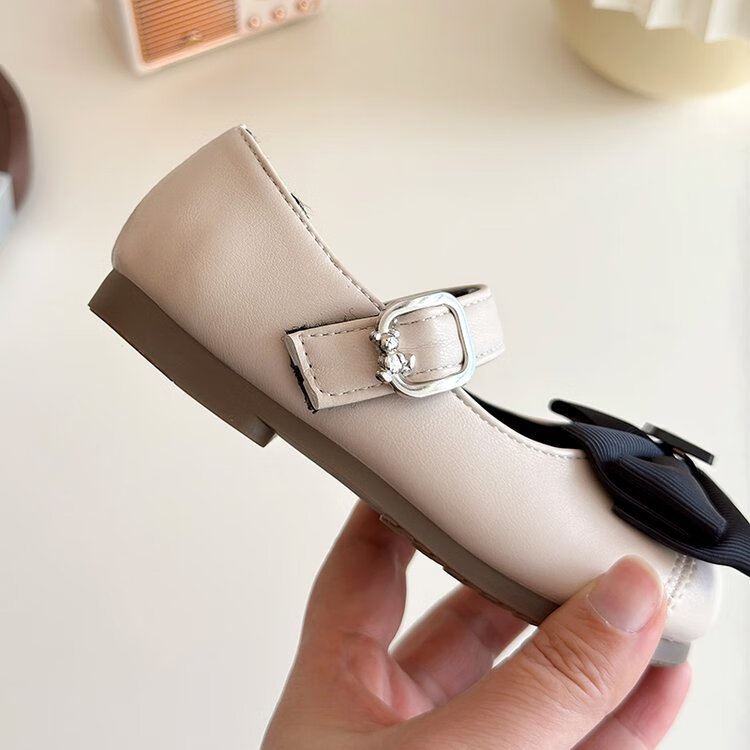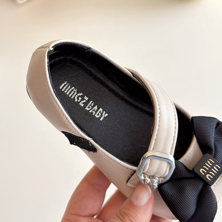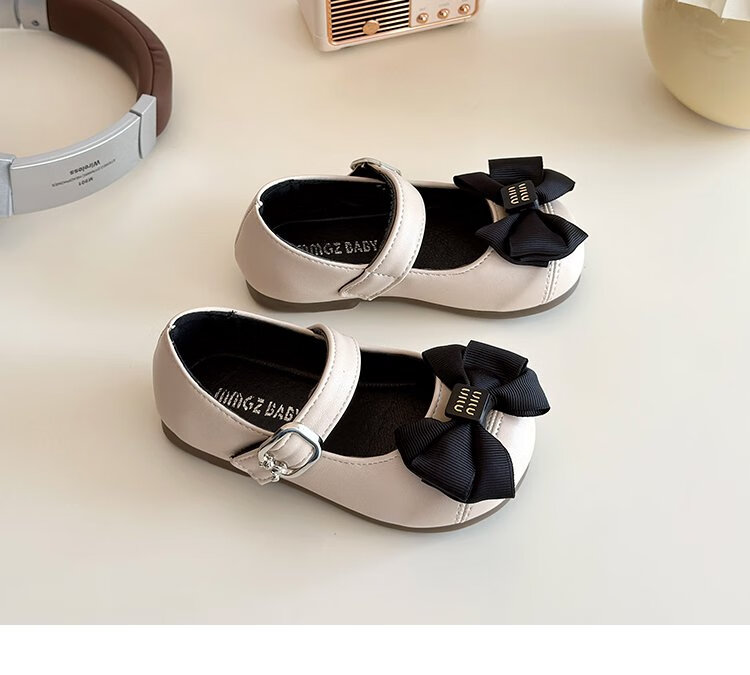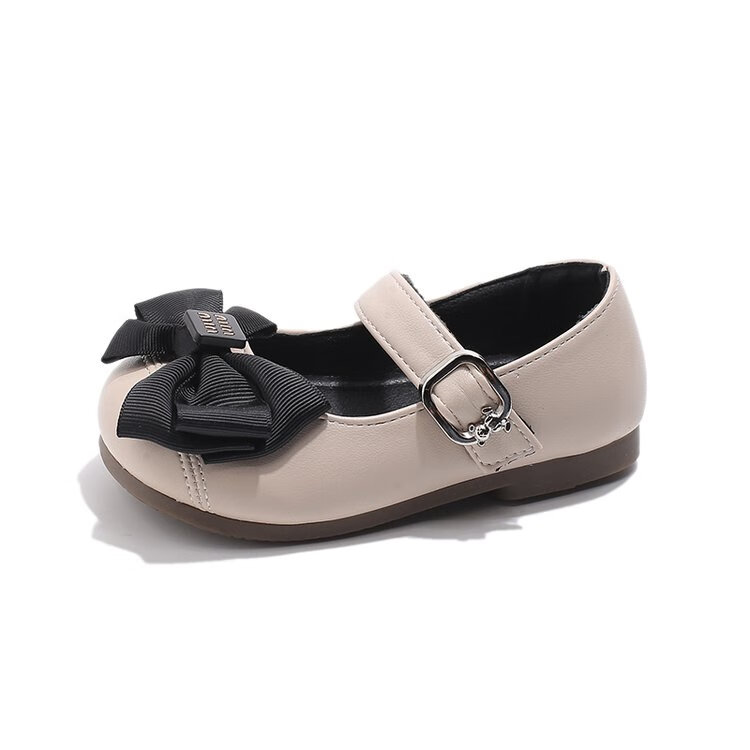 Korean version of sweet bow girls princess shoes 2025 spring new children's small leather shoes soft sole baby shoes trendy beige 21