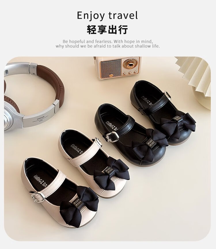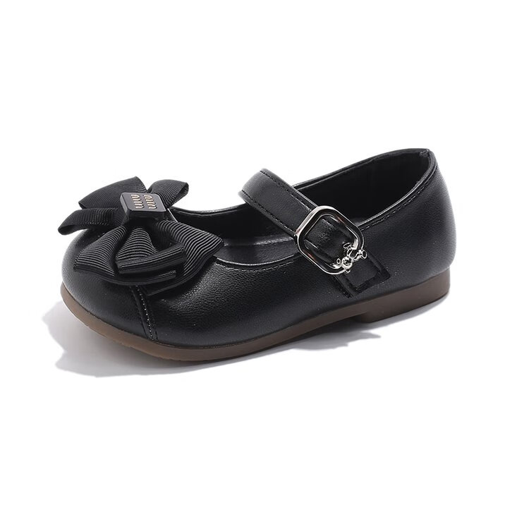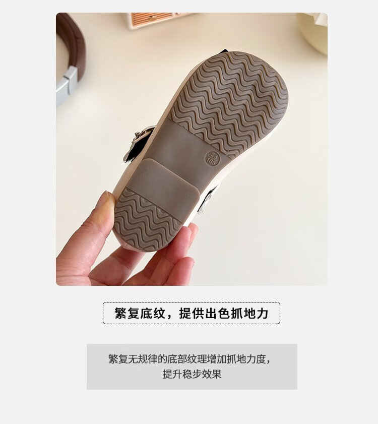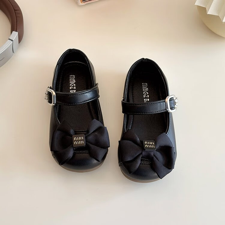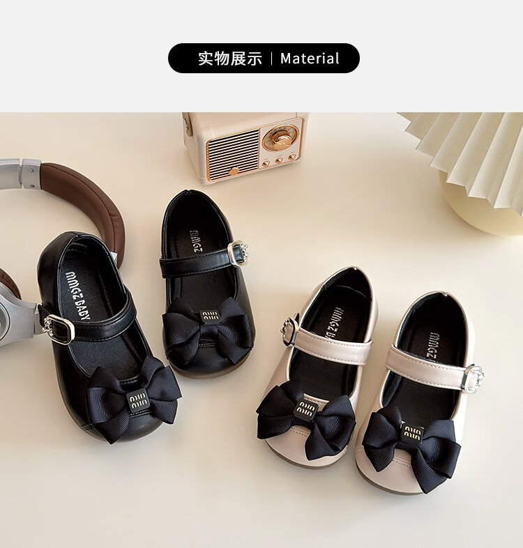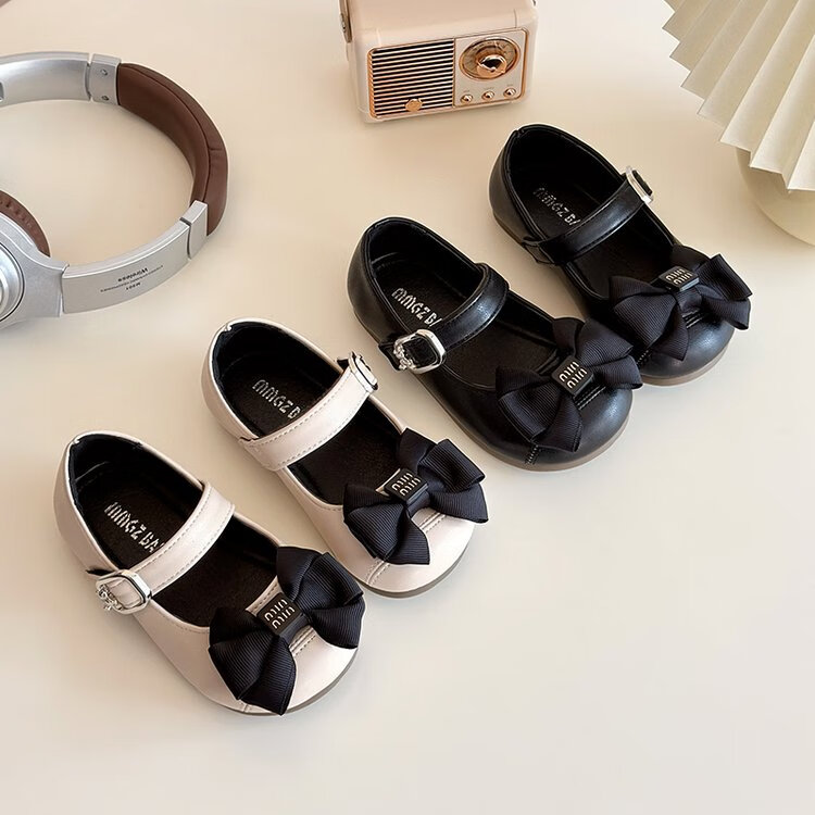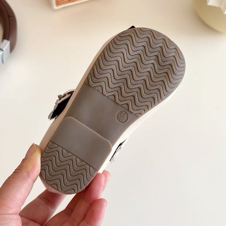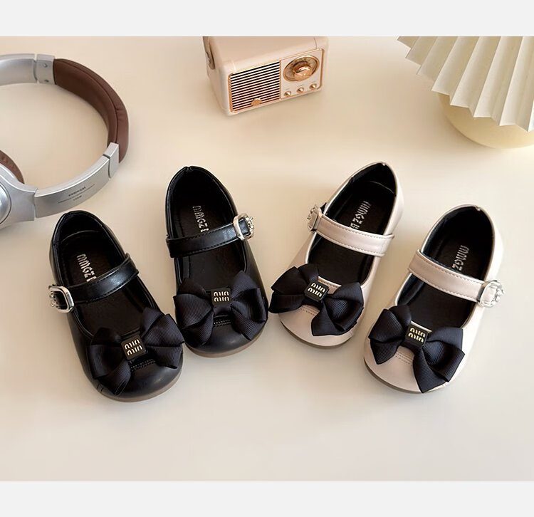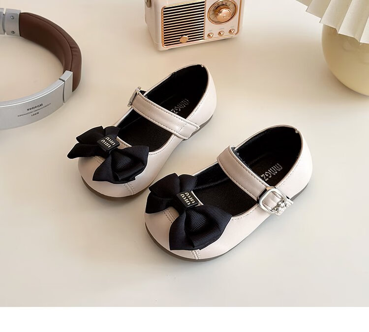 Korean version of sweet bow girls princess shoes 2025 spring new children's small leather shoes soft sole baby shoes trendy beige 21