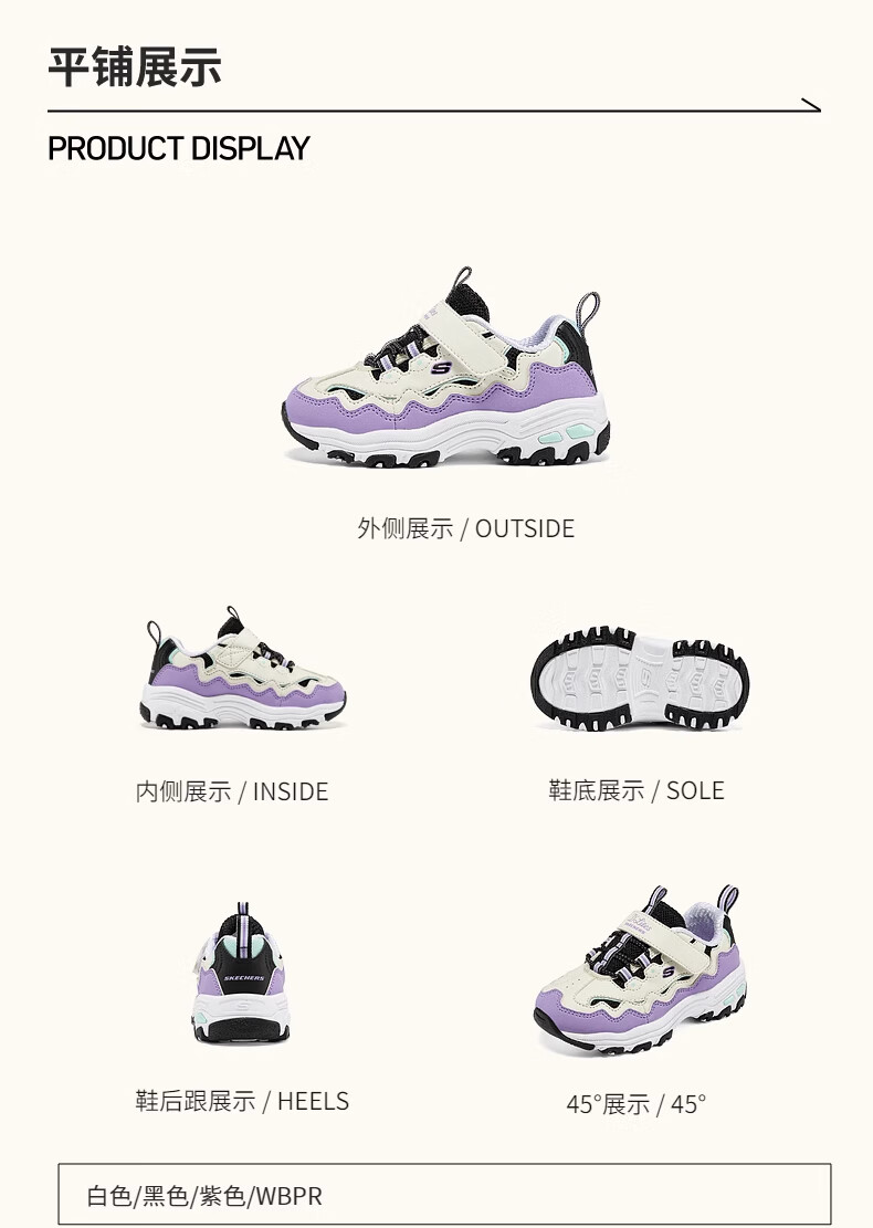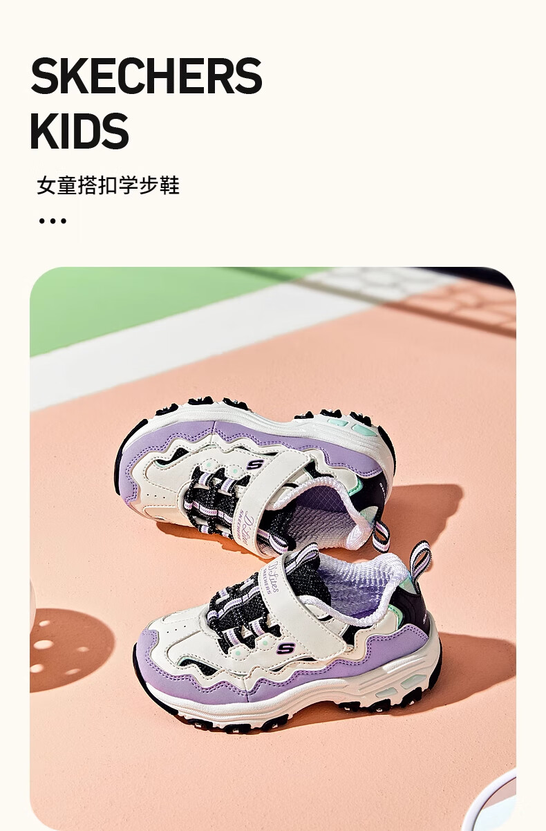 Skechers Children's Spring and Autumn Baby Retro Dad Shoes Fashion Trend Girls Light Sports Shoes 319028N Pink/Yellow/PKYL 25