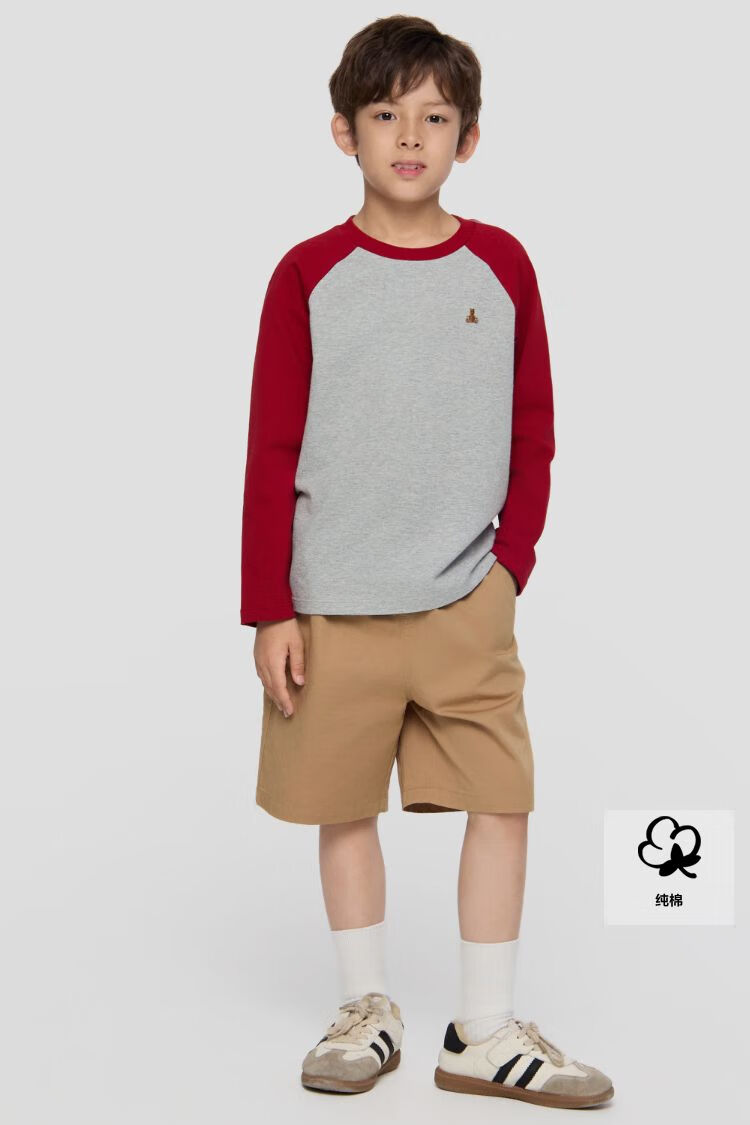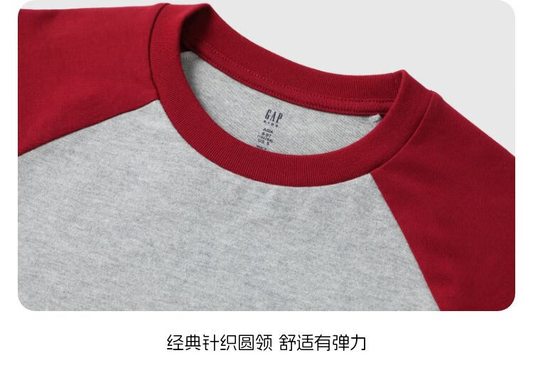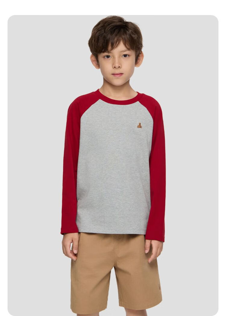 Gap Boys 2025 Autumn New Pure Cotton Bear Embroidery Contrast Color Loose T-shirt Children's Wear Long Sleeve 805080 Light Gray 120 cm (6-7 years old) Asian size