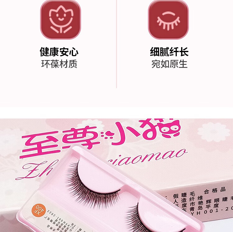 Supreme kitten style eyelashes, natural, daily, lightweight, one pair, easy to wear, long and short false eyelashes XF400 Supreme kitten false eyelashes XF400 (1 box)
