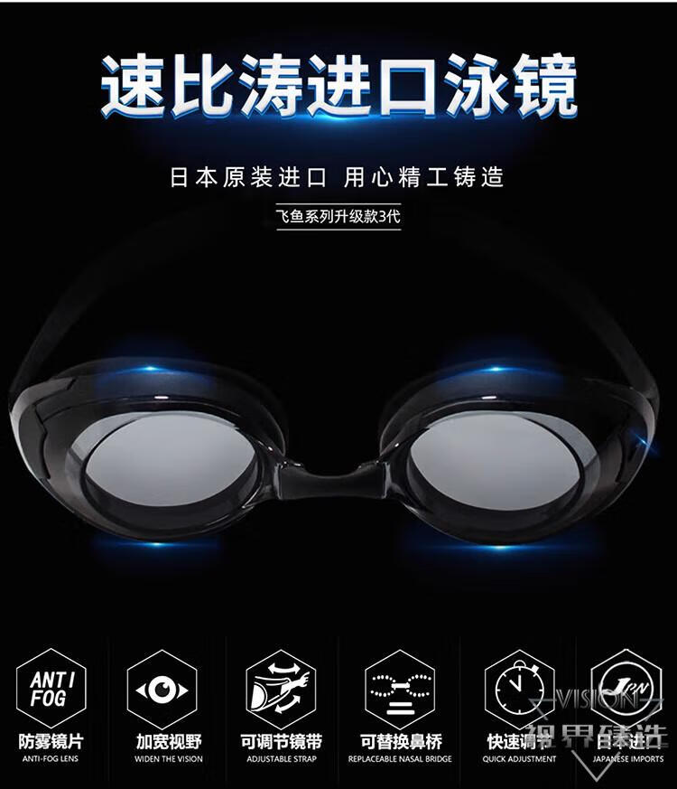 Speedo Japanese imported swimming goggles Flying Fish 3rd generation waterproof and anti-fog HD men's and women's large frame professional swimming goggles wide field of view black/dark gray 80% of customers choose imported Flying Fish 3rd generation a good healthy companion