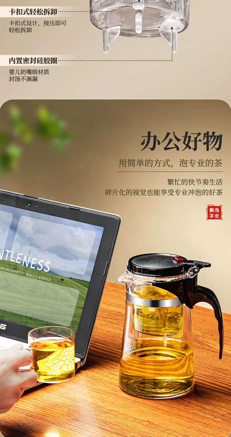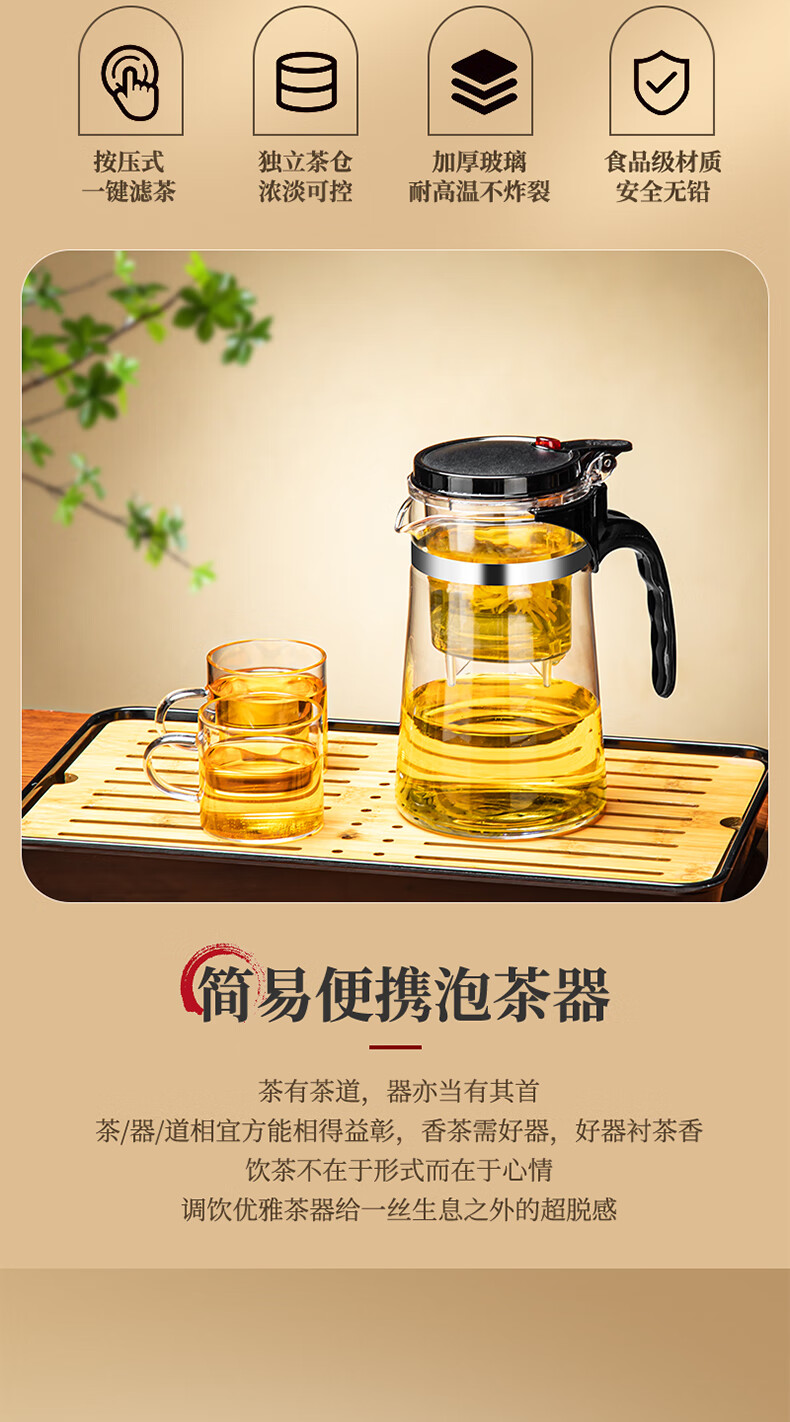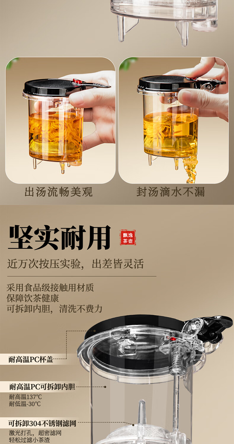 Tea making kettle teacup elegant pot one-touch tea water separation teapot glass household high-end large-capacity elegant cup upgraded model elegant pot 500ML