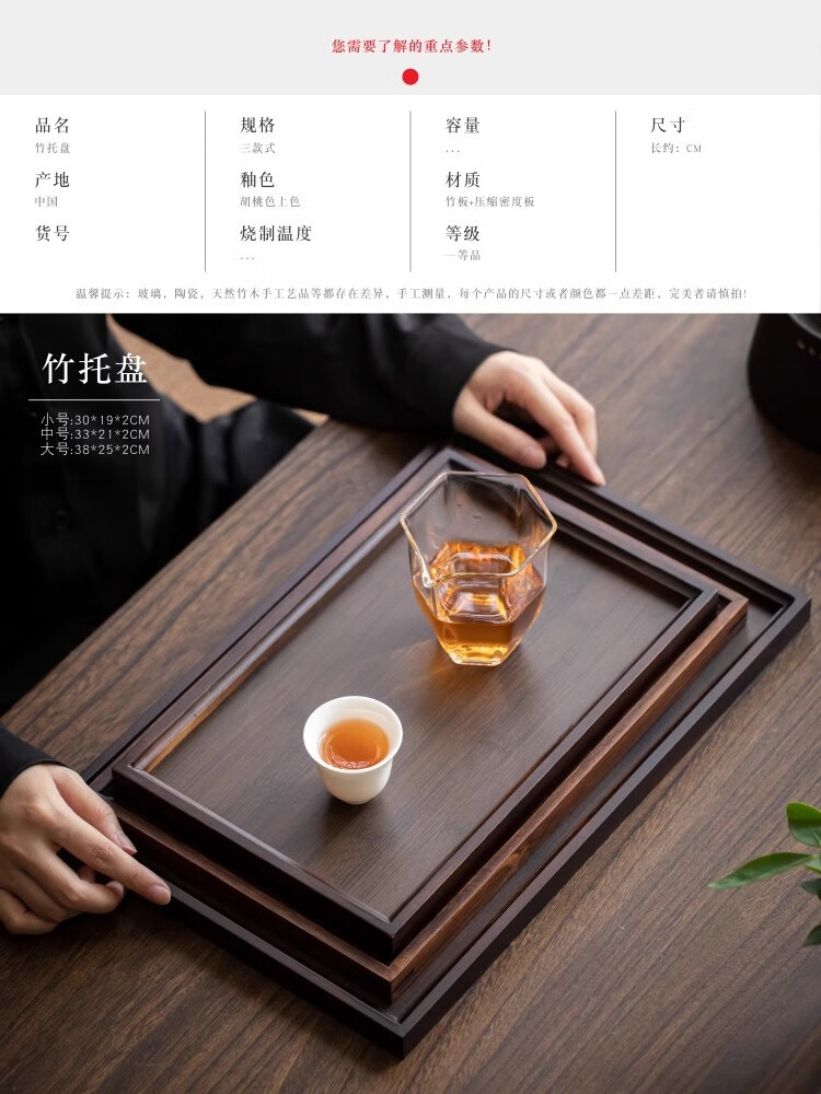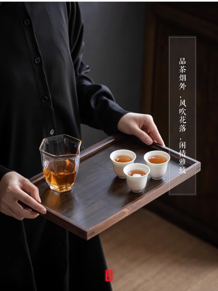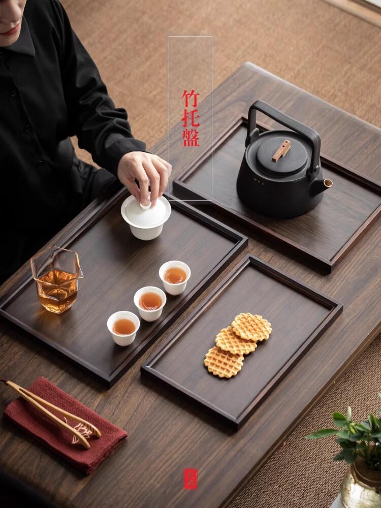 High-end Chinese-style tray bamboo rectangular Chinese-style coffee cup and tray hotel storage plate household tea cup and tray high quality-tea tray 50*38cm*2.5