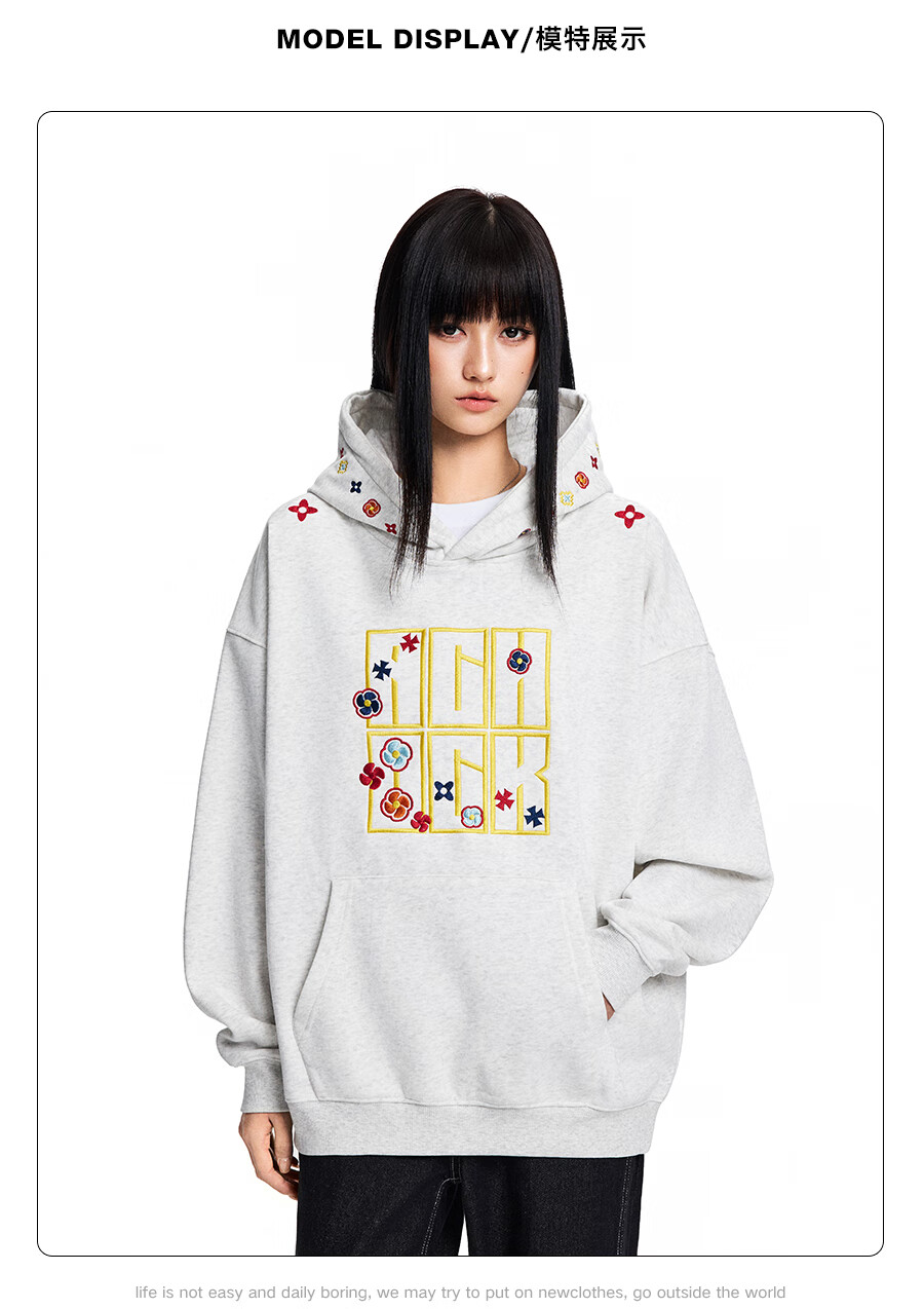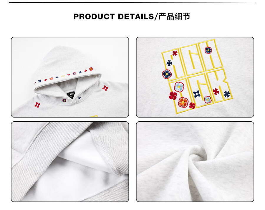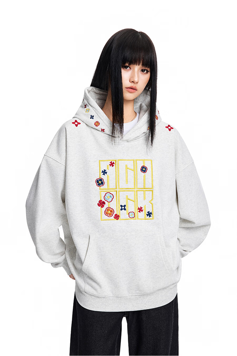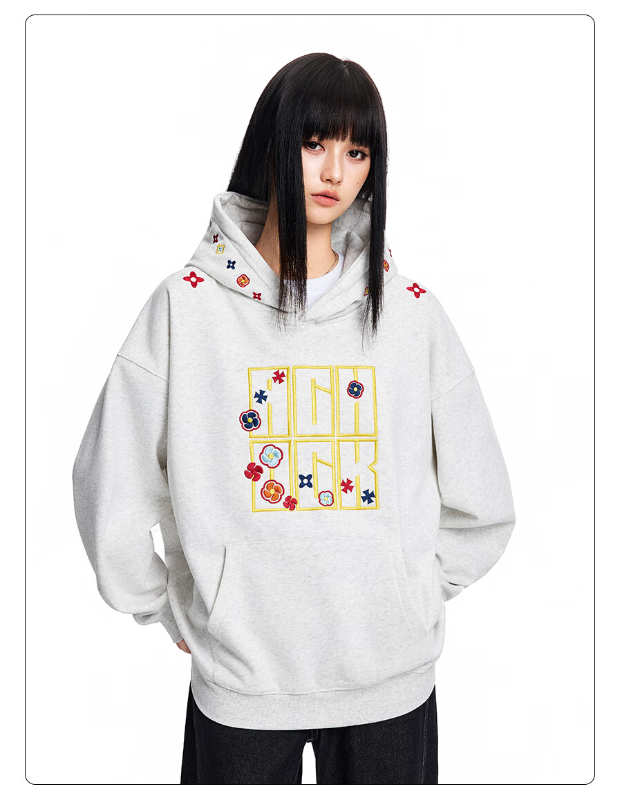 A CHOCK Achock official store American hip-hop stamp embroidery couple tops and jackets trendy brand new hooded sweatshirt white flower gray L
