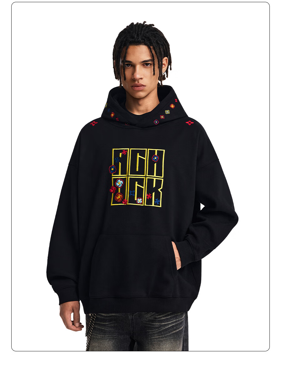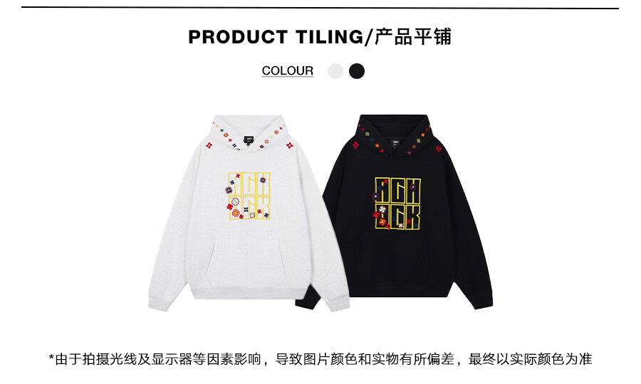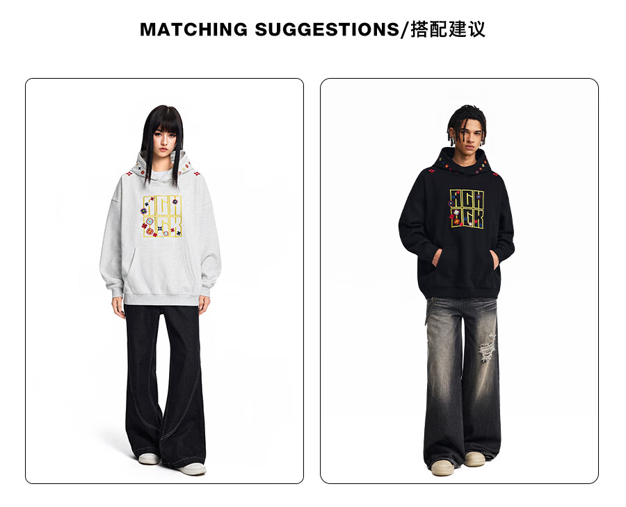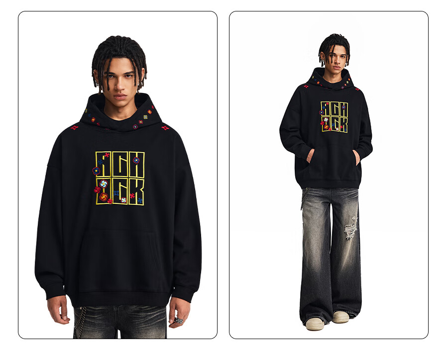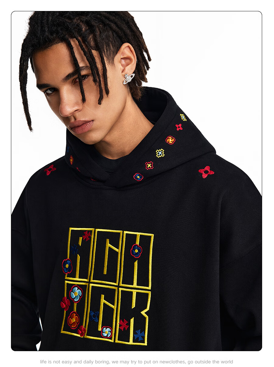 A CHOCK Achock official store American hip-hop stamp embroidery couple tops and jackets trendy brand new hooded sweatshirt white flower gray L