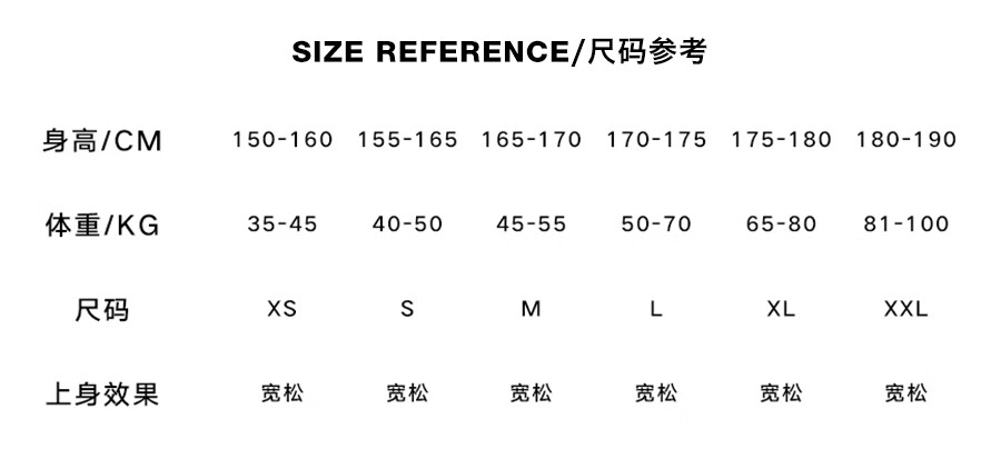 China (cm) 160-165/84-86 165-170 / 88-90 167-172 / 92-96 168-173 / 98-102 170-176 / 106-110