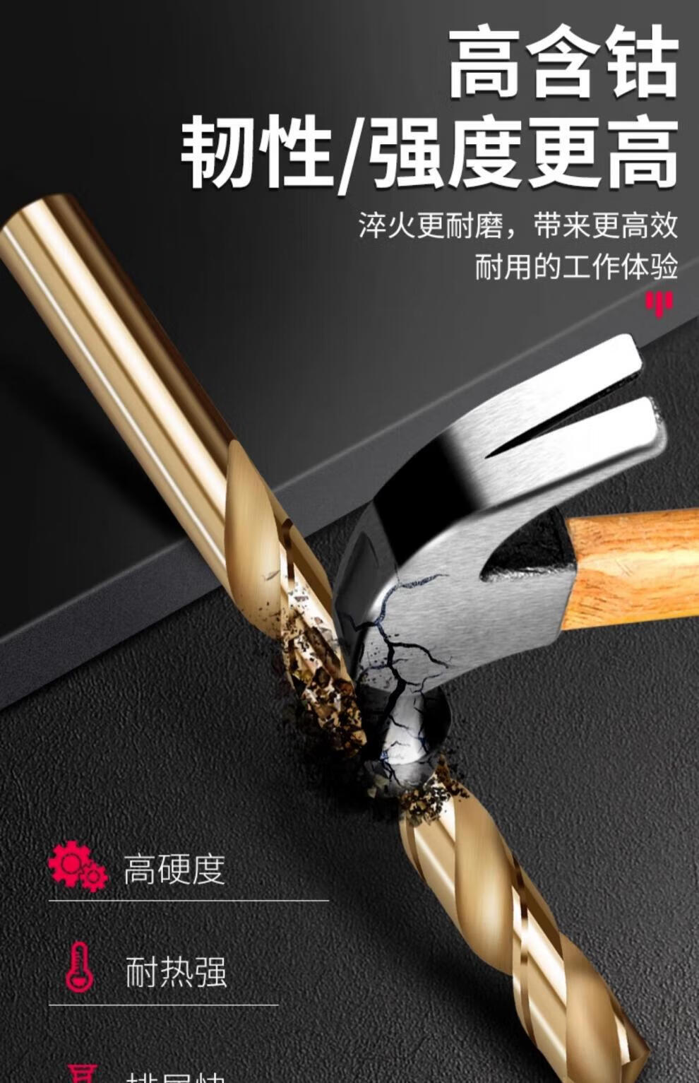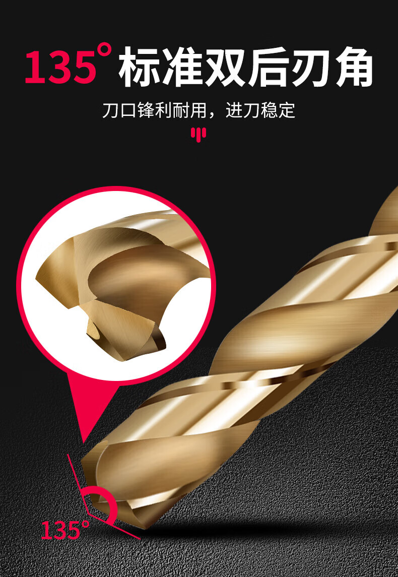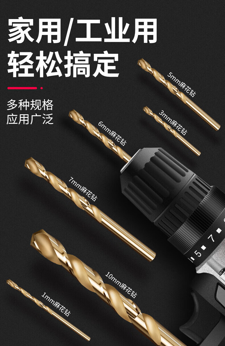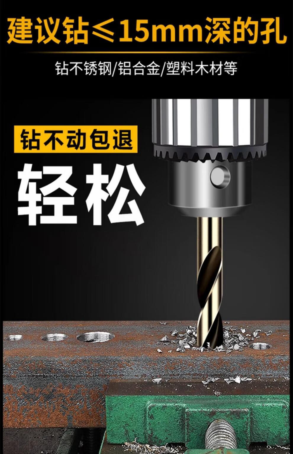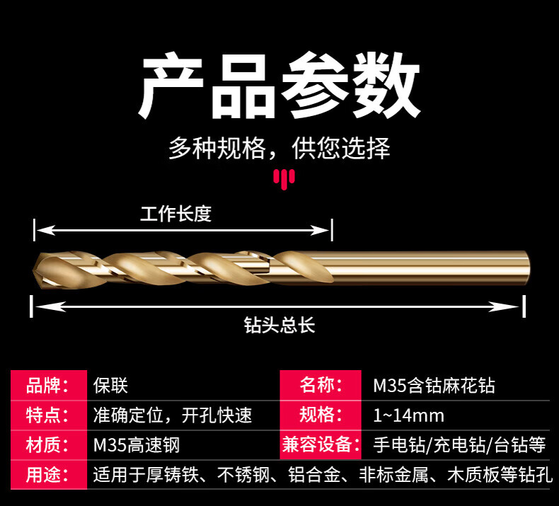Baolian twist drill bit M35 stainless steel special cobalt-containing hand electric drill for drilling steel tungsten steel alloy straight handle rotor model 8-piece set containing cobalt
