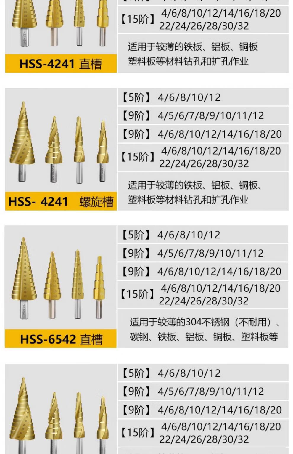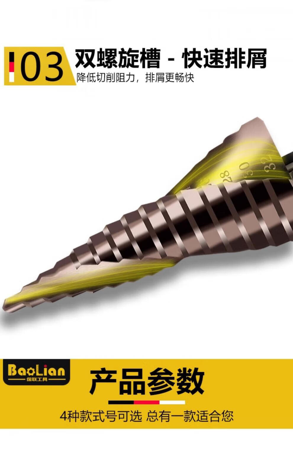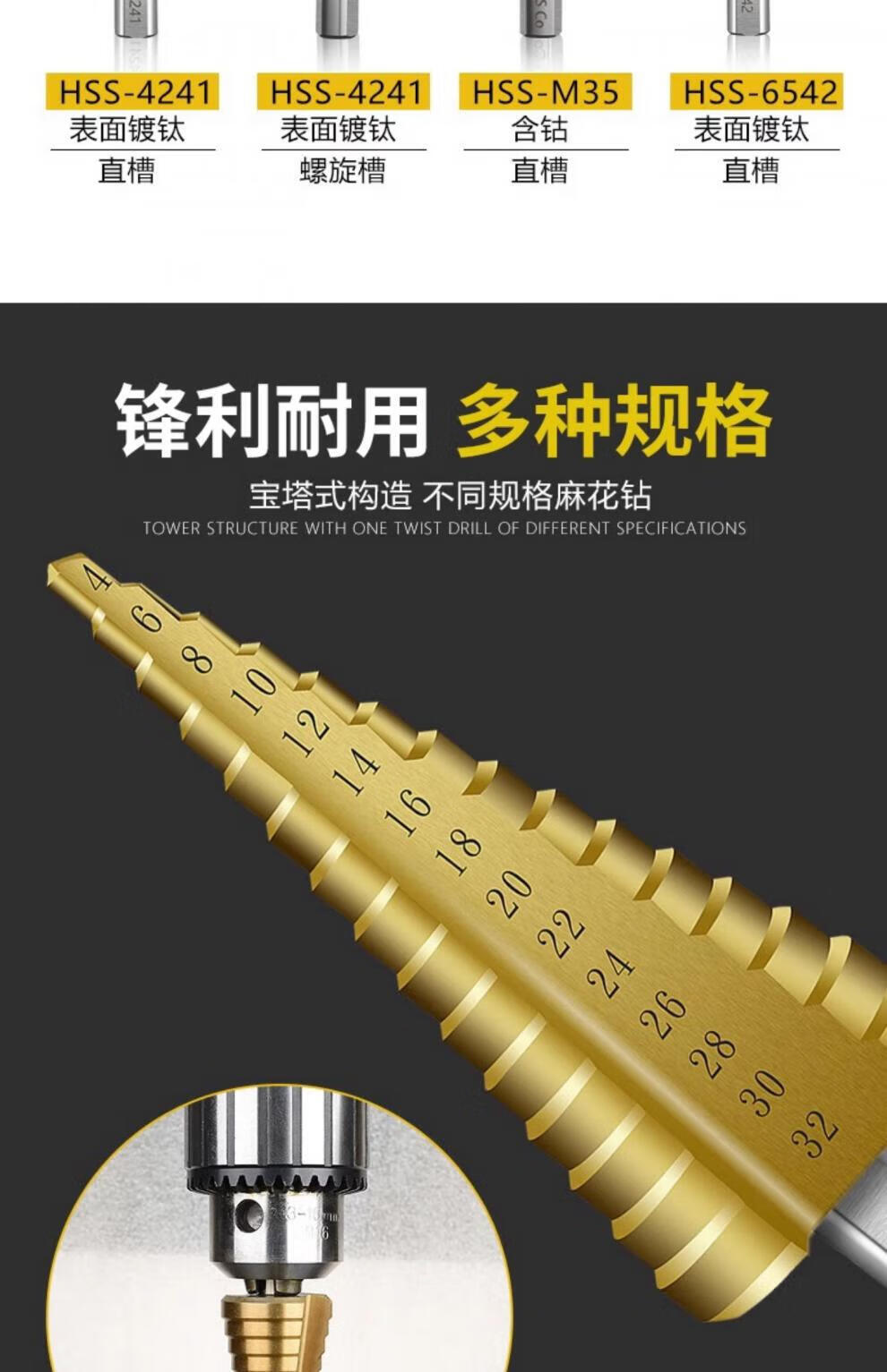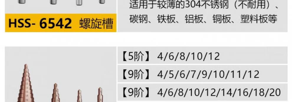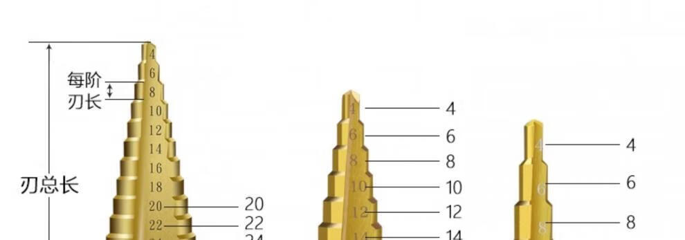 Xingong pagoda drill bit hole expander stainless steel metal hole opener punch drill step drill high hardness punch artifact metal punch 4241 spiral three-piece set