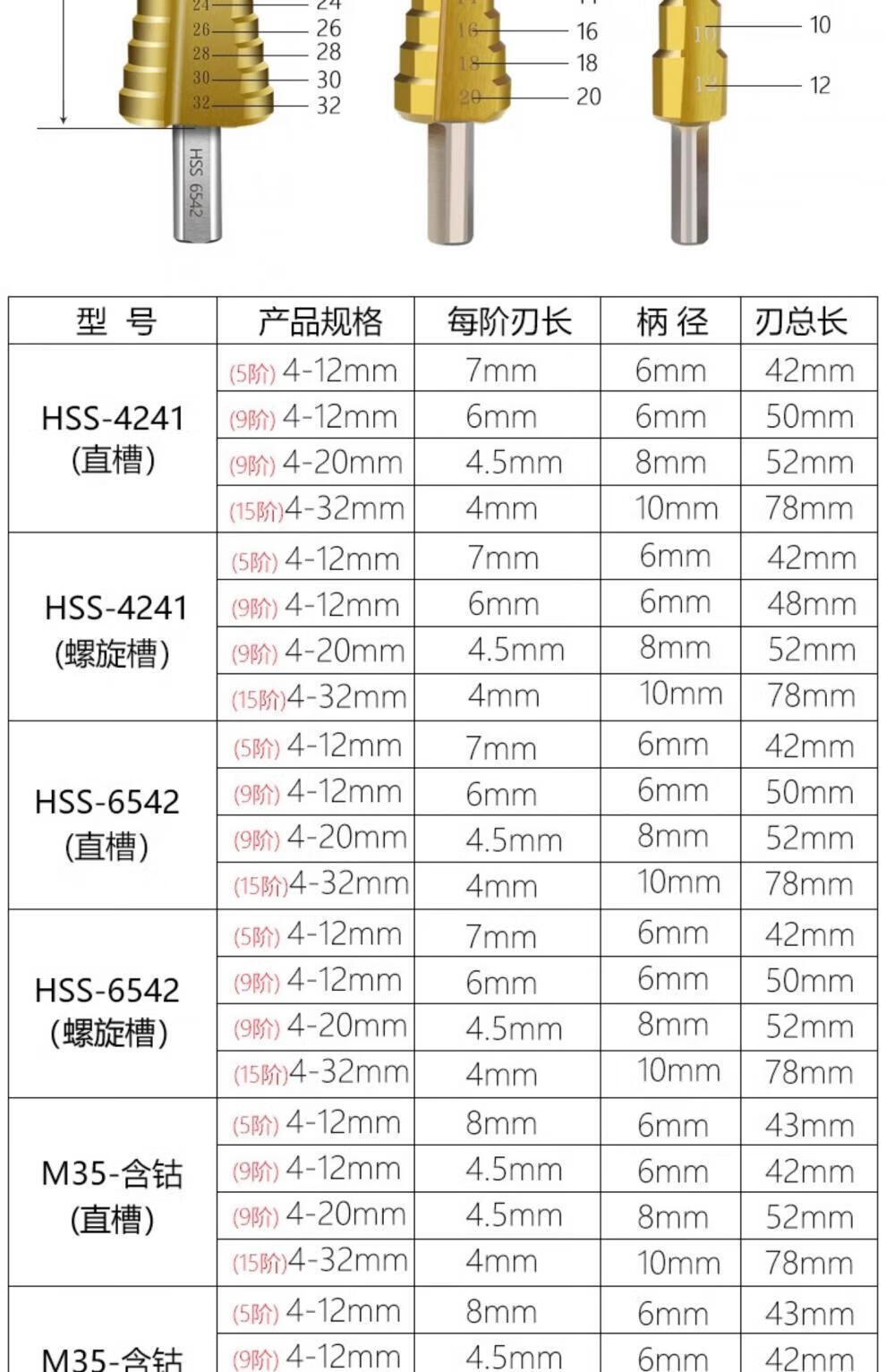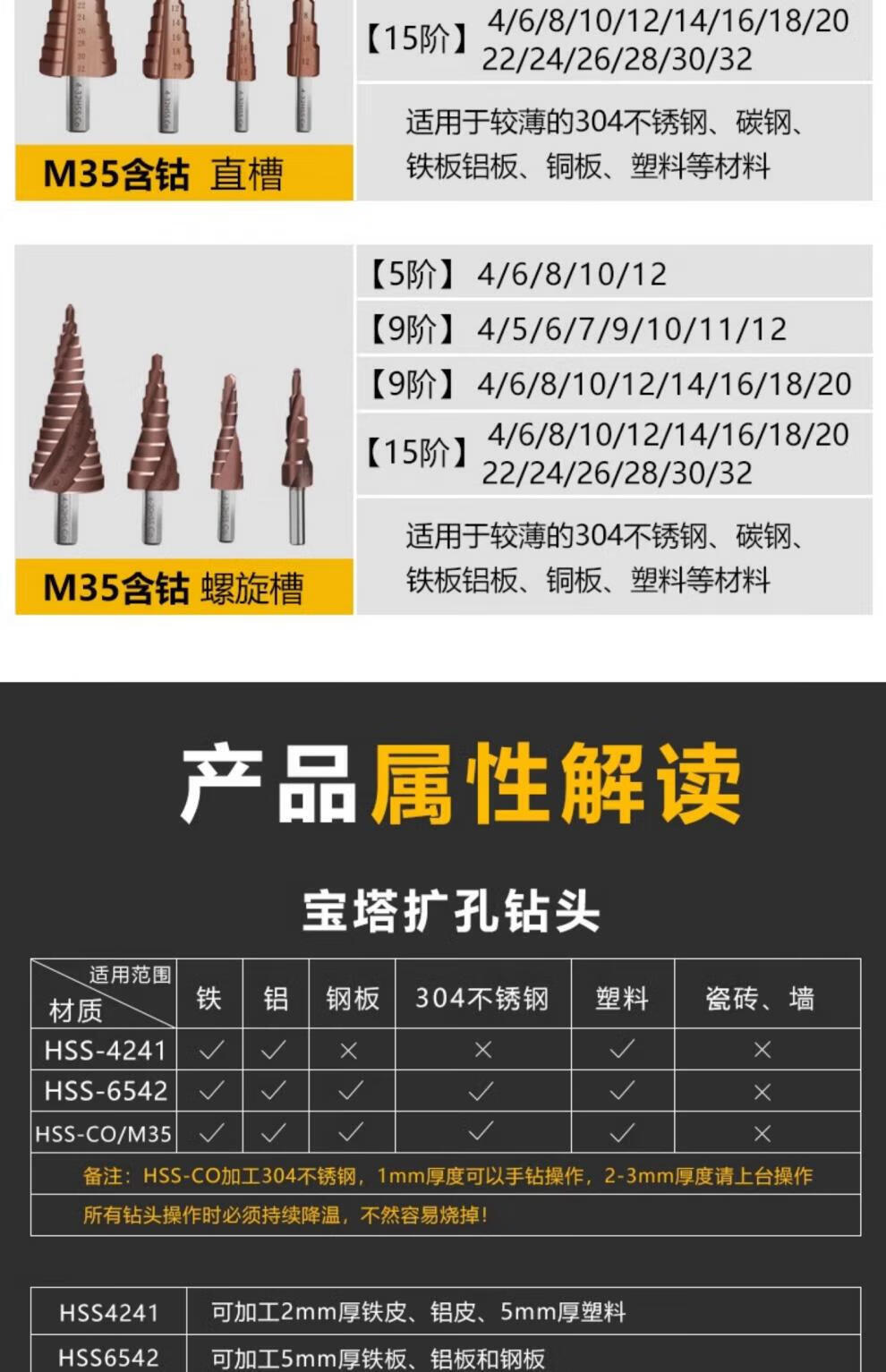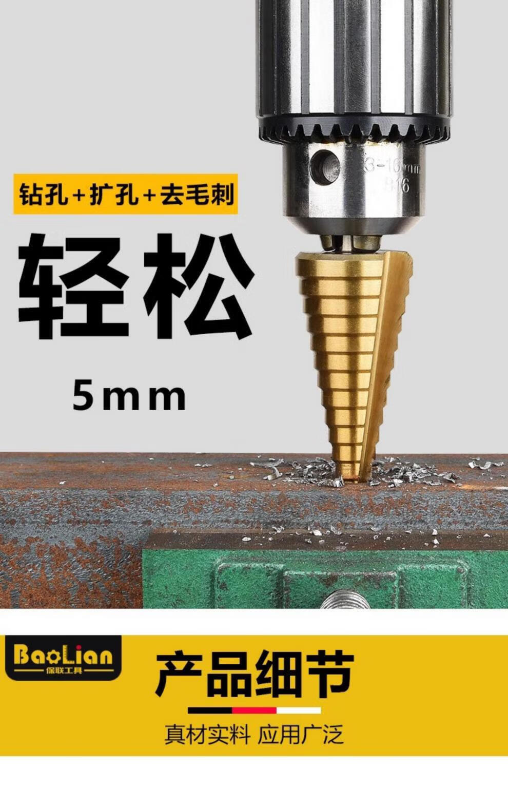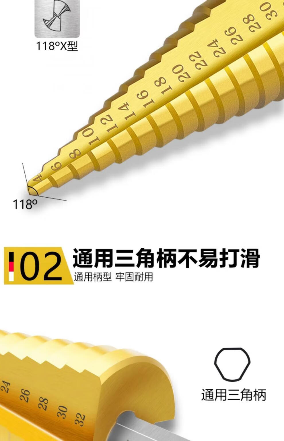 Xingong pagoda drill bit hole expander stainless steel metal hole opener punch drill step drill high hardness punch artifact metal punch 4241 spiral three-piece set