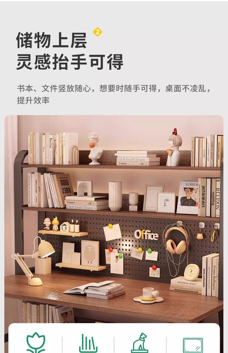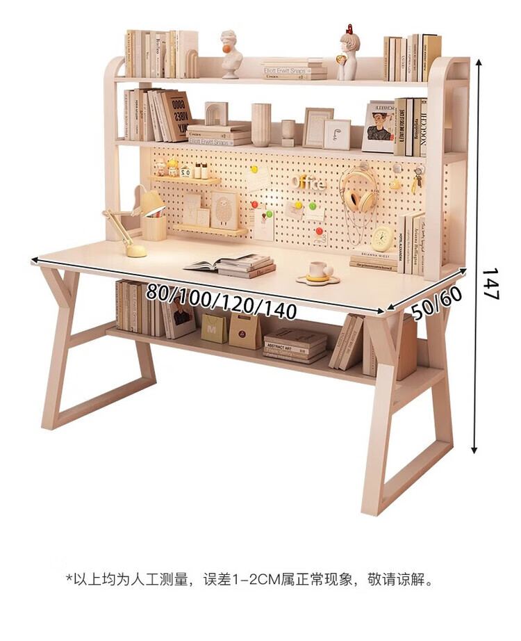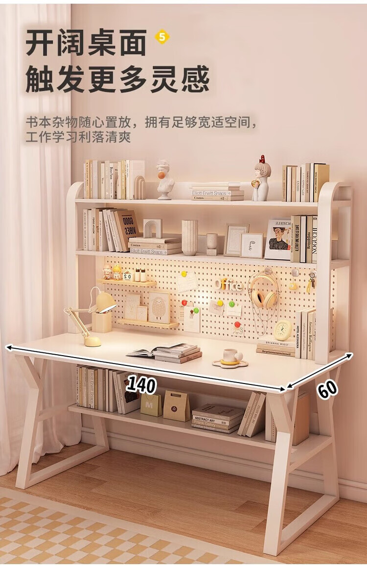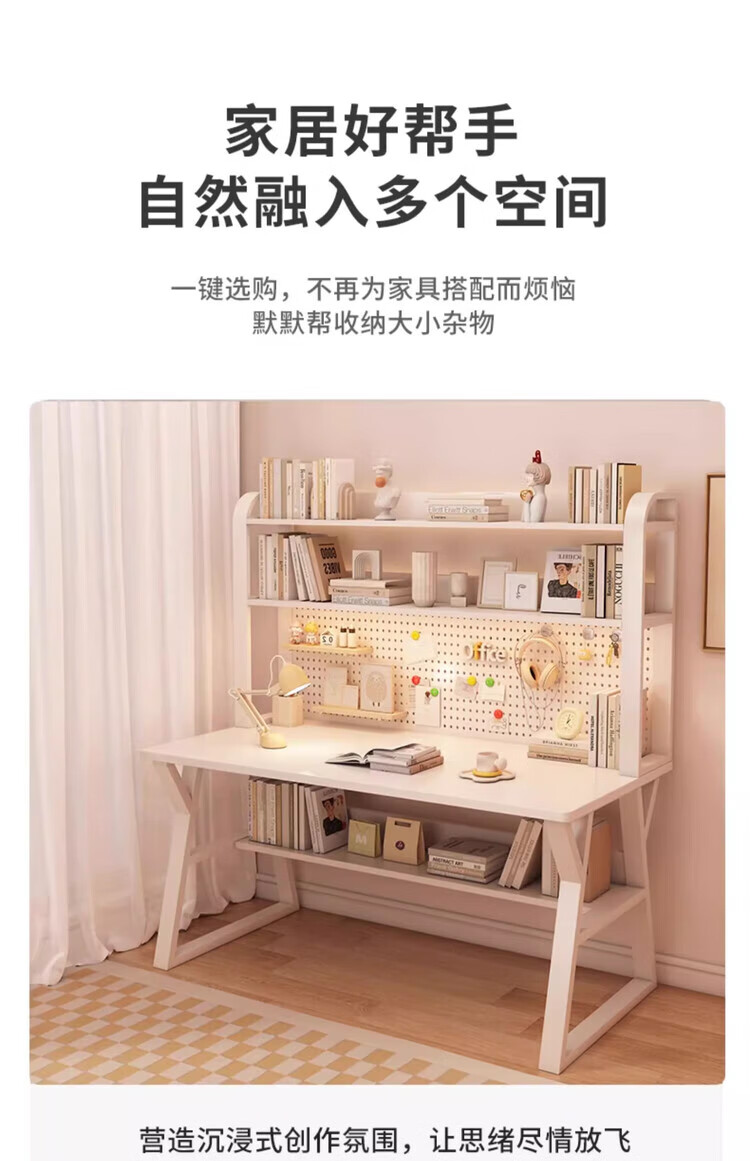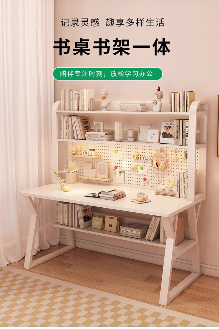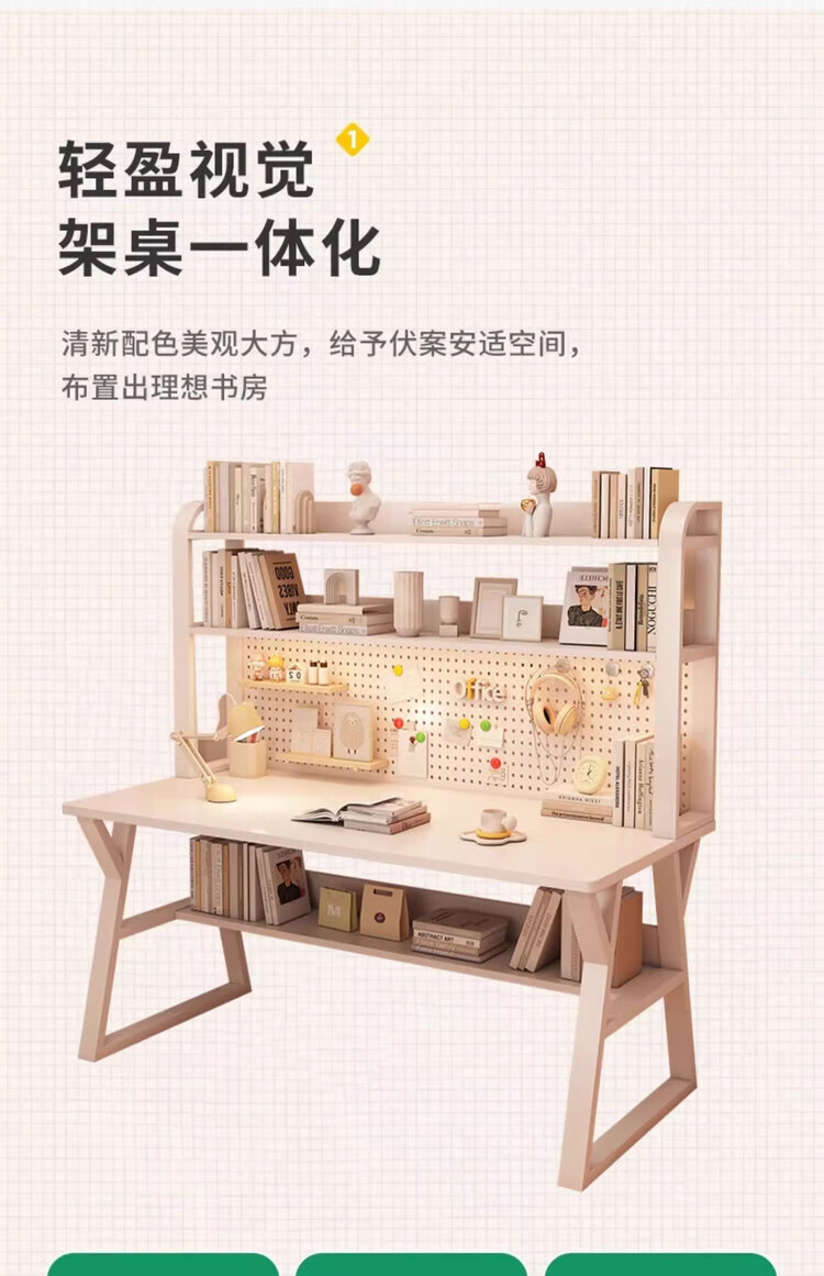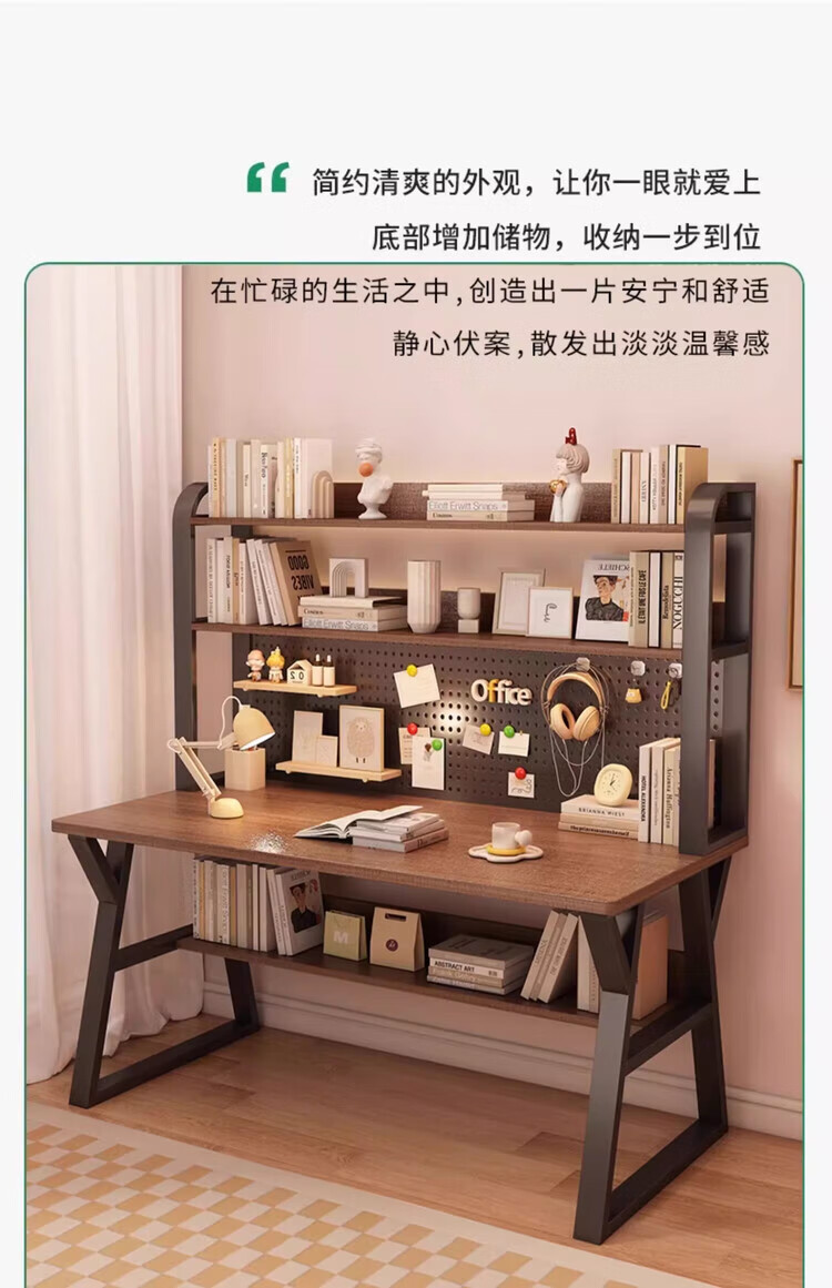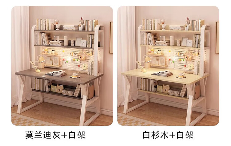 Middle school students multifunctional desk bookshelf integrated table high school students home desktop computer table simple study writing desk 120CM Morandi gray upgraded hole board