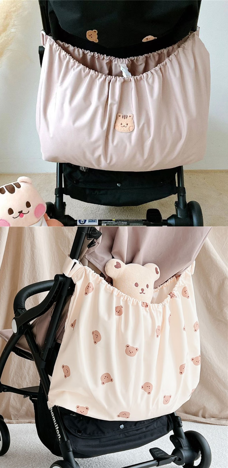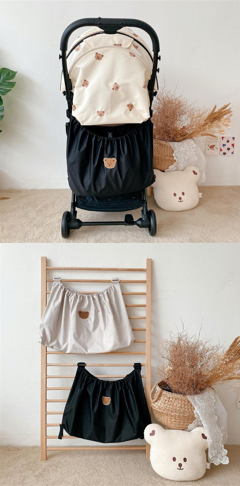 AIBODUO ins Korean version baby stroller storage bag, outing bottle diaper storage bag, baby walking artifact storage bag, black squirrel hanging bag_size 40*70cm