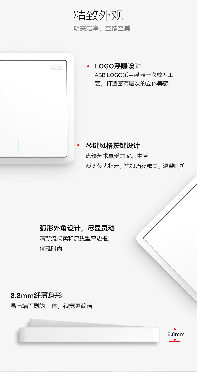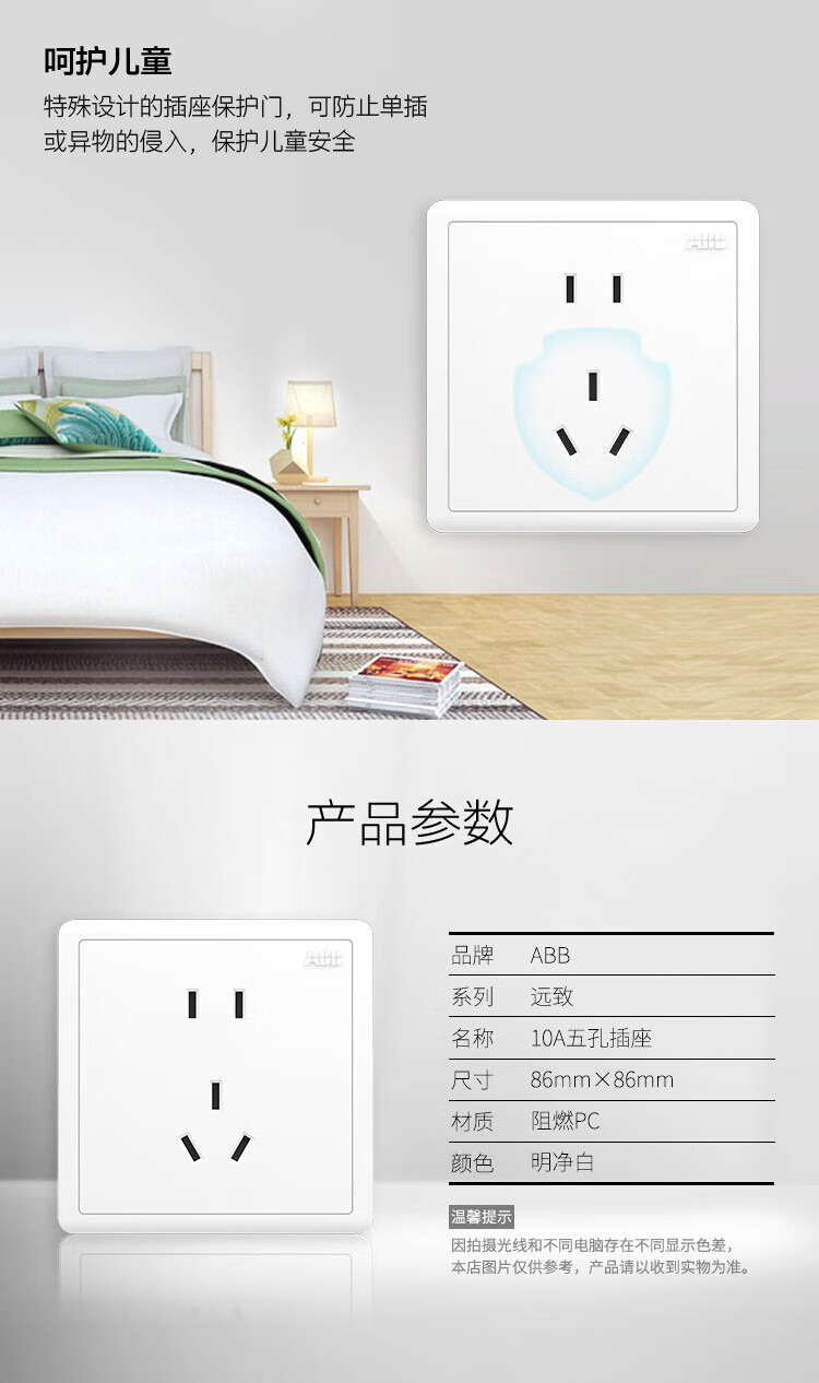 ABB switch socket panel Yuanzhi series white household power supply dual open dual control