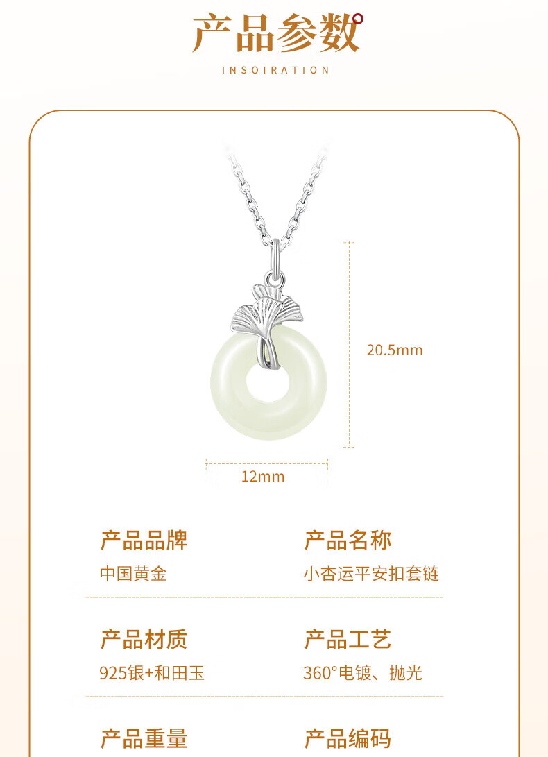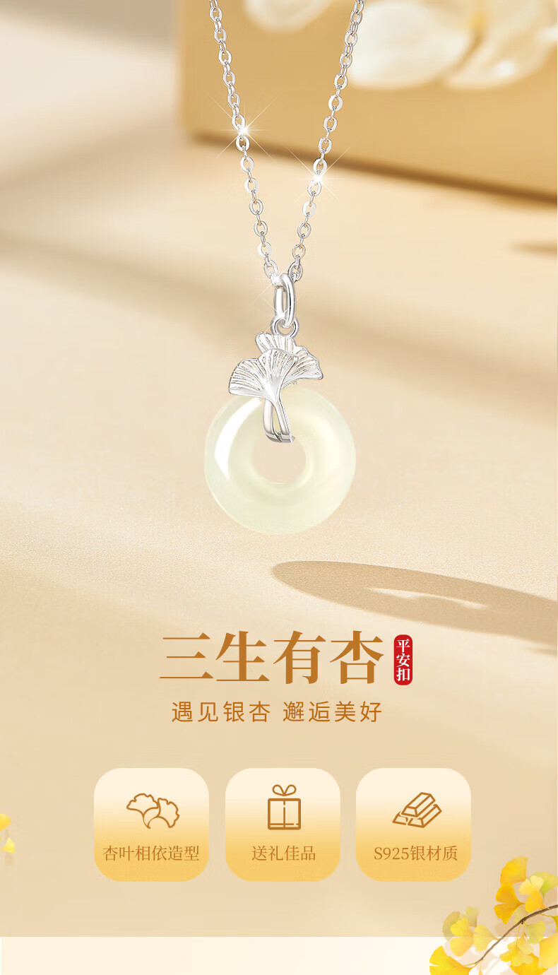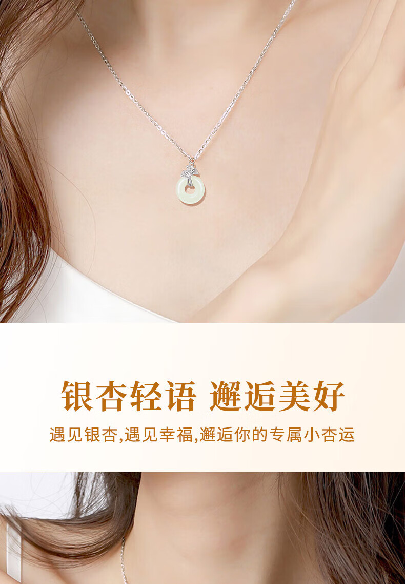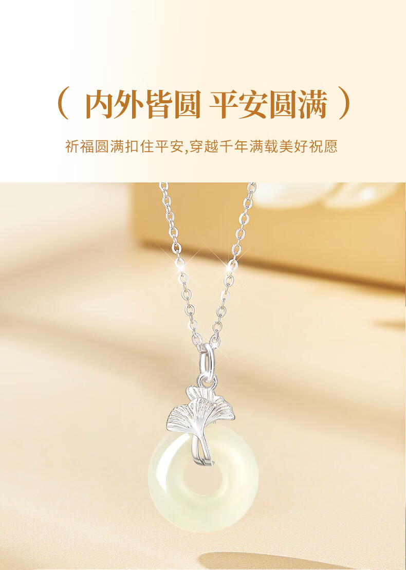 China Gold (CHINA GOLD) Sansheng Lucky Silver Necklace for Women 2025 New Ping An Buckle Pendant Birthday Gift for Girlfriend and Wife Practical and High-end Xiao Xing Yun Hetian Jade Ping An Buckle Necklace for Girls Surprise