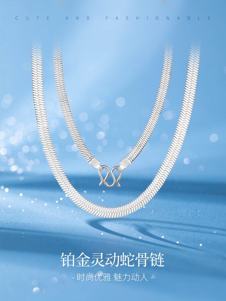 China Gold (CHINA GOLD) Pt950 plain chain snake bone chain platinum necklace M buckle as a birthday gift for girlfriend and wife, weighs about 12g (chain length is about 38cm)