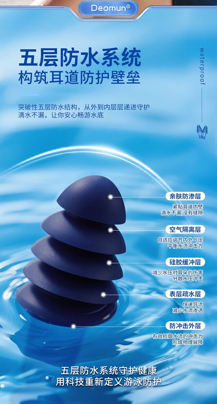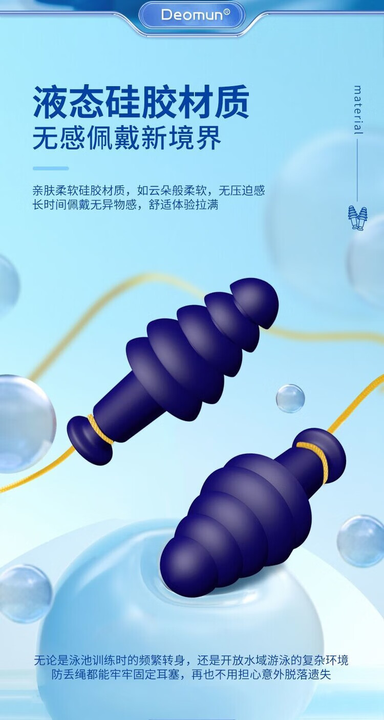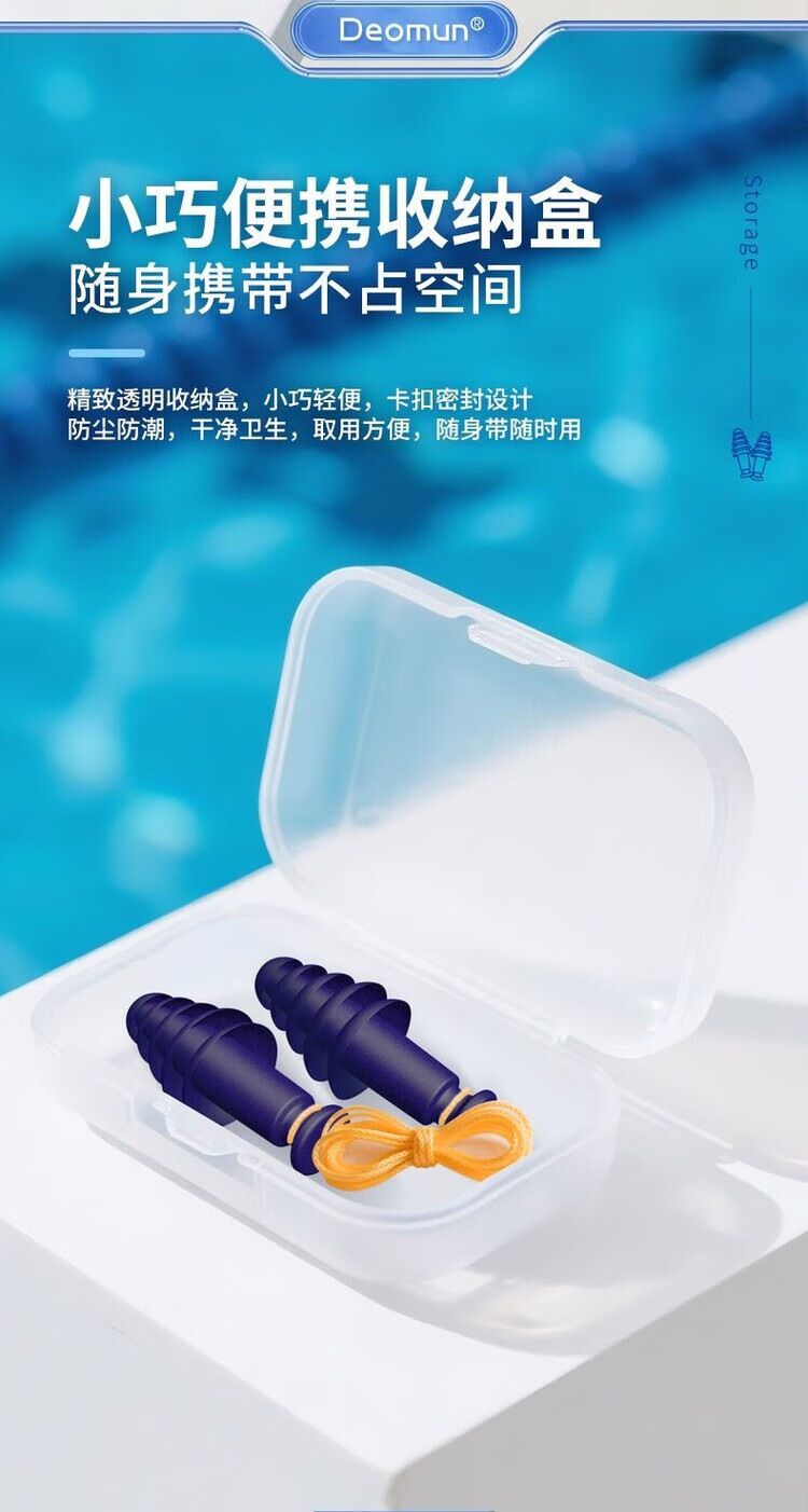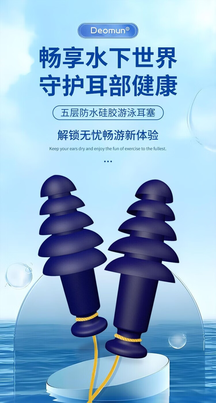 Swimming earplugs with lanyard German waterproof nose clip swimming goggles set for adults and children anti-lost bathing professional adult upgrade 5-layer waterproof swimming earplugs