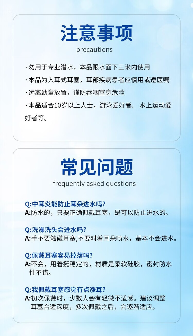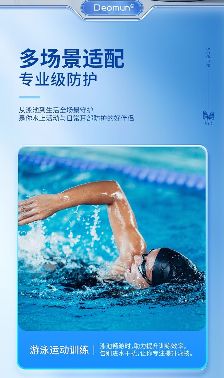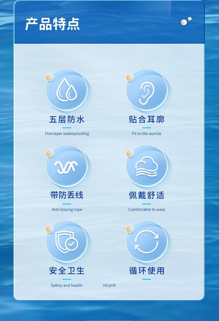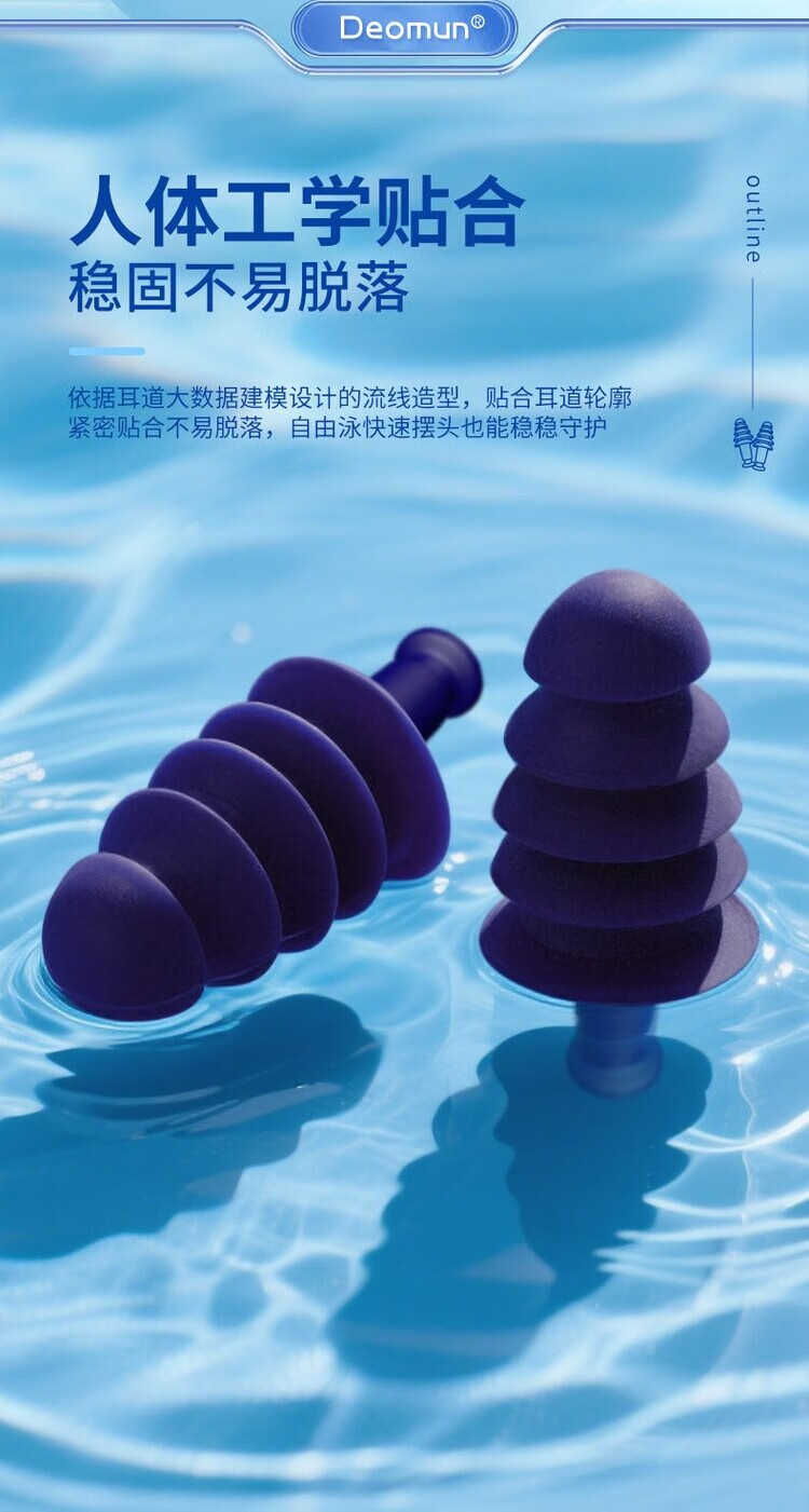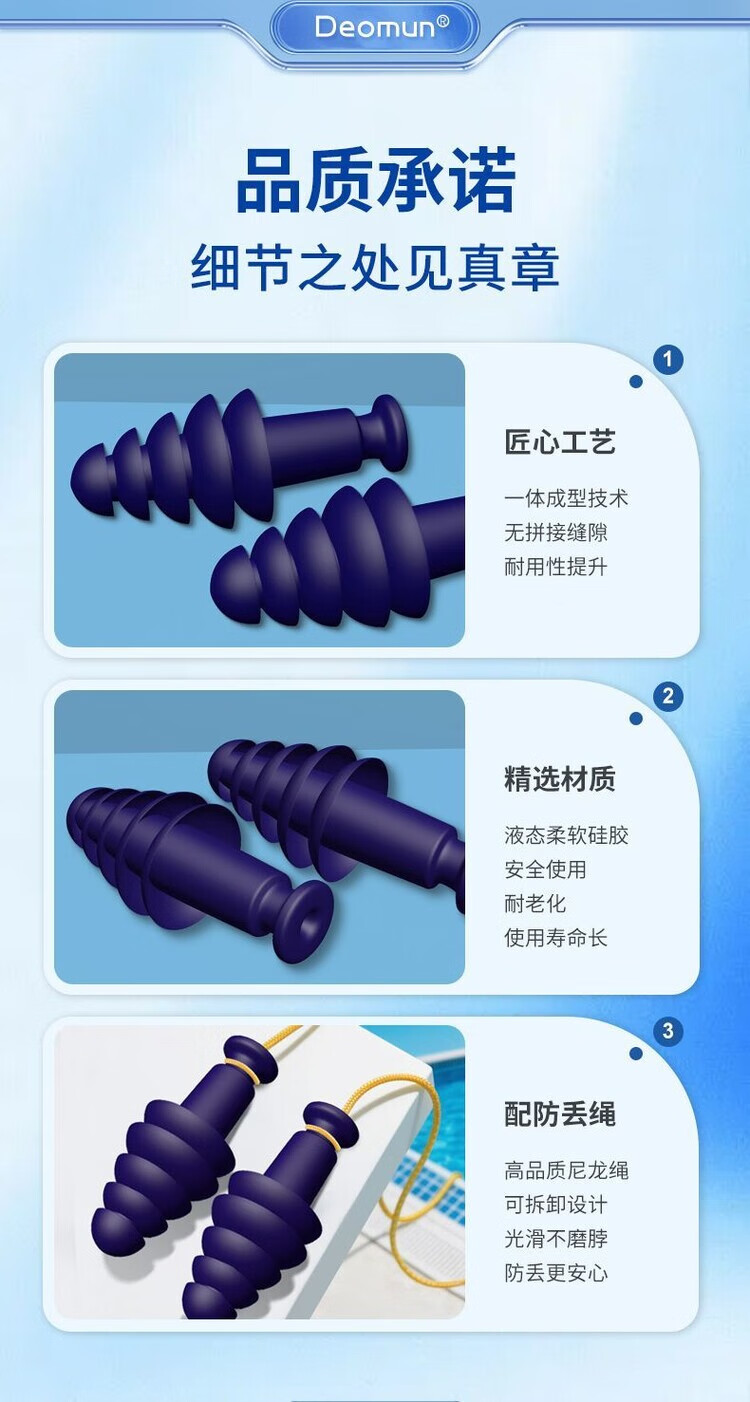 Swimming earplugs with lanyard German waterproof nose clip swimming goggles set for adults and children anti-lost bathing professional adult upgrade 5-layer waterproof swimming earplugs