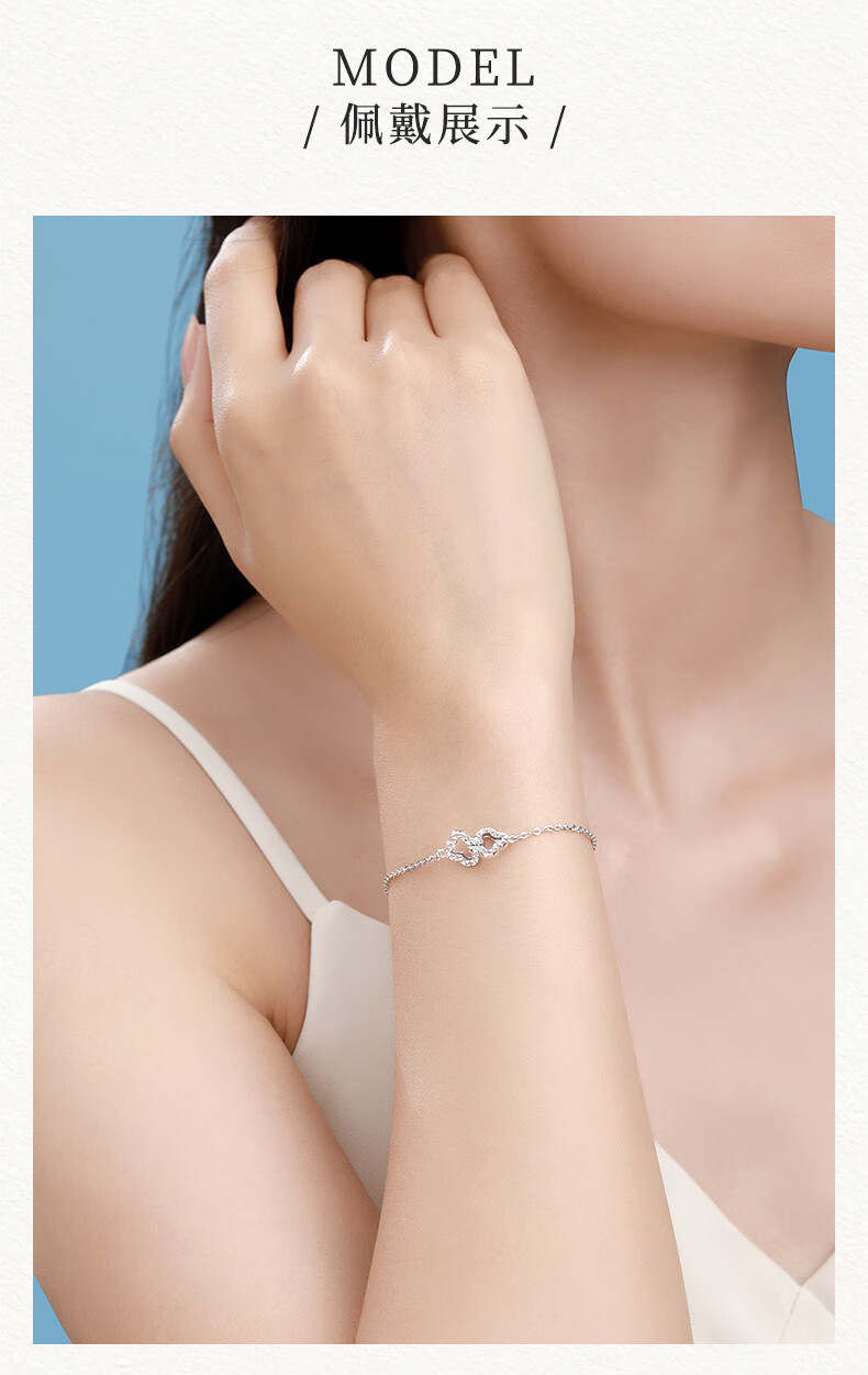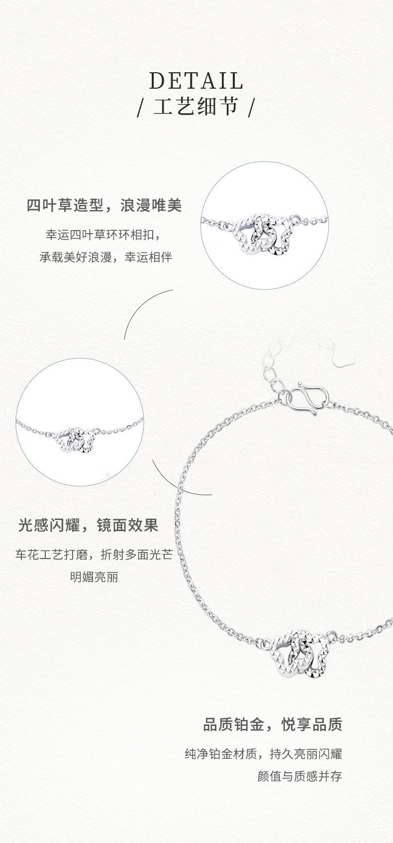 Zokai platinum bracelet lucky four-leaf clover Pt950 interlocking platinum chain bracelet new style gift for girlfriend Bracelet/return more and make up less (chain length 15.5+3cm) 3.68g