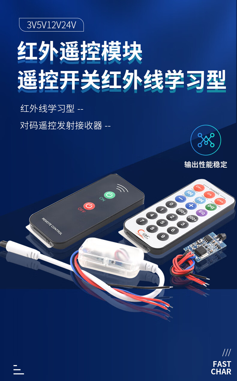 3V5V12V24V infrared remote control module remote control switch infrared learning coded remote control transmitter and receiver 2.5V-24V infrared extension line receiving board No Specifications