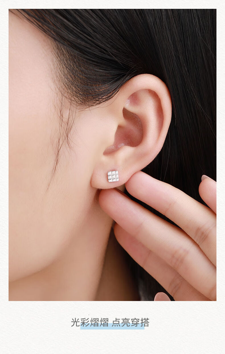 Zokai platinum earrings for women PT950 car flower beads platinum bean earrings square ear piercing large jewelry girlfriend gift small square model about 1.56 grams (about 4.8mm)
