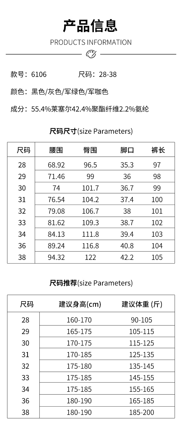 Outseam (cm) 99 cm 101.5 cm 104 cm 106.5 cm 109 cm