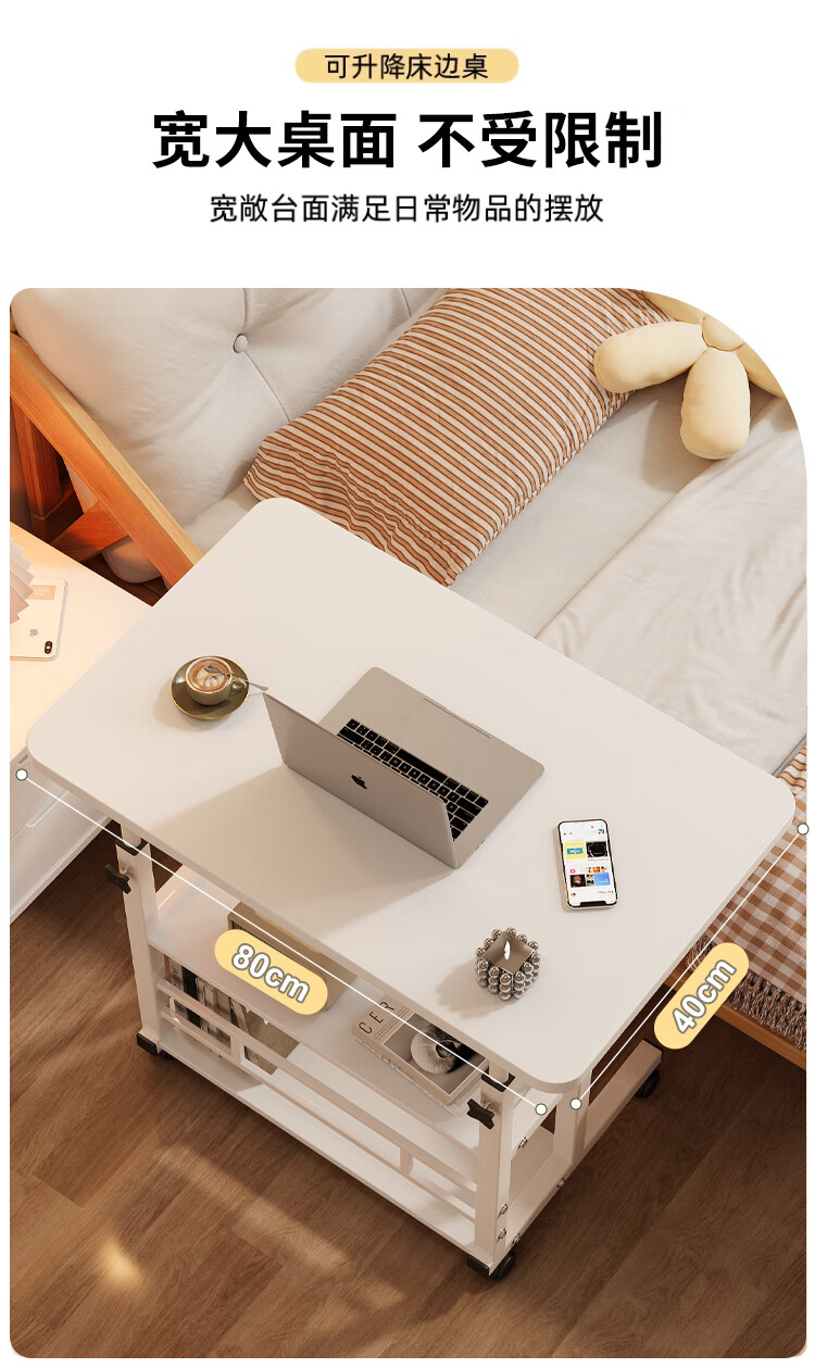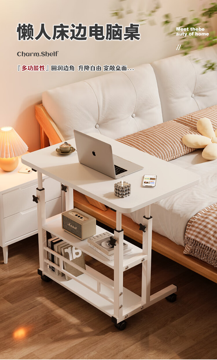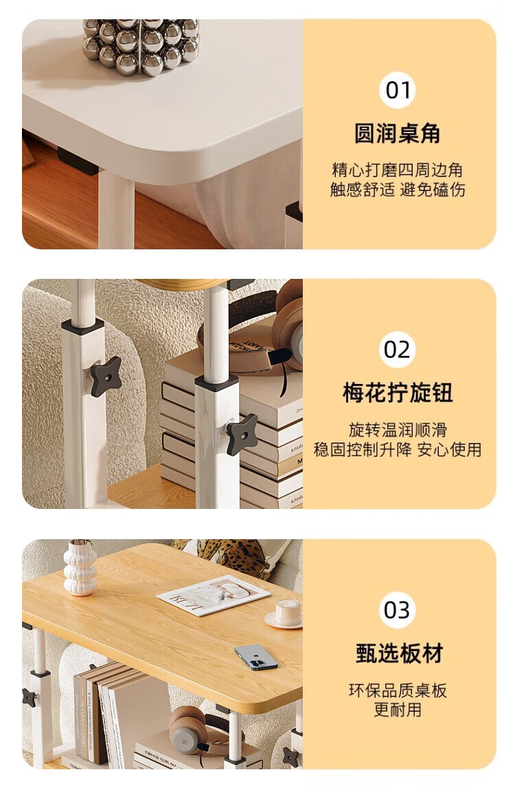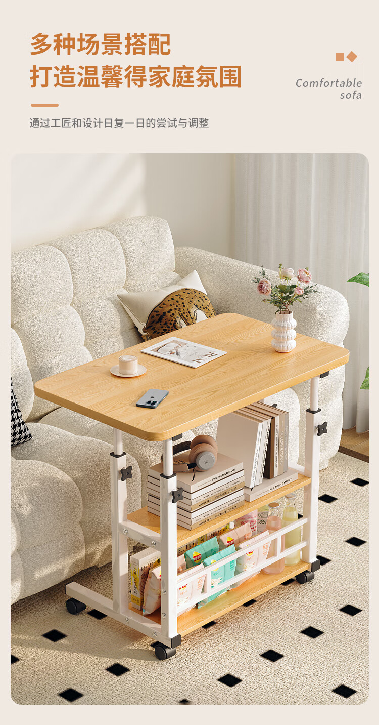 Bedside table movable simple small table bedroom home student desk simple dormitory writing lifting computer table three-layer model solid wood color 80*40cm