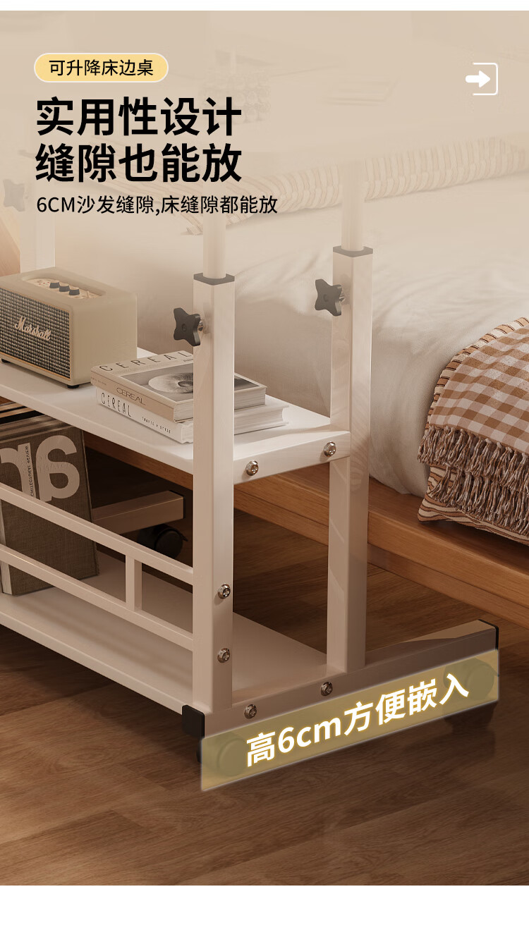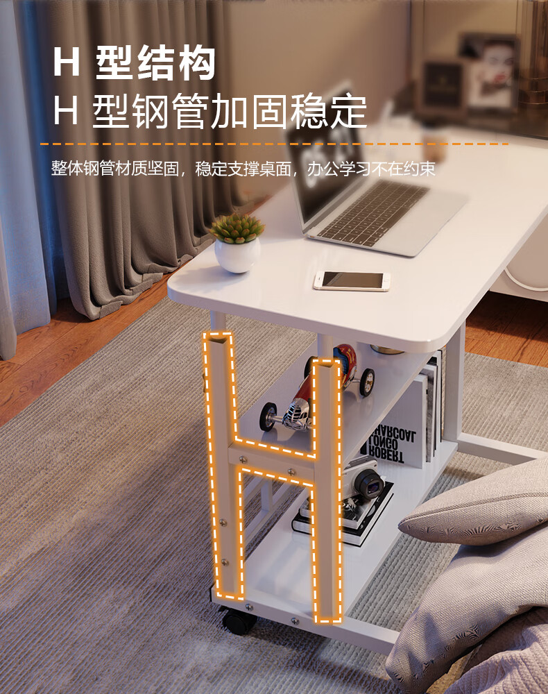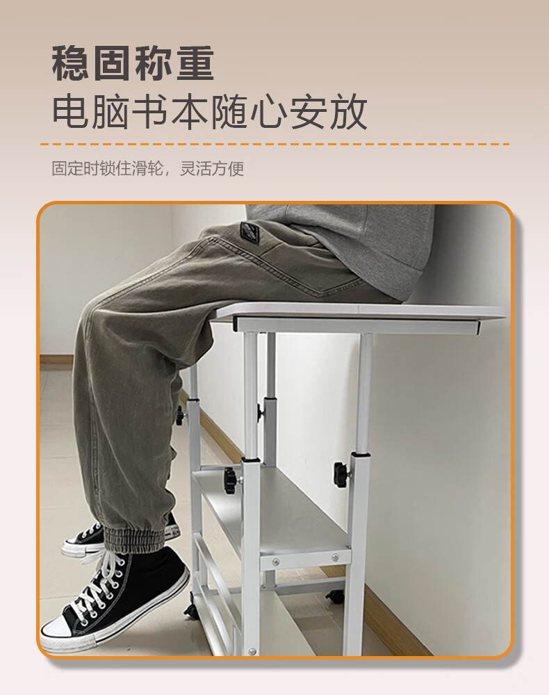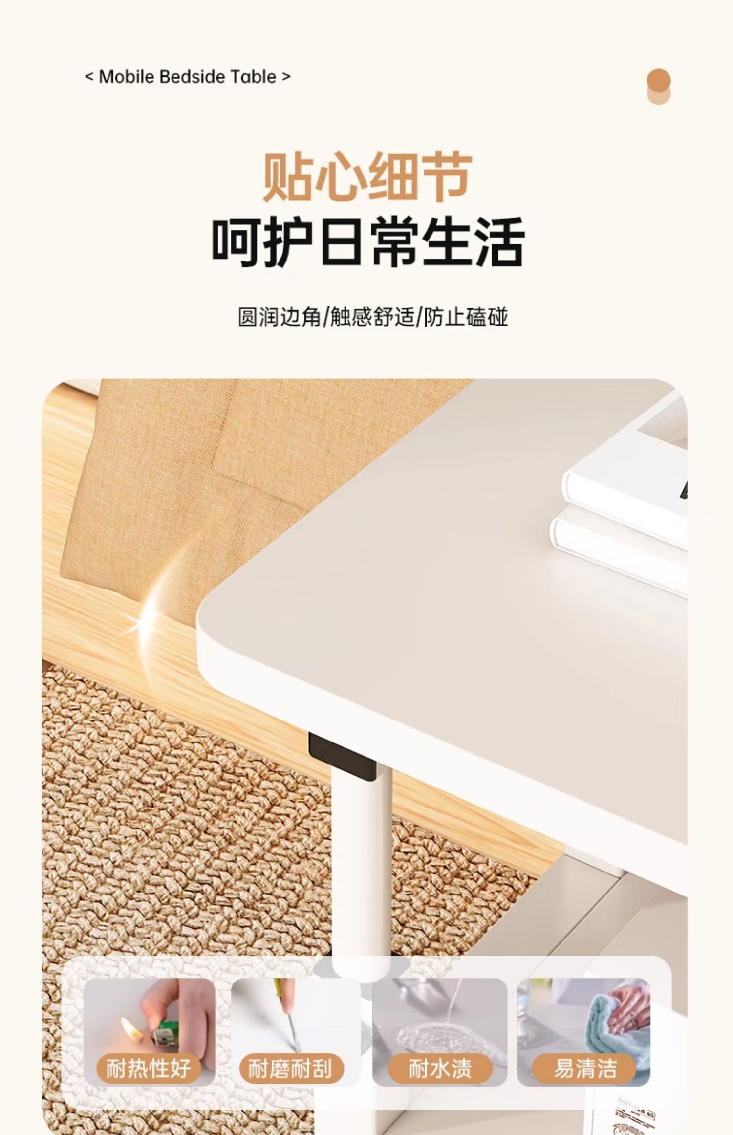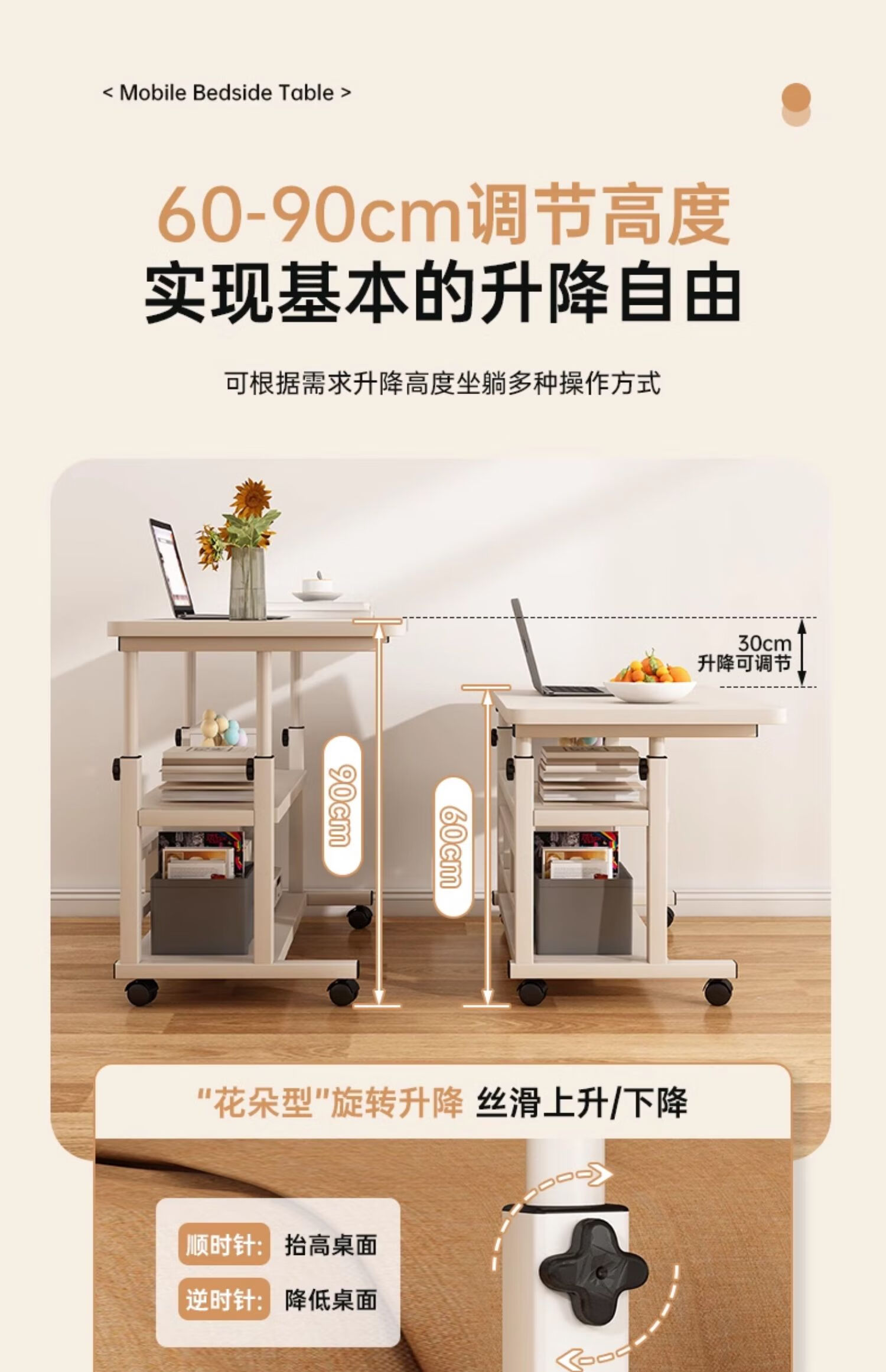 Bedside table movable simple small table bedroom home student desk simple dormitory writing lifting computer table three-layer model solid wood color 80*40cm