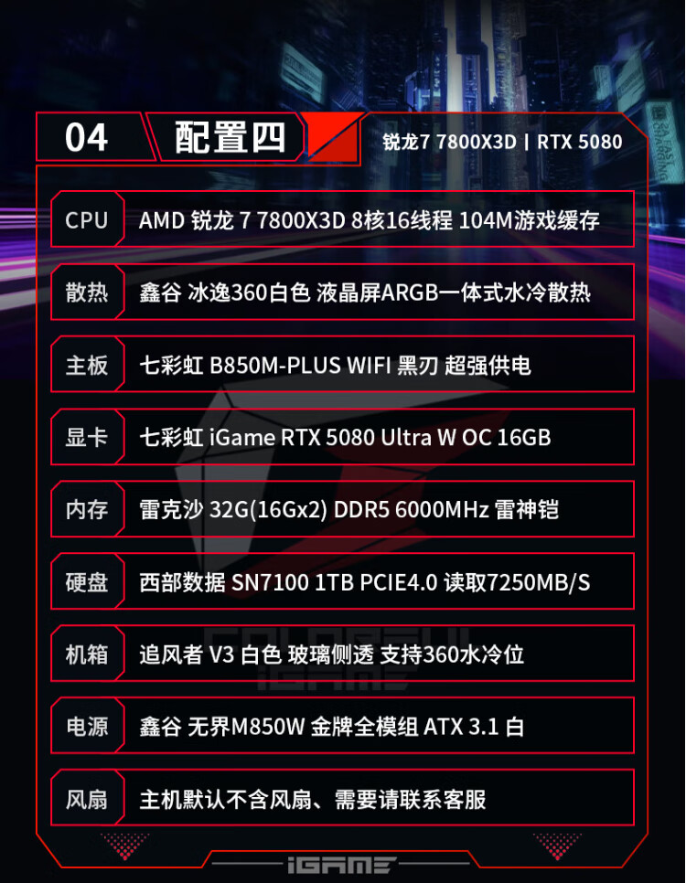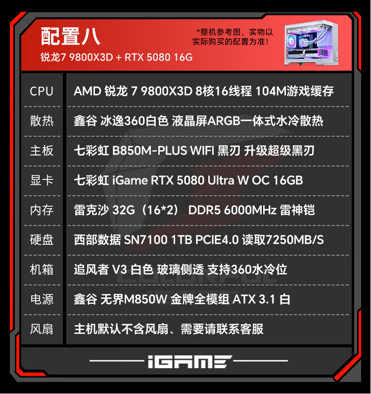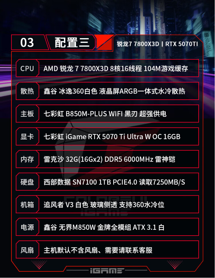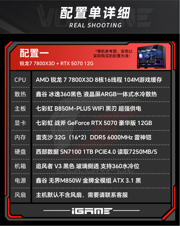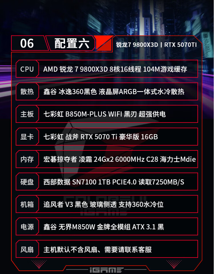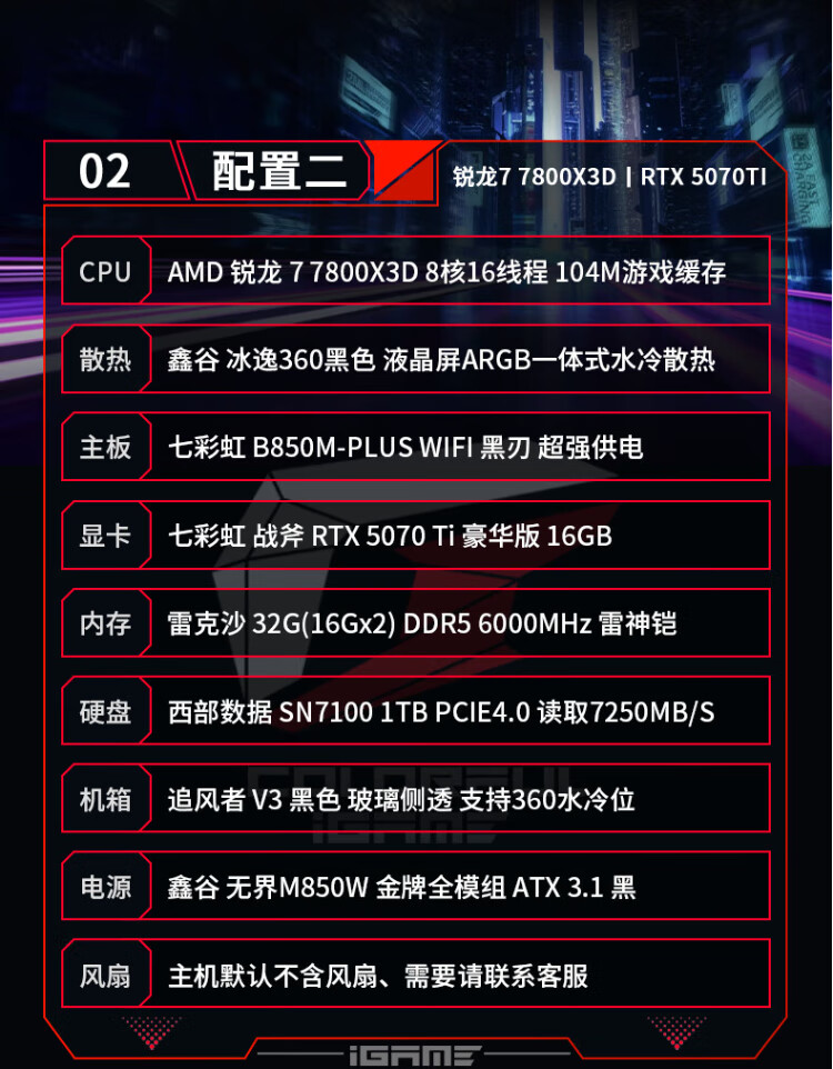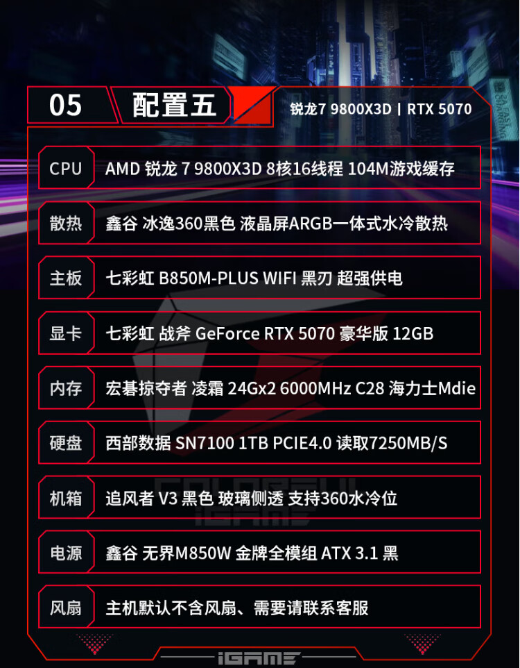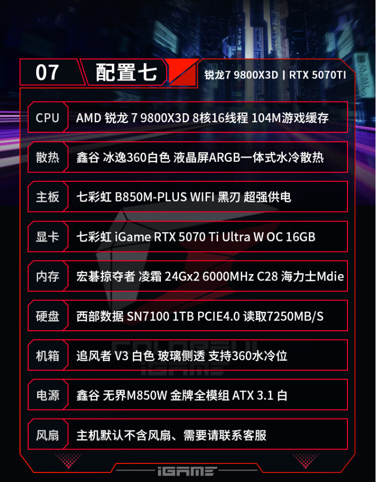 Colorful AMD Ryzen 7 9800X3D/7800X3D/5080/5070Ti Thousand-frame e-sports 48G AI live broadcast design game console DIY assembly of the complete desktop computer Configuration 1 R7 7800X3D丨RTX5070