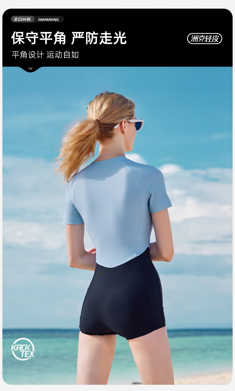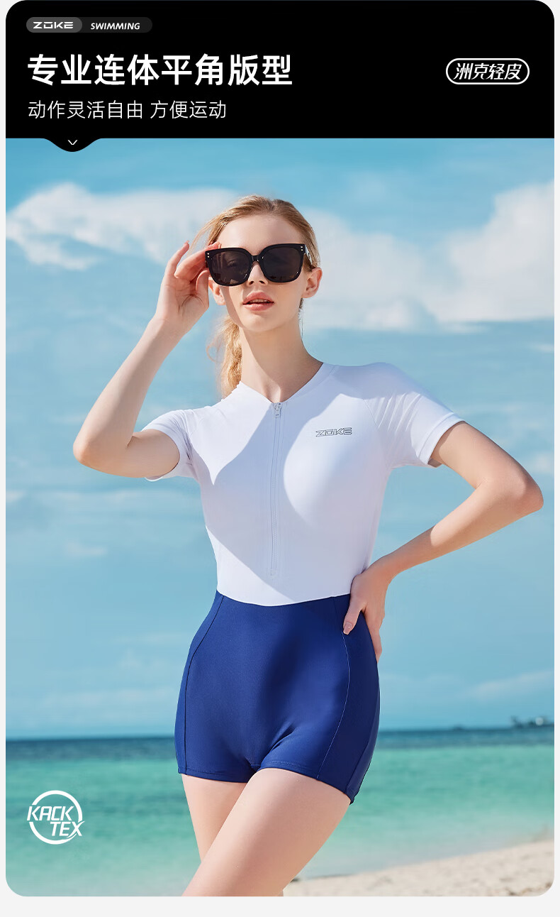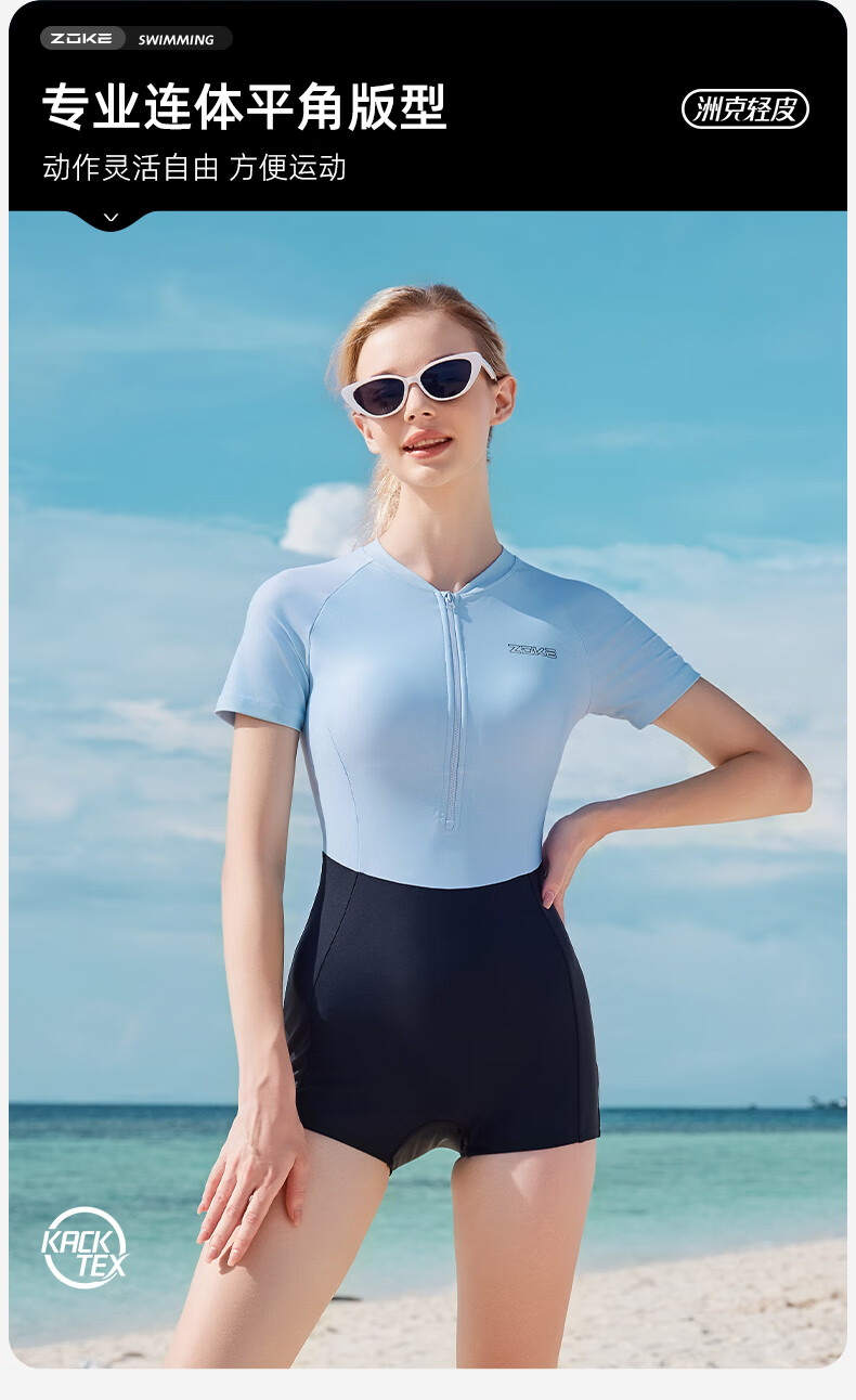 Zhouke women's swimsuit one-piece sun protection flat-angle contrasting sports style hot spring swimming pool suitable for new products Nenlan_black_with chest pad_double-layer clothing 1255014 M