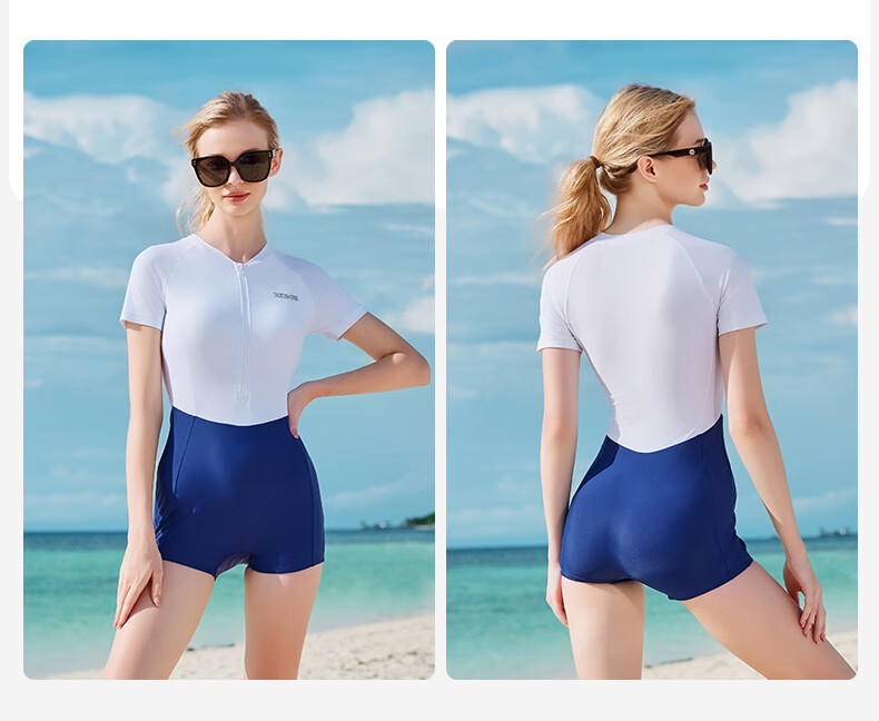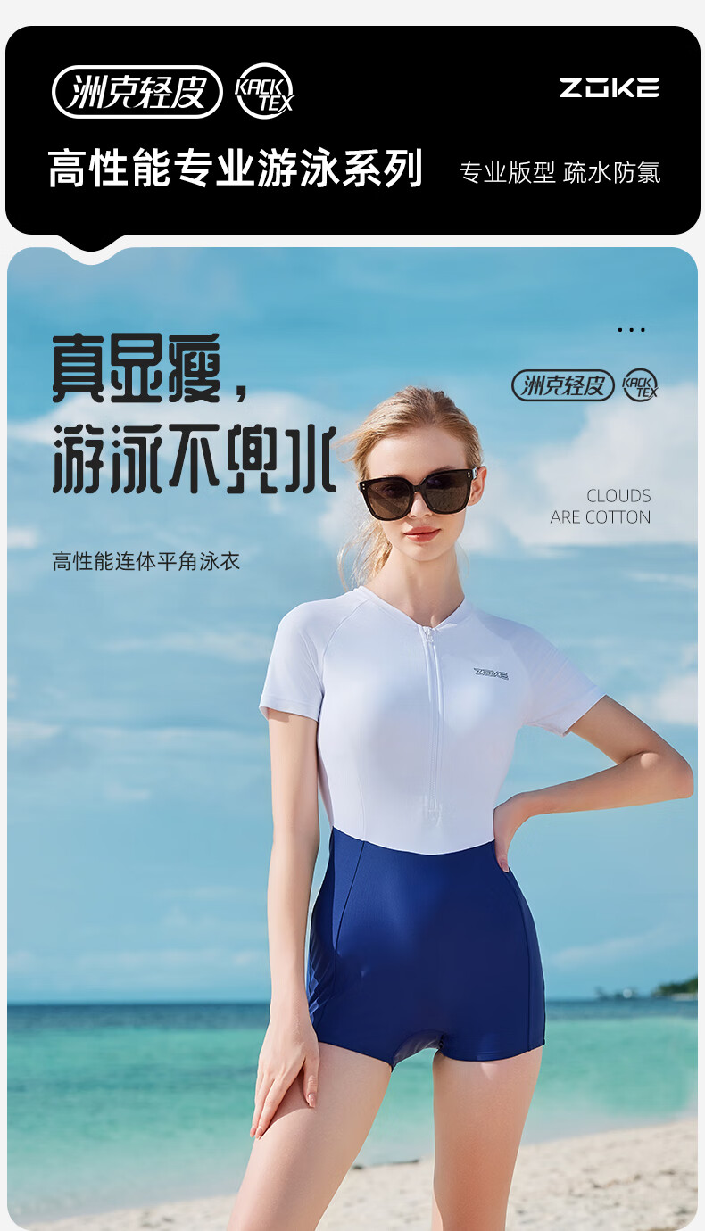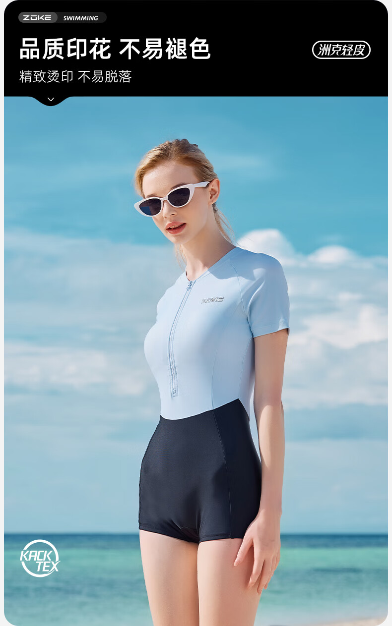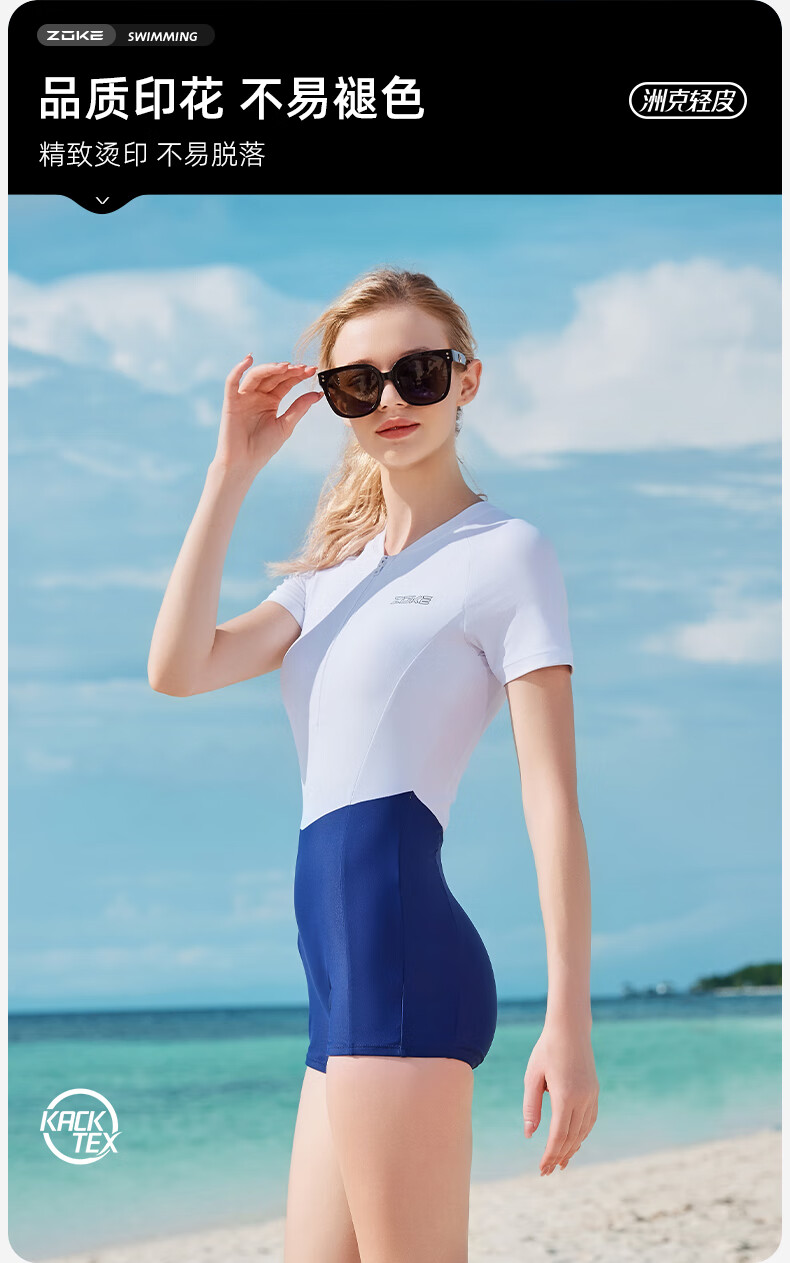 Zhouke women's swimsuit one-piece sun protection flat-angle contrasting sports style hot spring swimming pool suitable for new products Nenlan_black_with chest pad_double-layer clothing 1255014 M