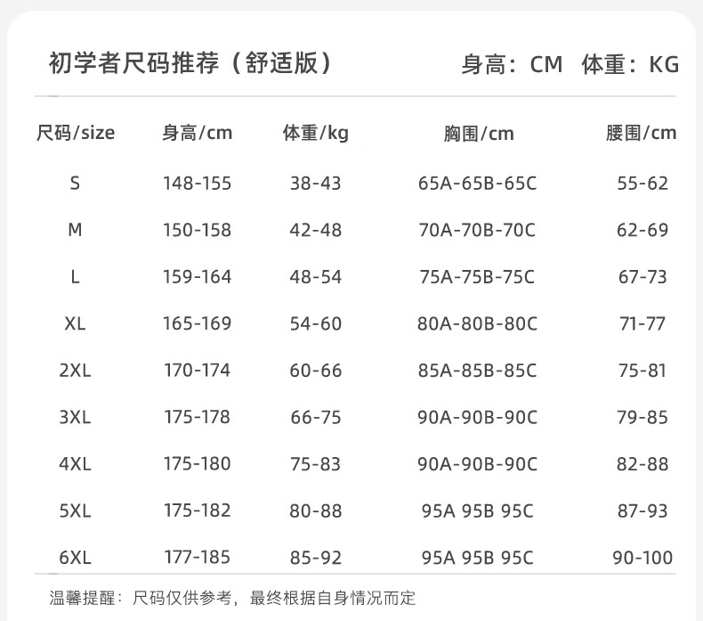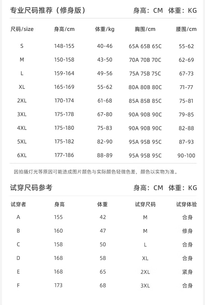China (cm) 160-165/84-86 165-170 / 88-90 167-172 / 92-96 168-173 / 98-102 170-176 / 106-110