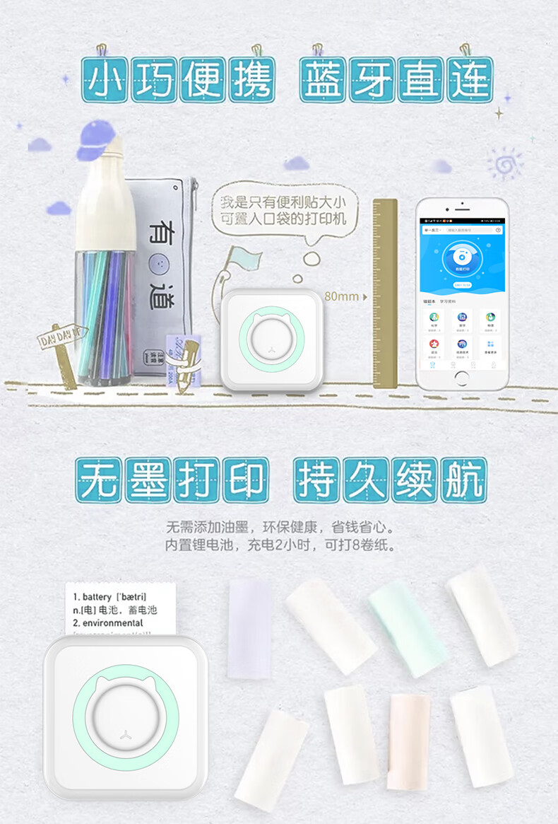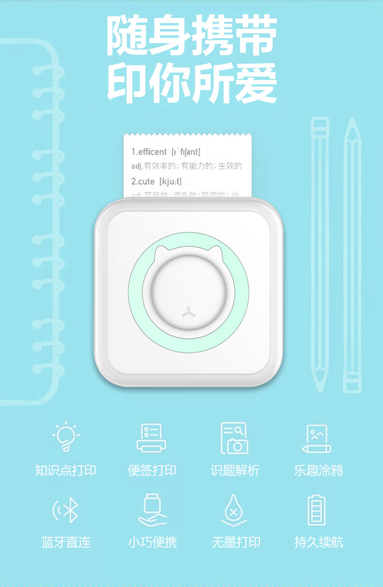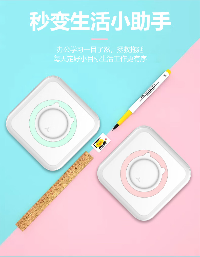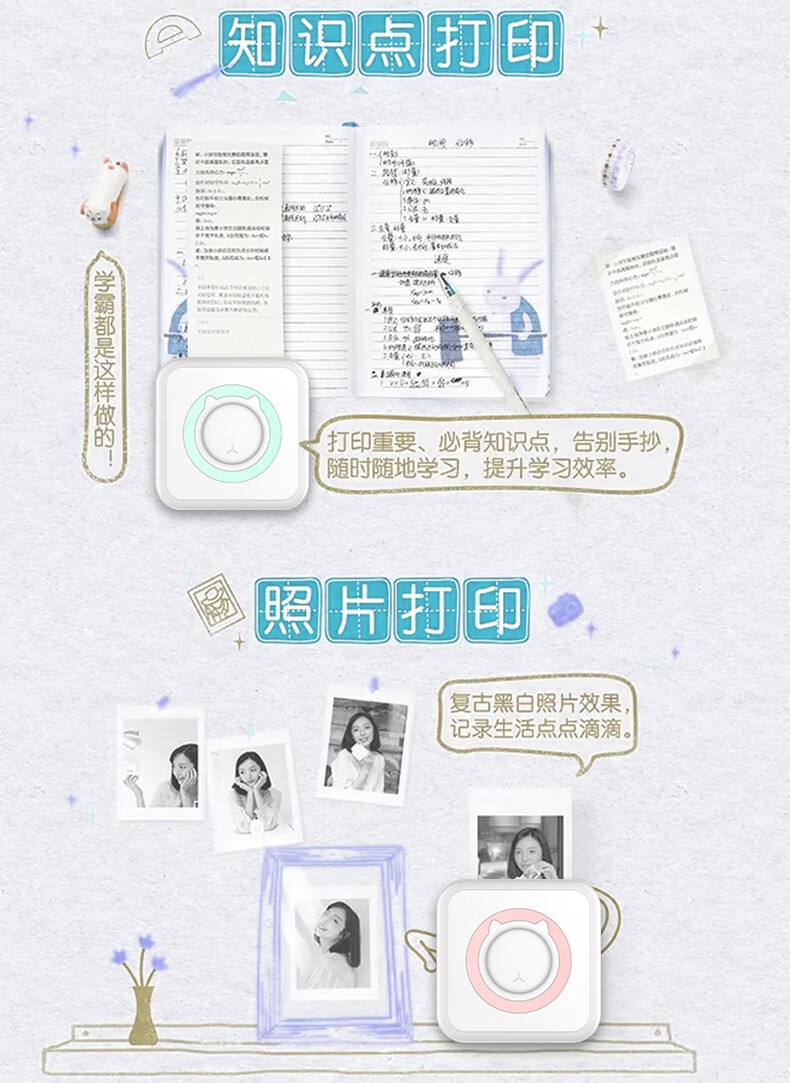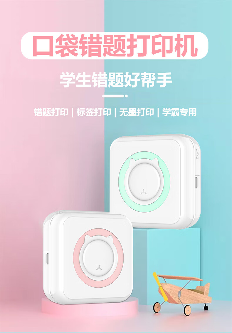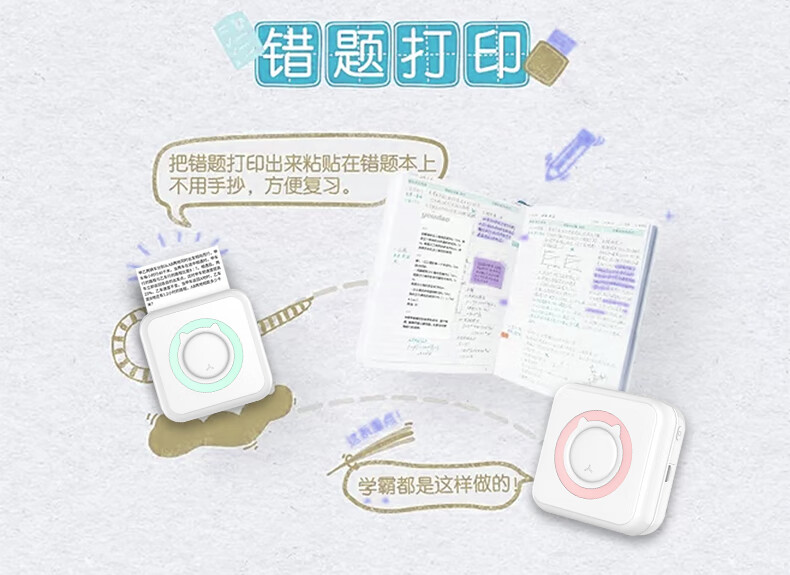 Home wrong question color printing learning machine student mini thermal photo small portable wrong question sorting artifact portable study pocket wrong question printer basic version pink (including a roll of printing paper)
