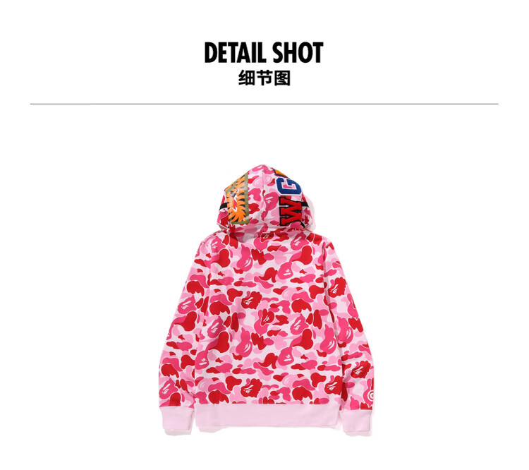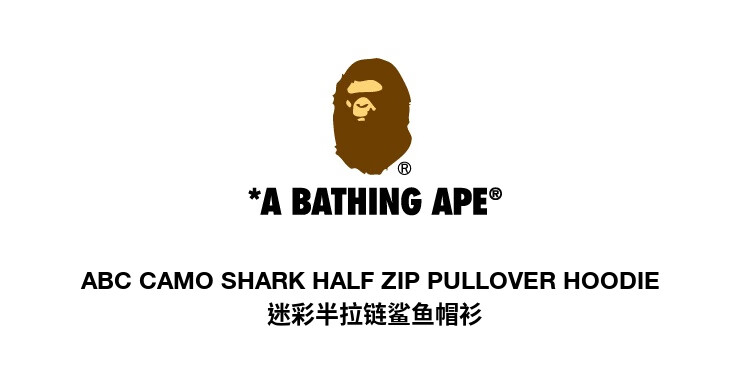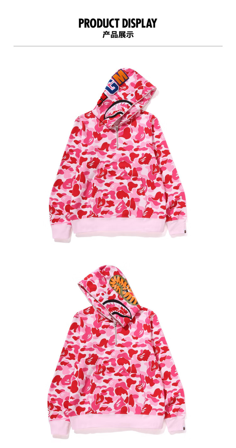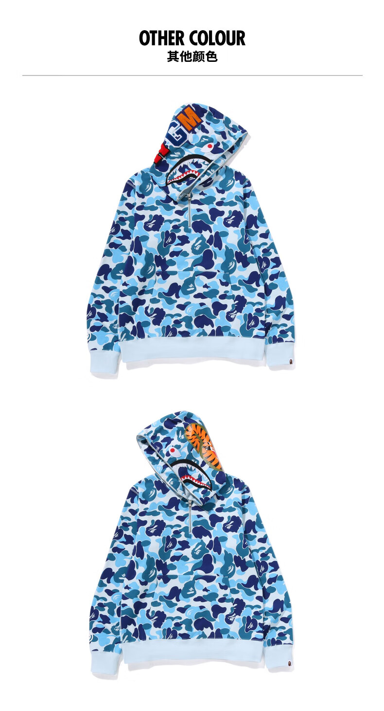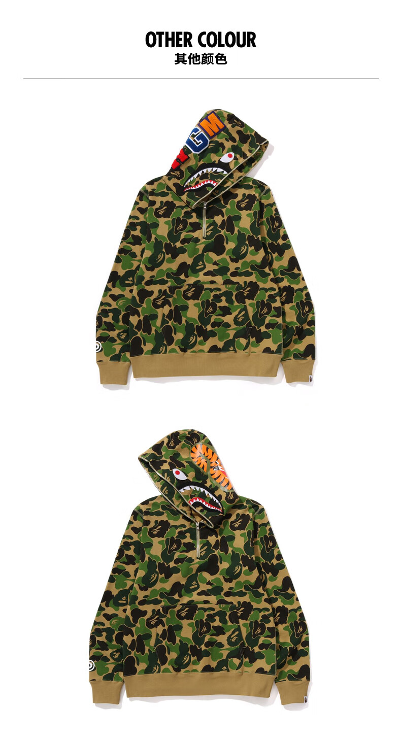 BAPE Men's Autumn and Winter 2024 Shark WGM Pattern Camouflage Hooded Half-Zip Sweatshirt 114010N Green GRX XL One Size