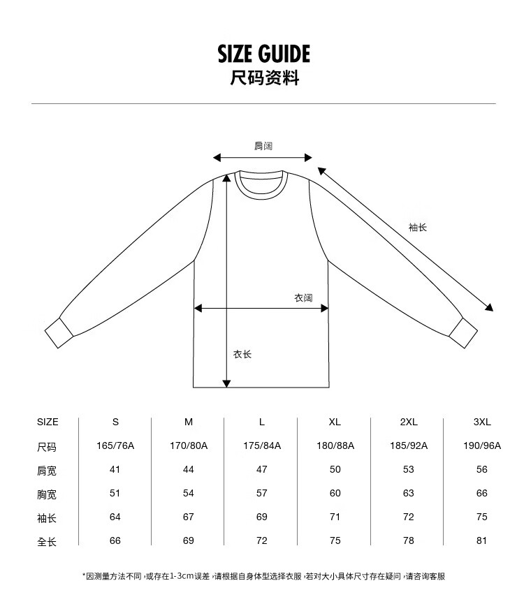 China (cm) 165 / 88-90 170 / 96-98 175 / 108-110 180 / 118-122 185 / 126-130